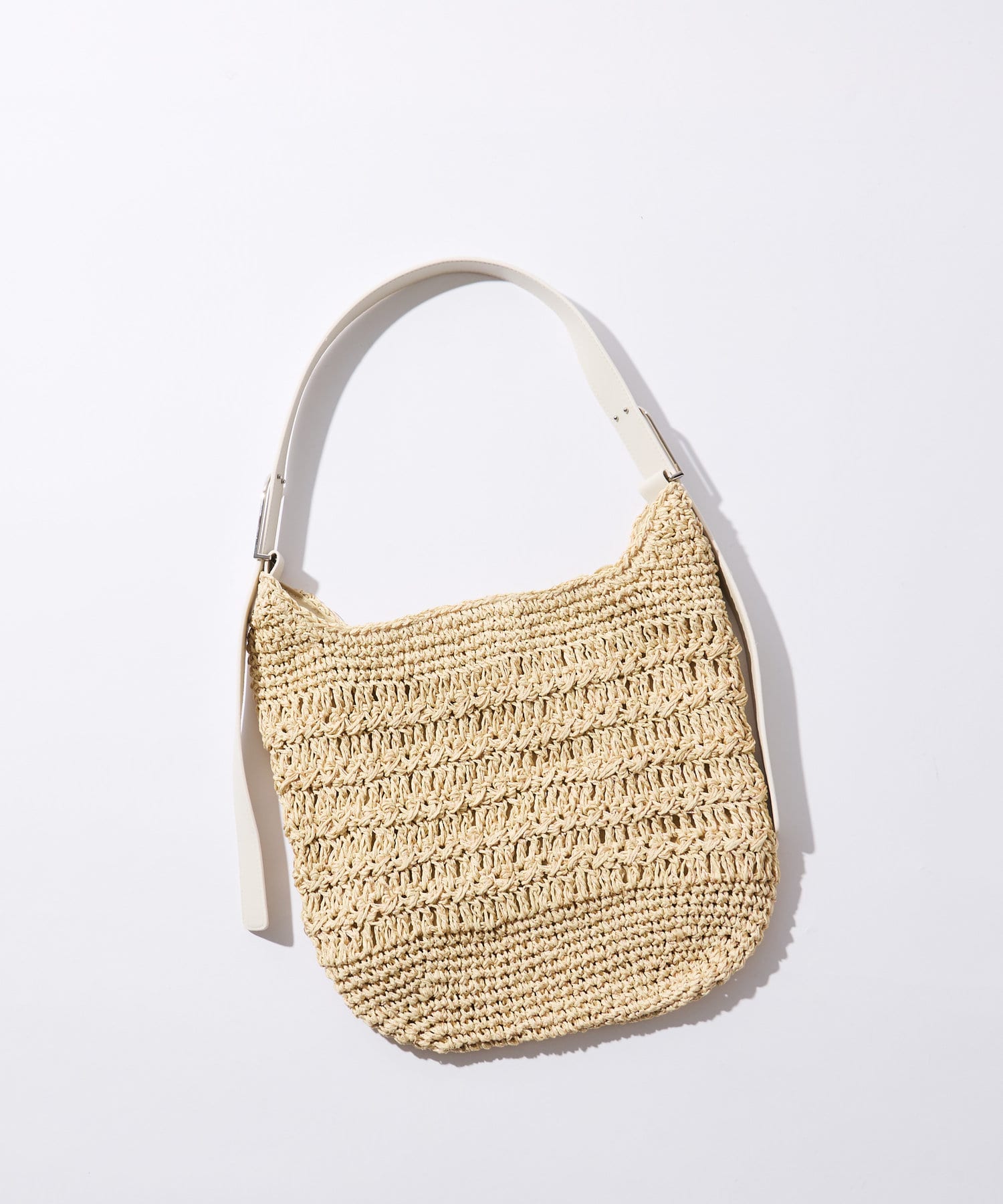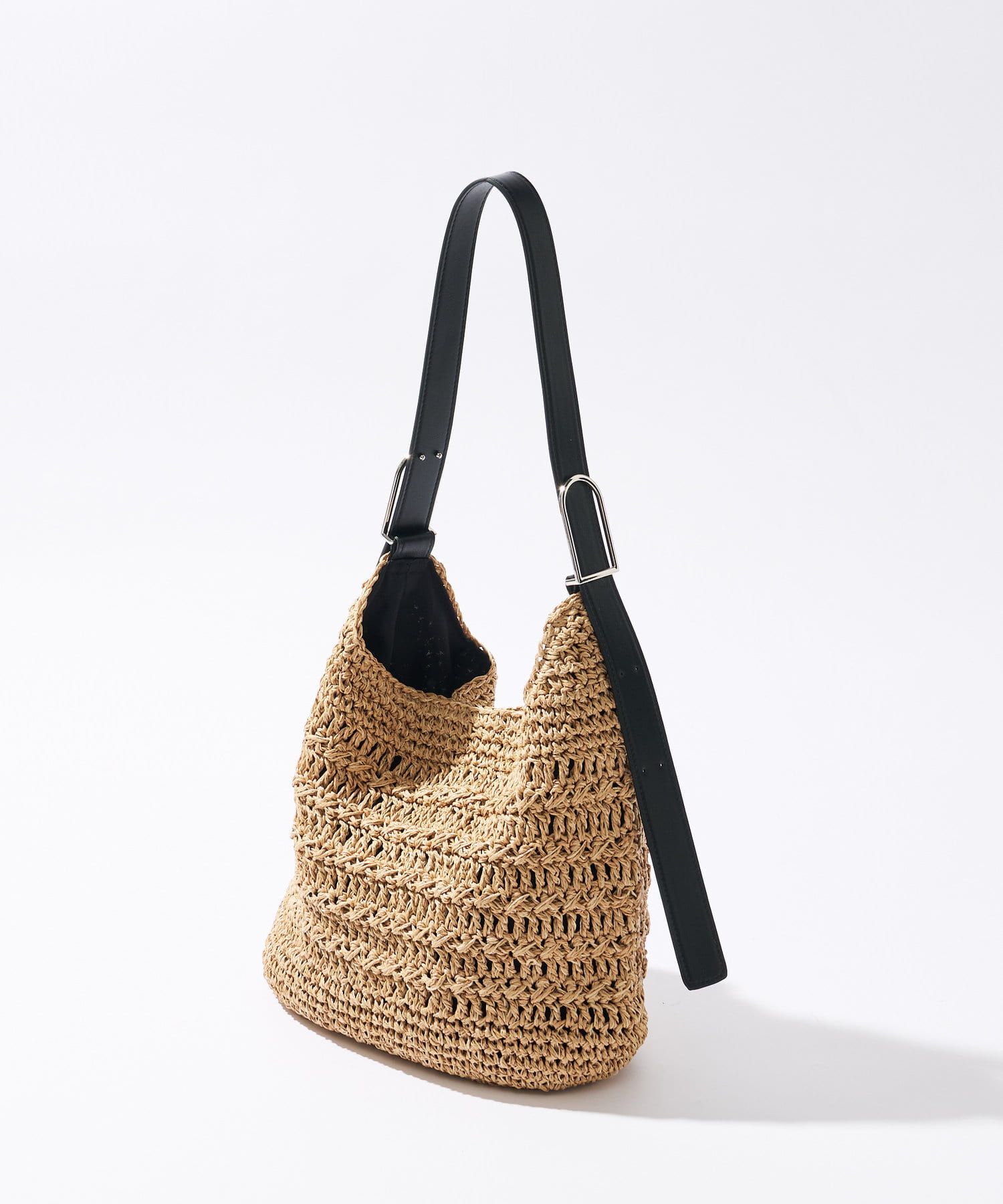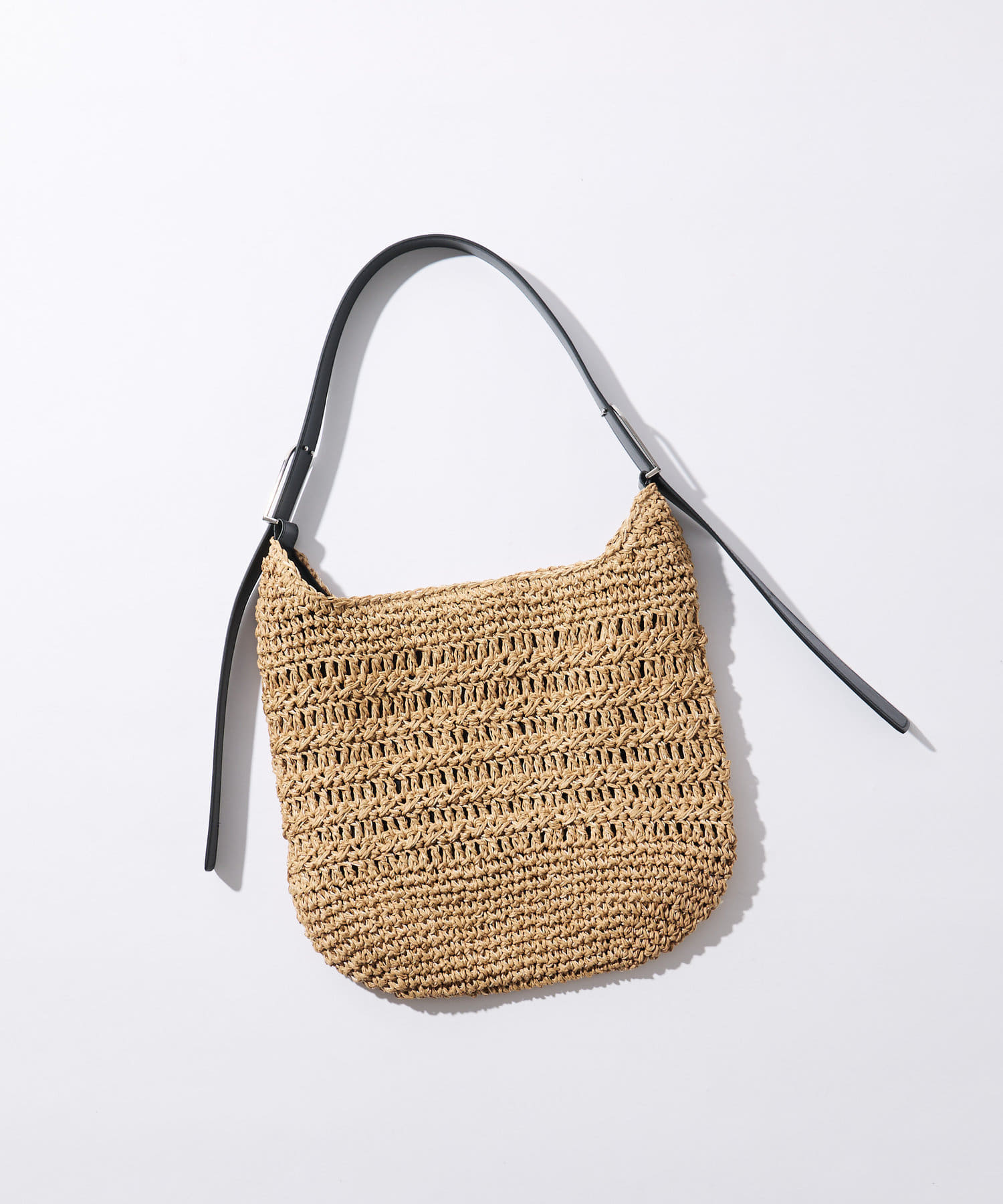 ・ペーパーの夏らしい素材に持ち手のフェイクレザー素材がアクセントになるバックです。