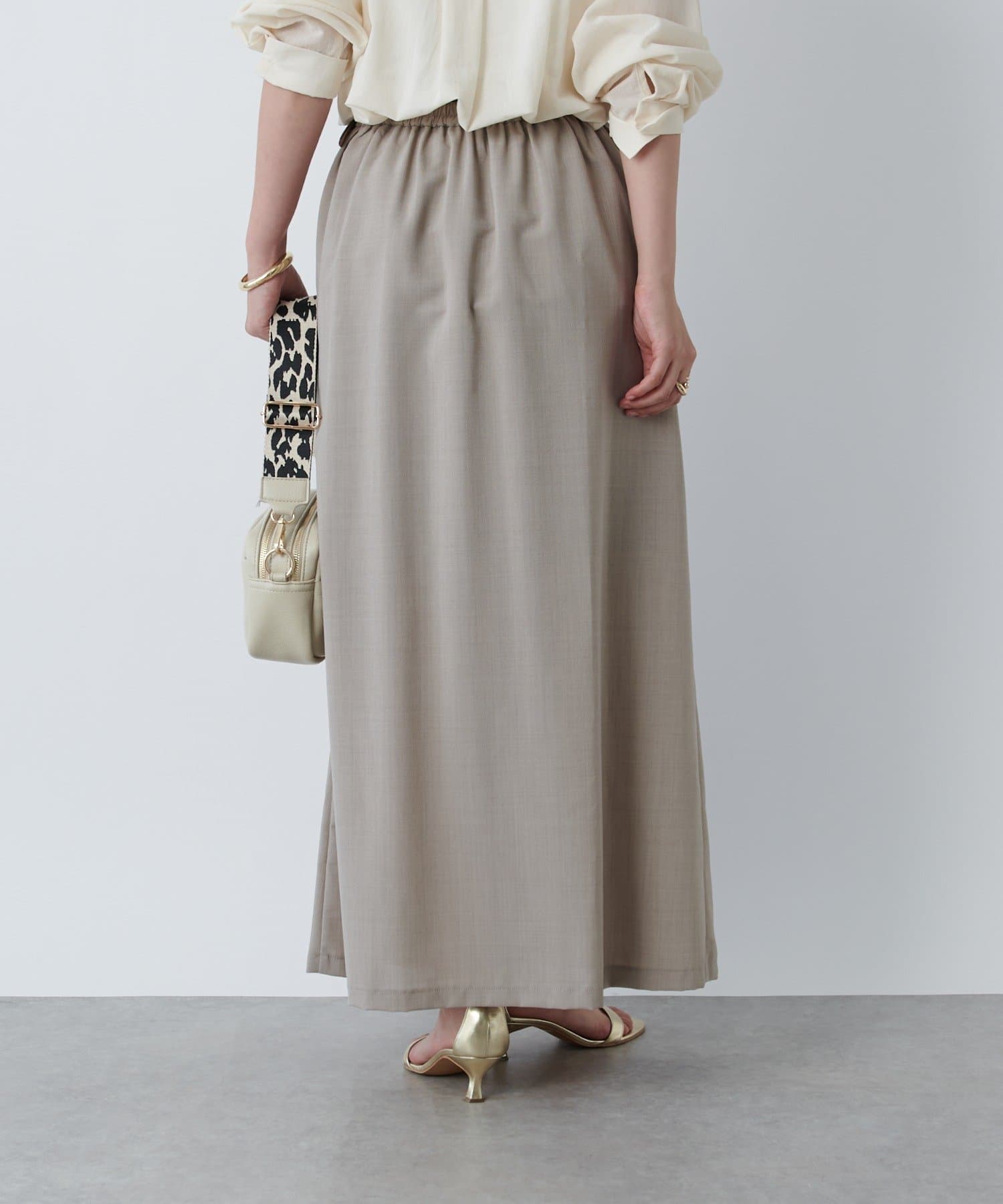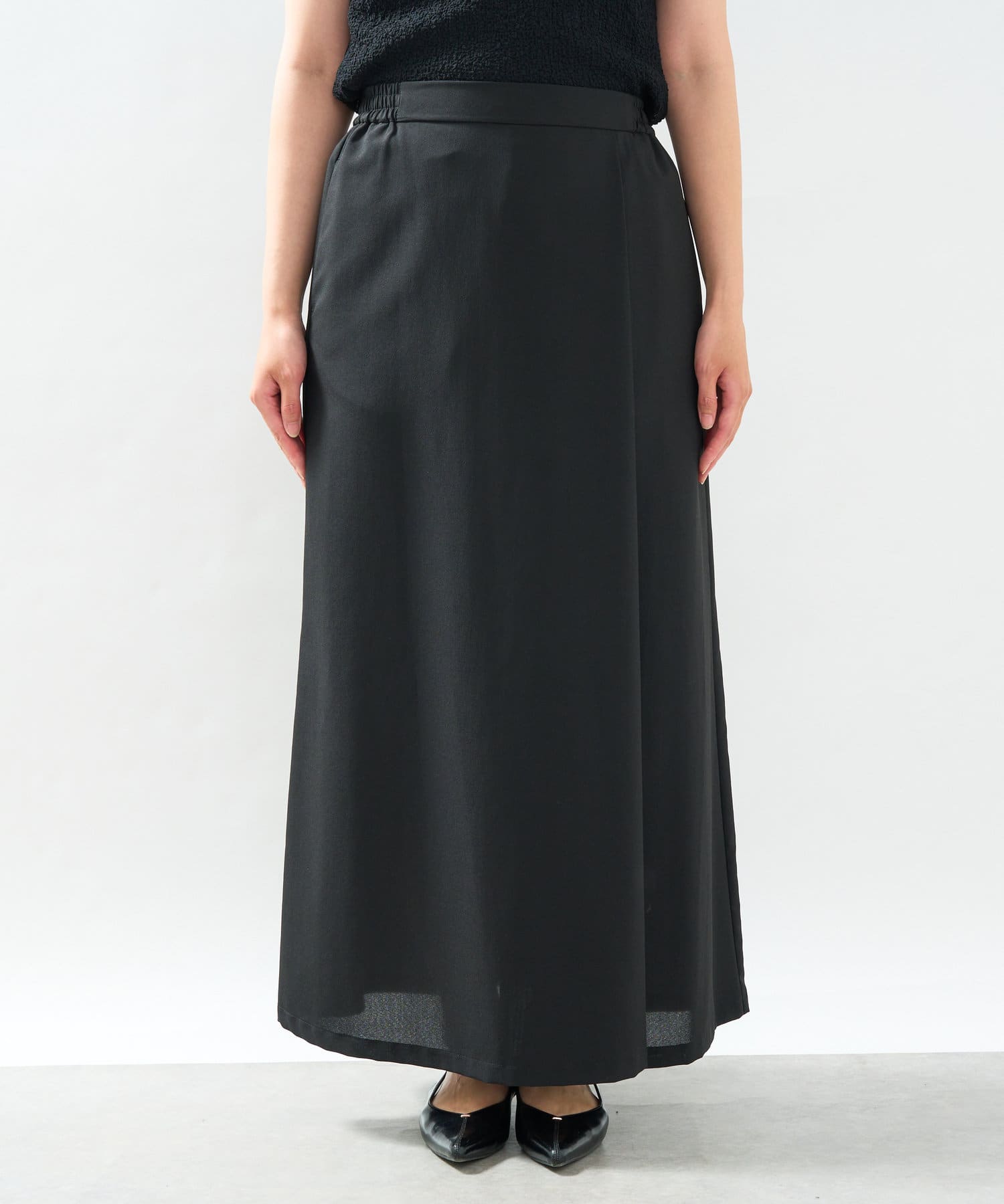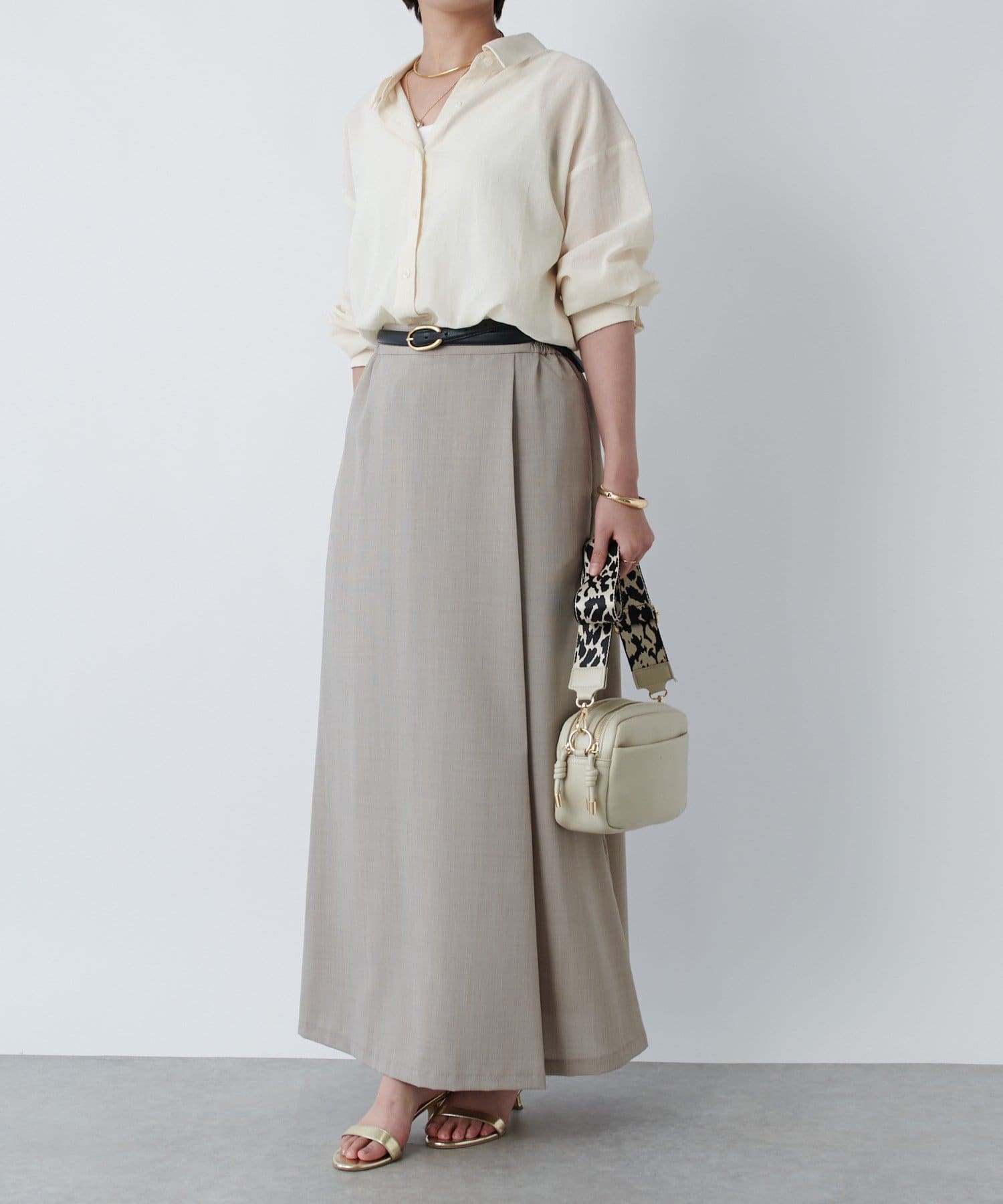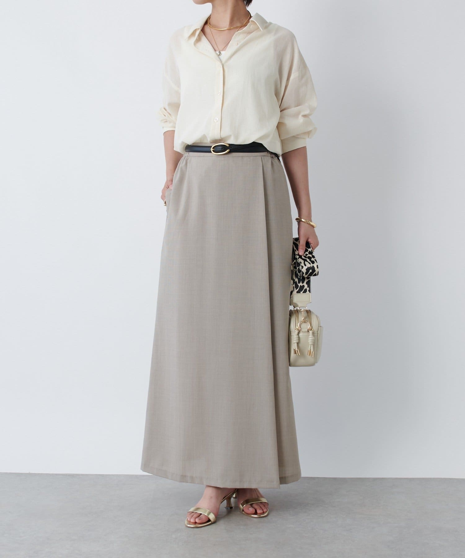 スカートのフロント部分を折り返してラップスカート(巻きスカート)のように見せているデザインです。