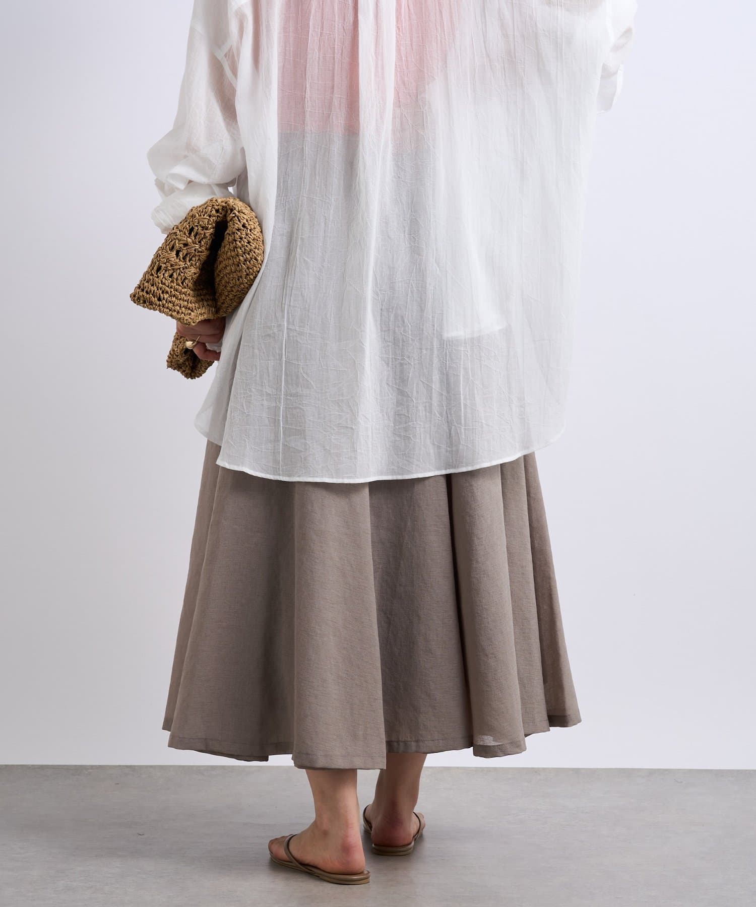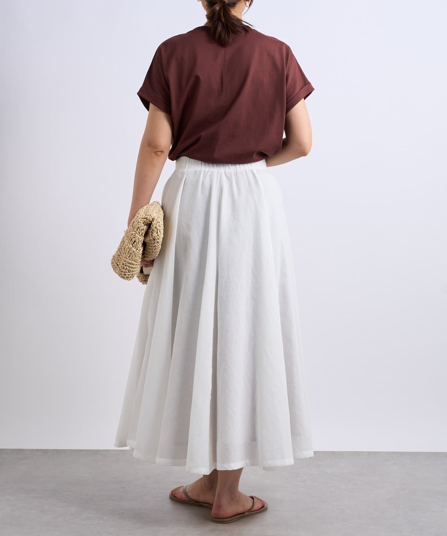 ギャザーがたっぷりでフレアーに広がるシルエットなので、ゆったりと履くことができます。
