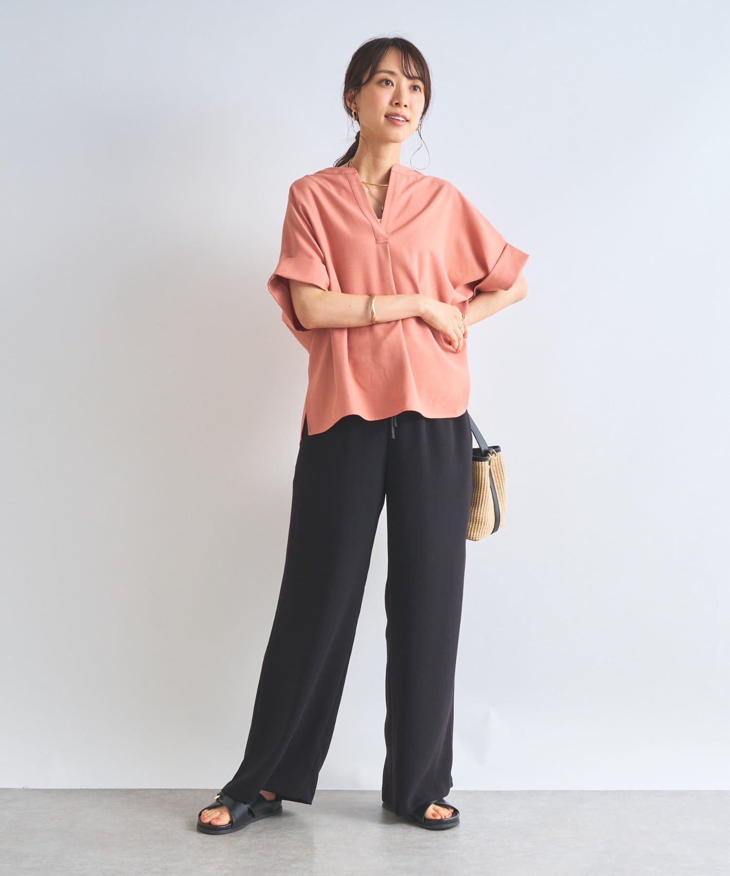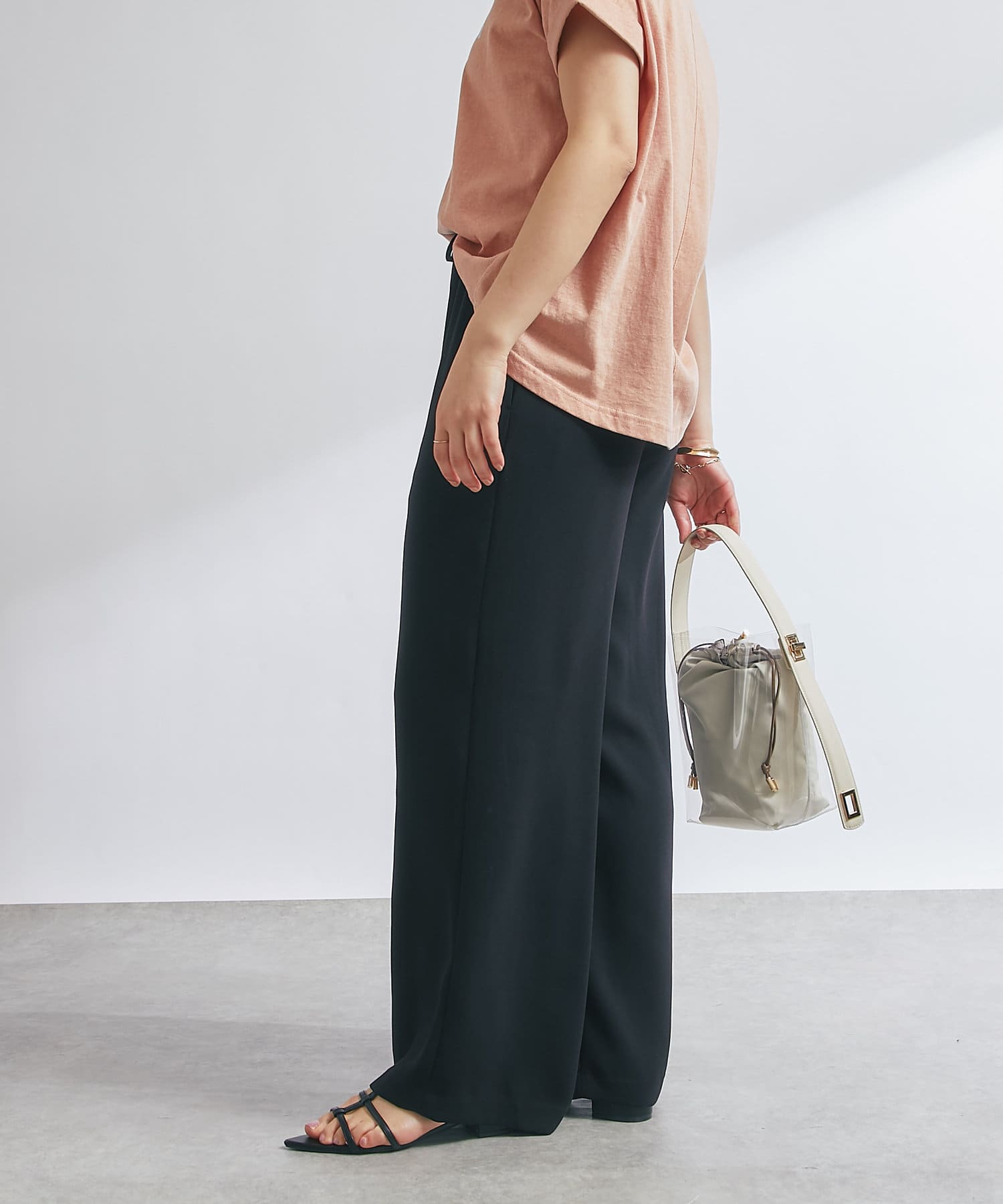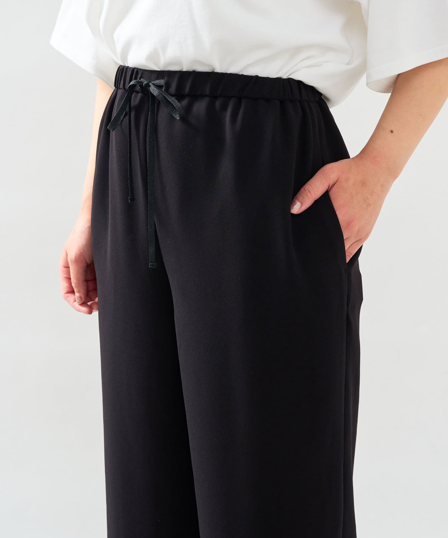 落ち感のあるシルエットとウエストゴムなので、軽やかにフィットし楽ちんに履けます。