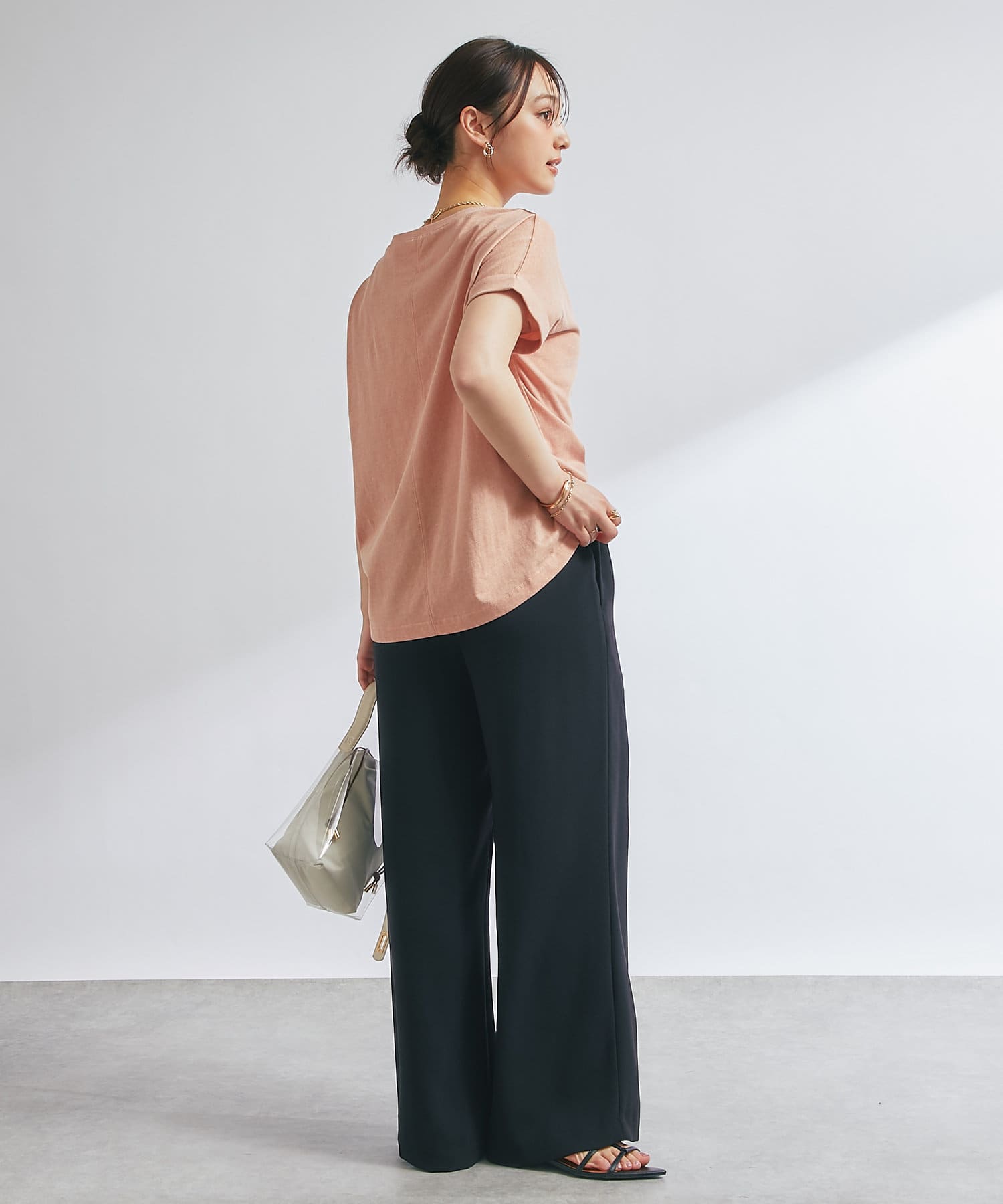 シンプルなカジュアルめのカットソーを合わせても、パンツの程よくゆったりめシルエットでこなれ感をプラスしてくれるのでおすすめです。