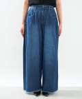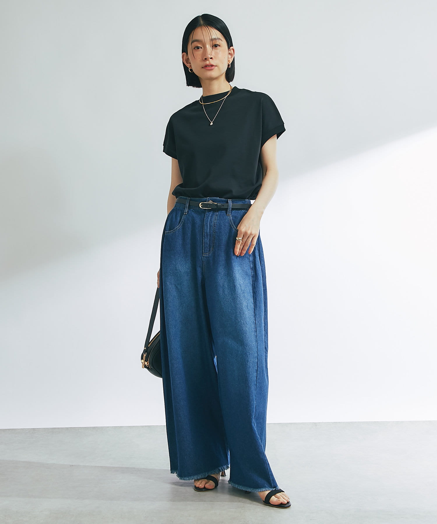 シンプルなロゴTなどと合わせると、デニムパンツのシルエットがアクセントになるコーデに。