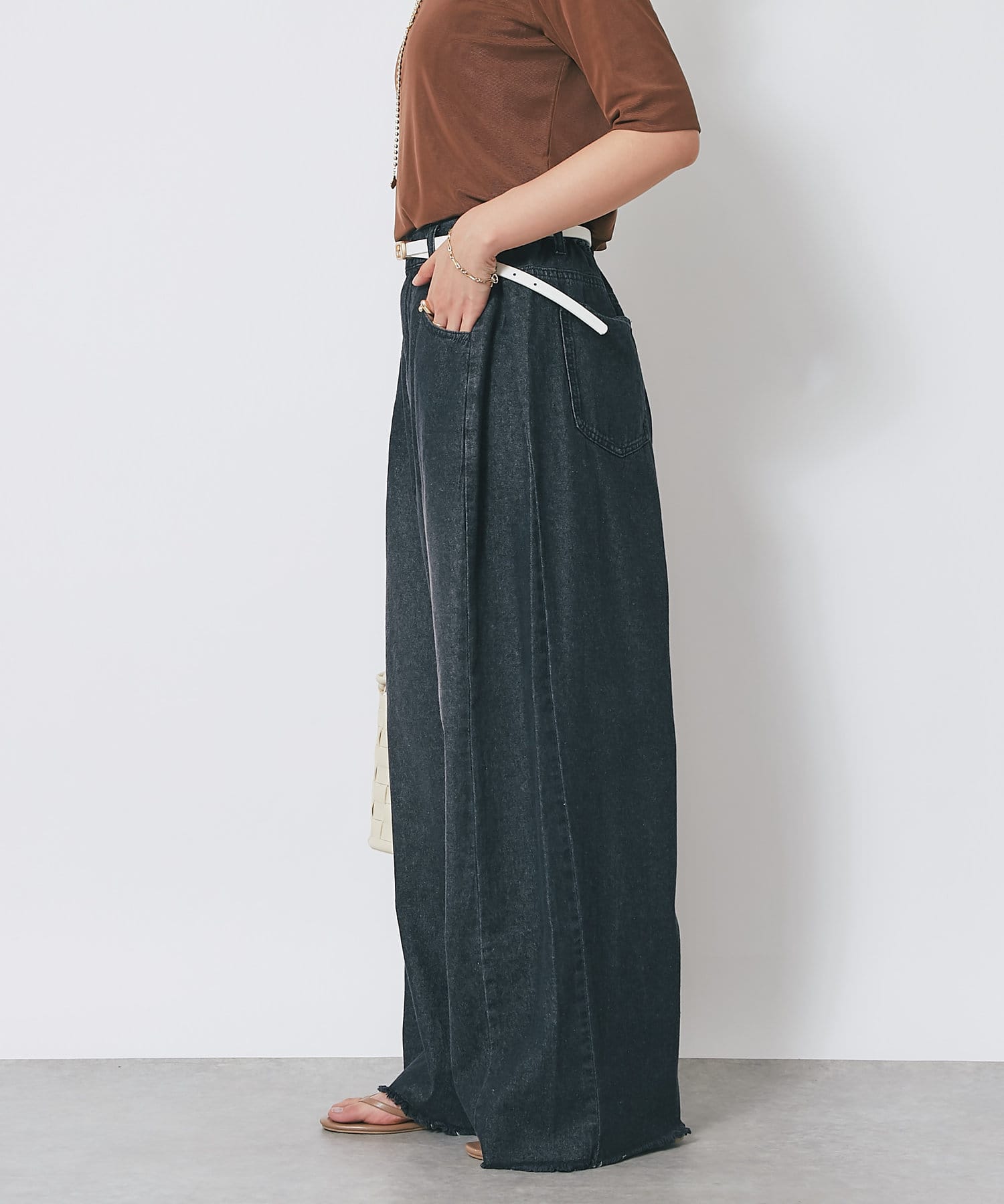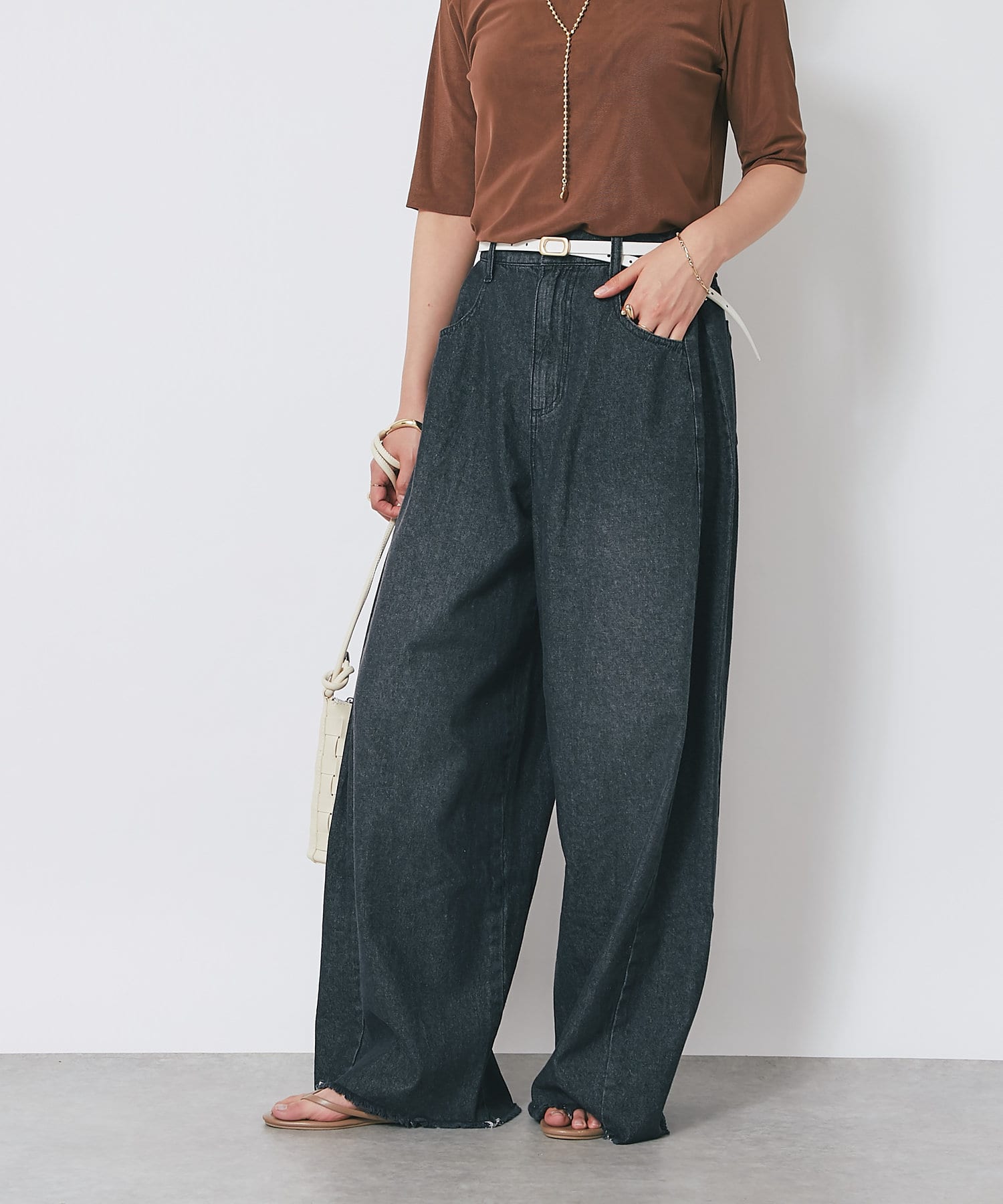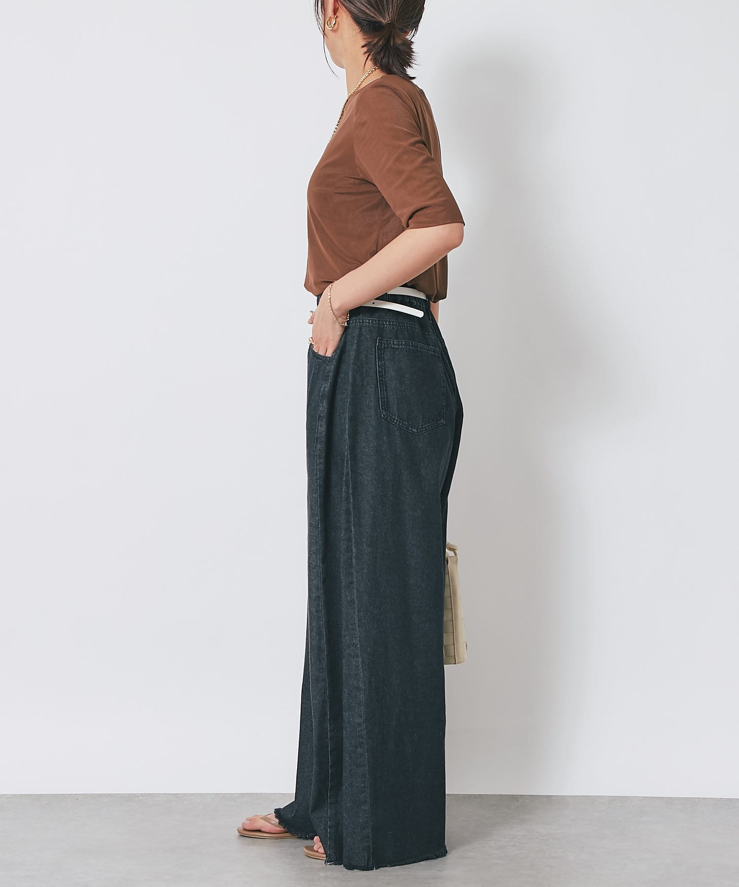 ブラックは重ためな印象になりがちですが、このデニムパンツのブラックは濃さを感じない色合いなので、