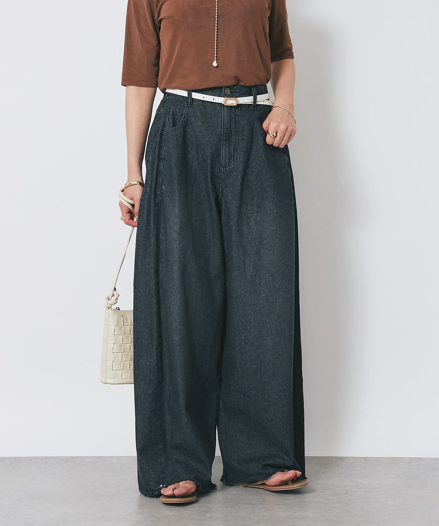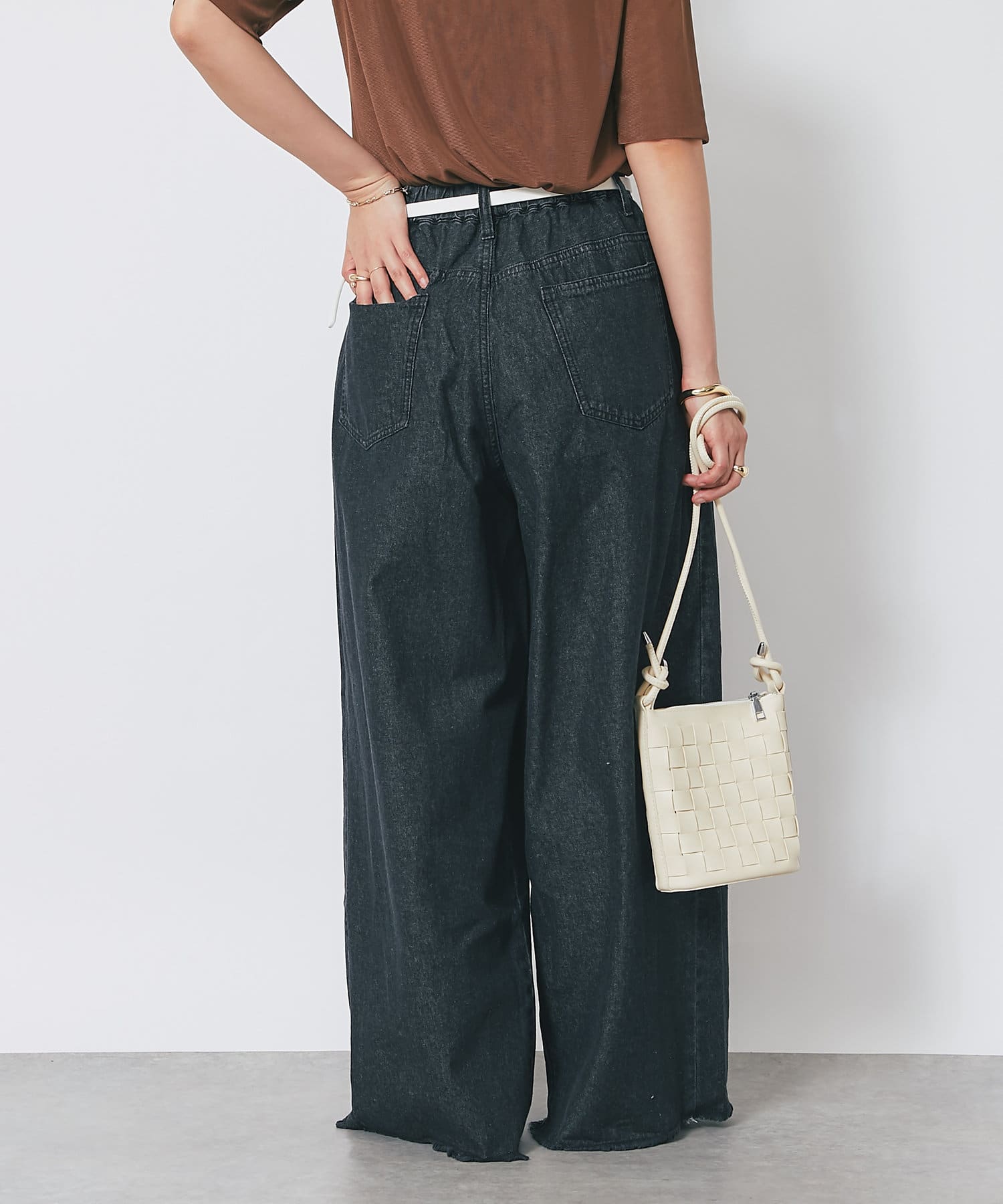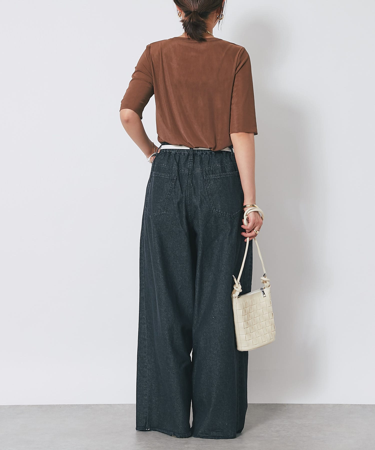 ブラックは重ためな印象になりがちですが、このデニムパンツのブラックは濃さを感じない色合いなので、