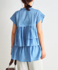 バックデザインのフリルとさりげない透け感が魅力のブラウス