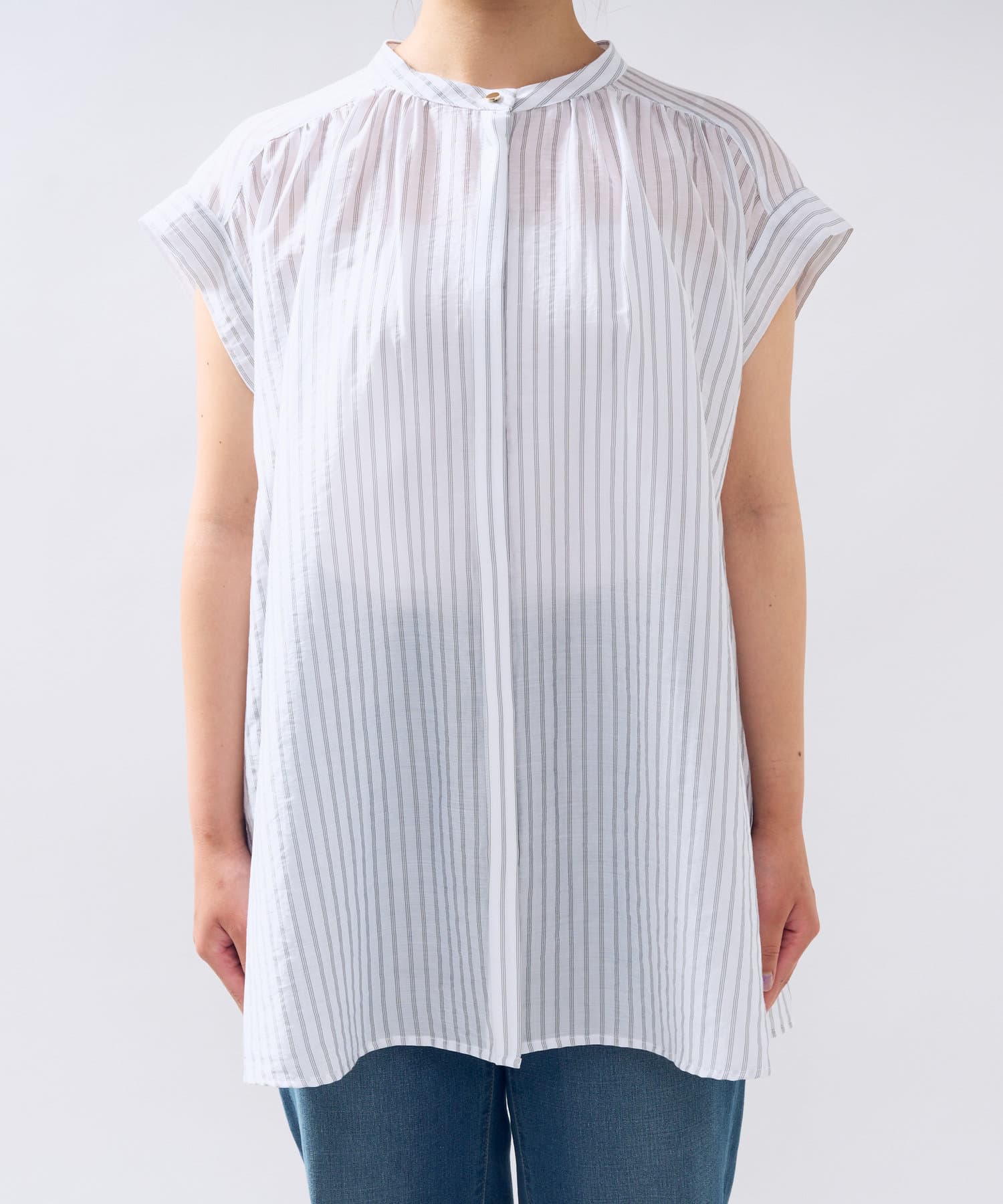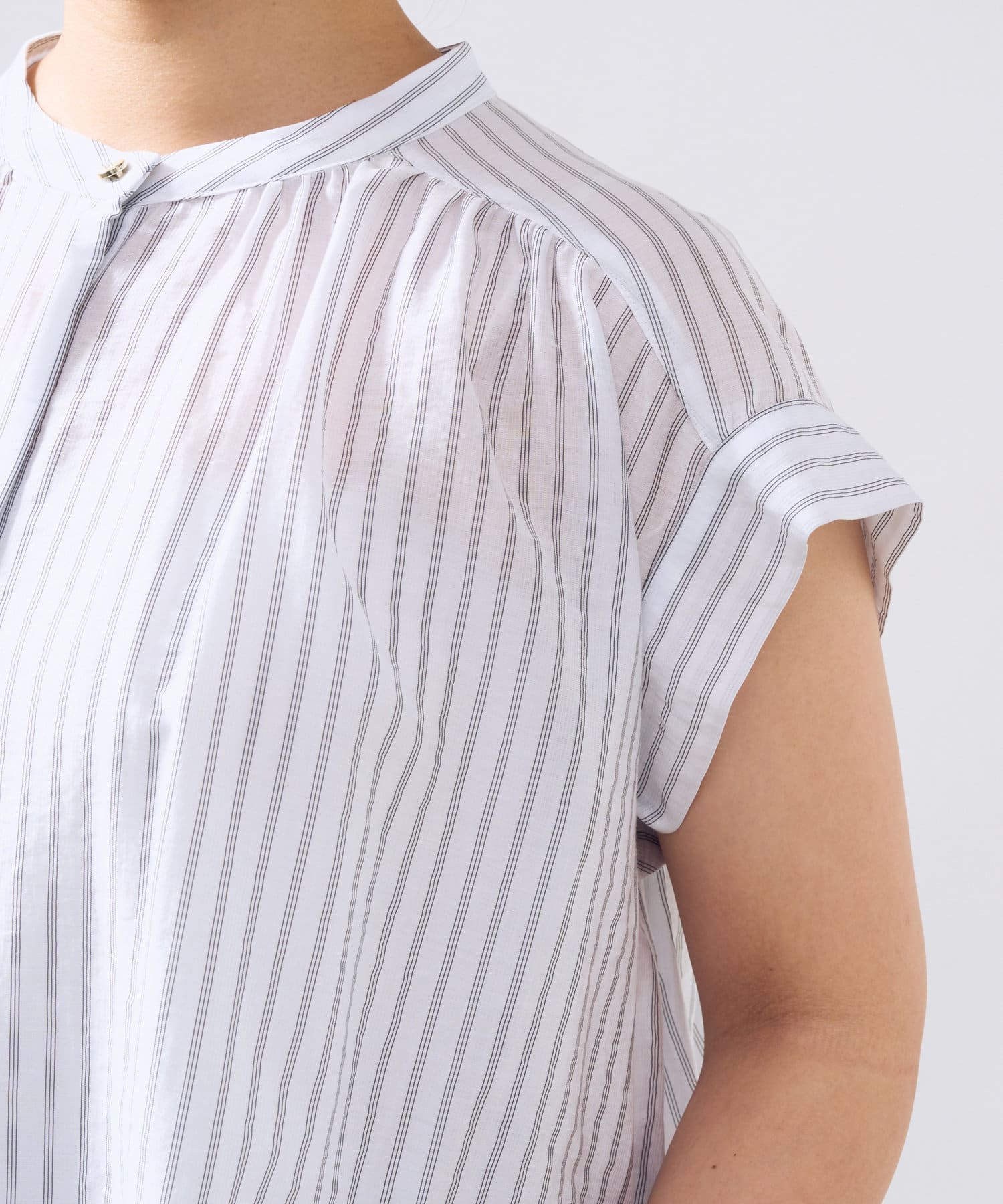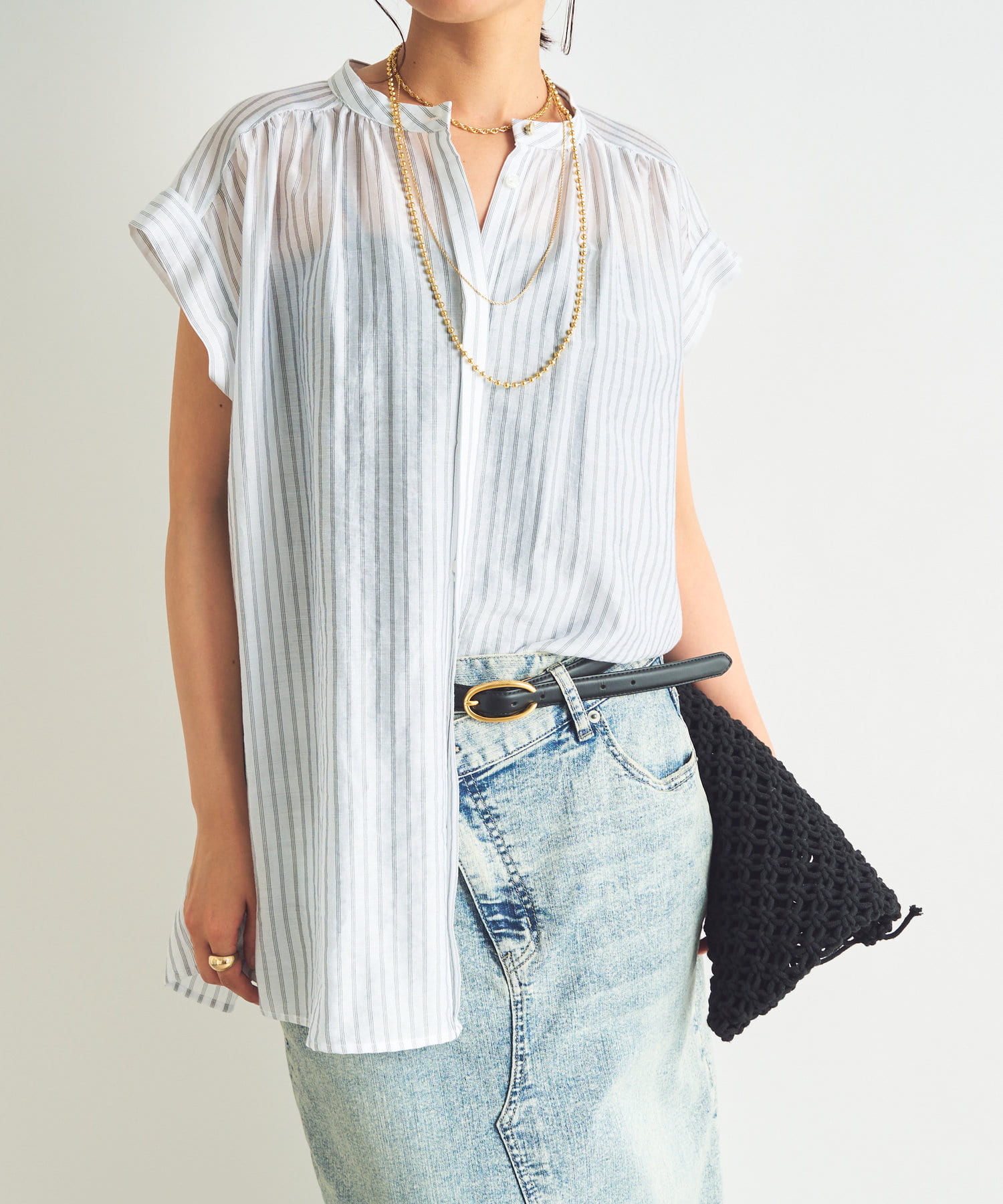 シアー素材なのでストライプ柄が主張しすぎず、デイリーに取り入れやすいと思います◎