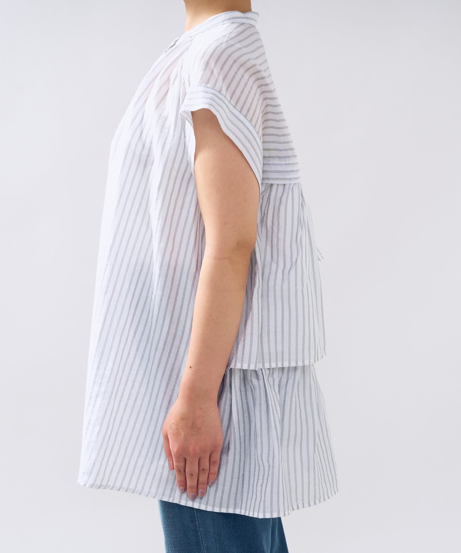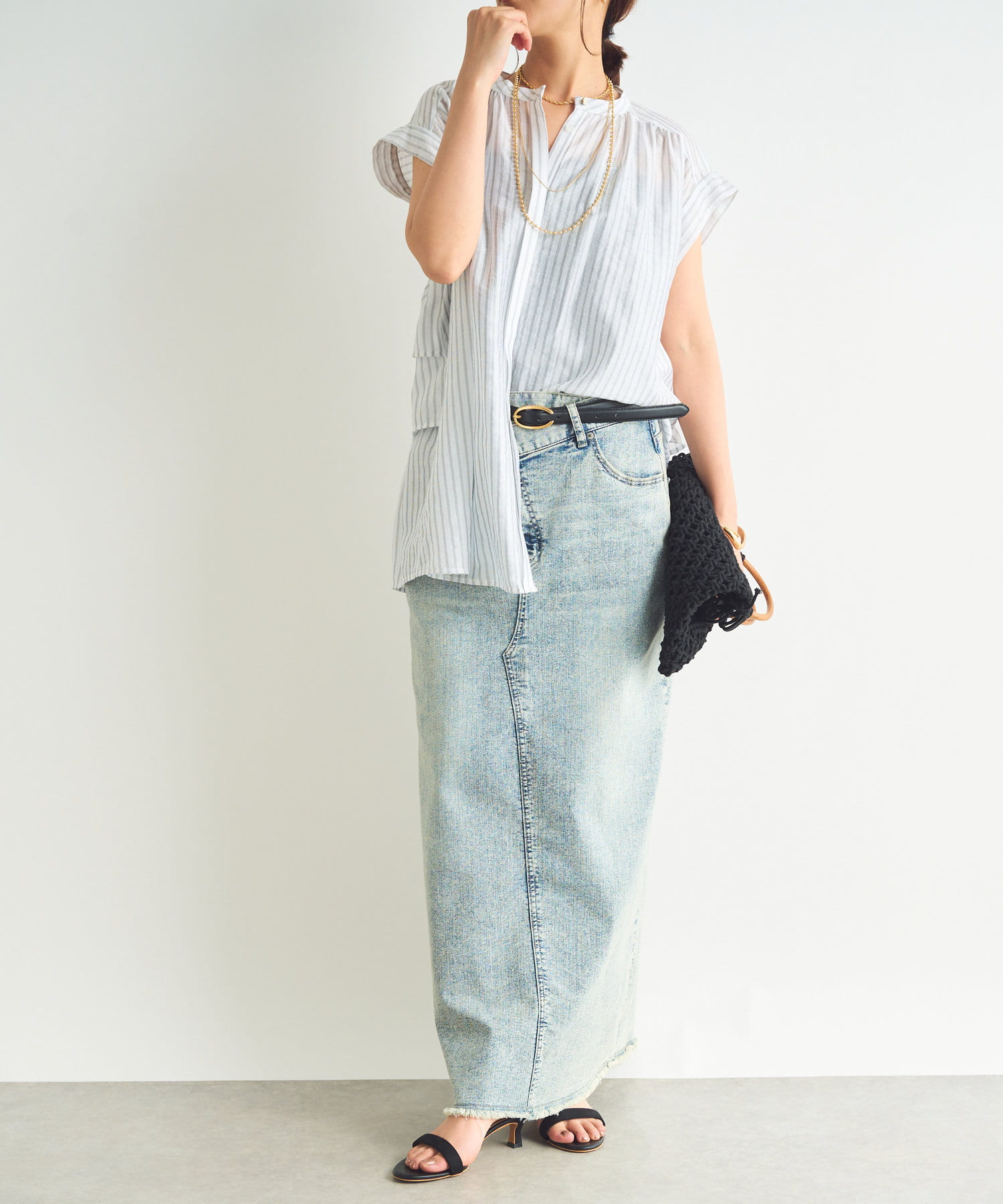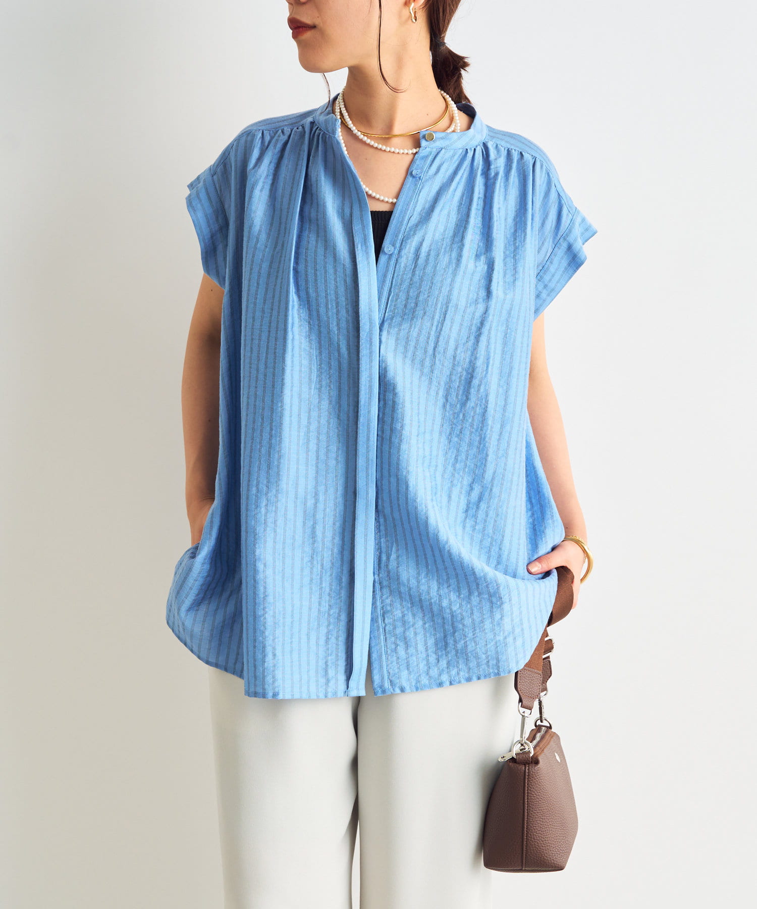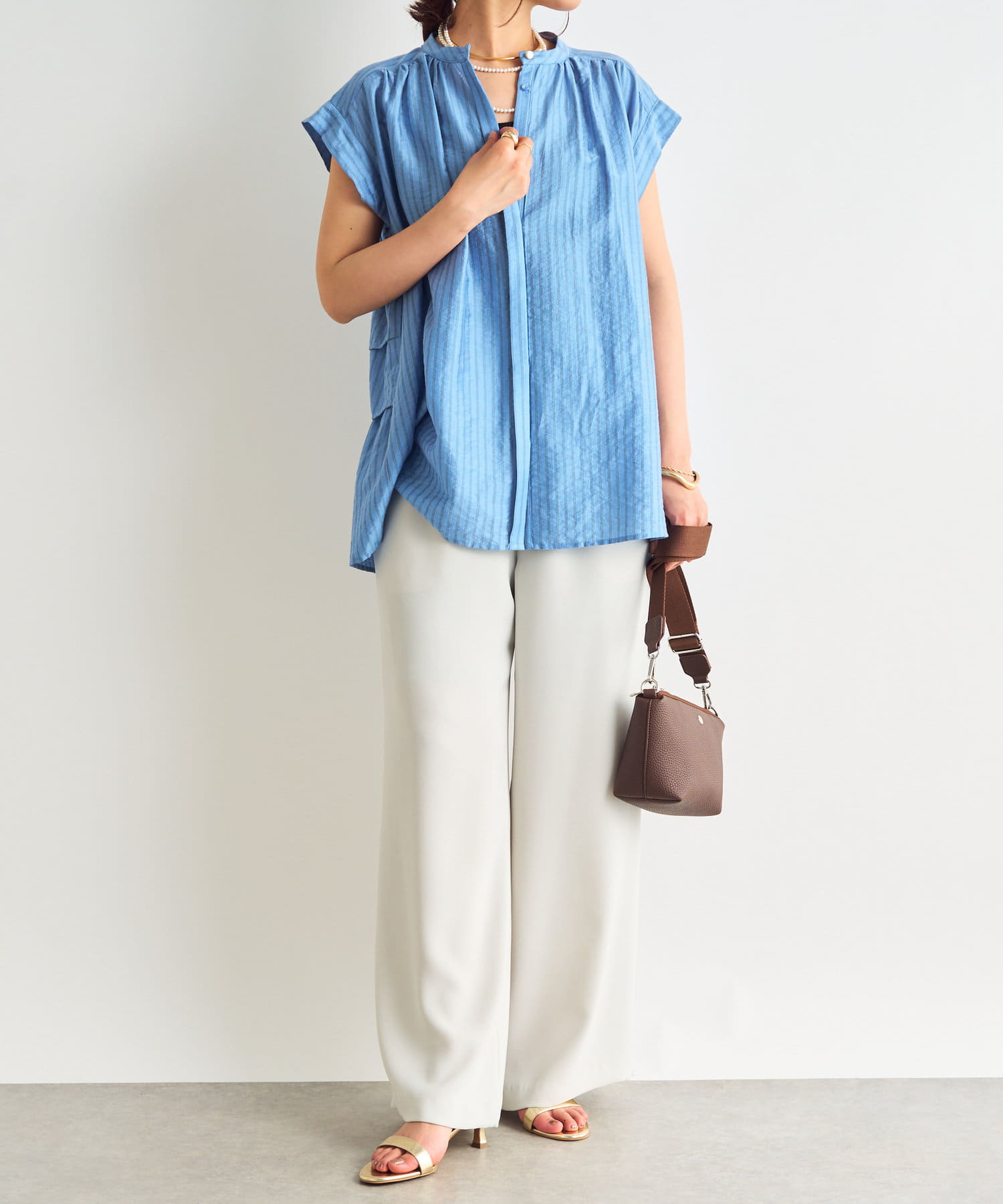 シアー素材なのでストライプ柄が主張しすぎず、デイリーに取り入れやすいと思います◎