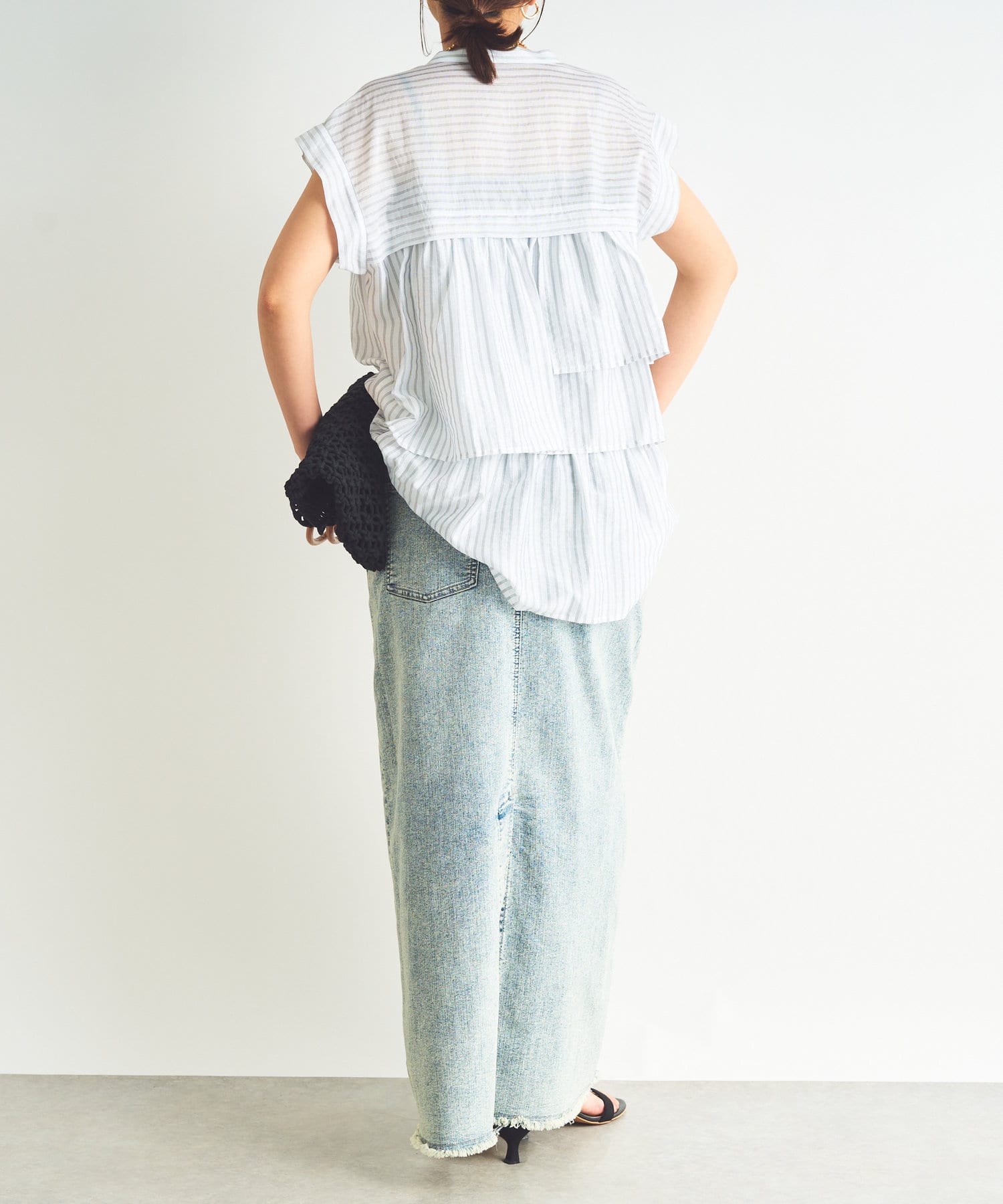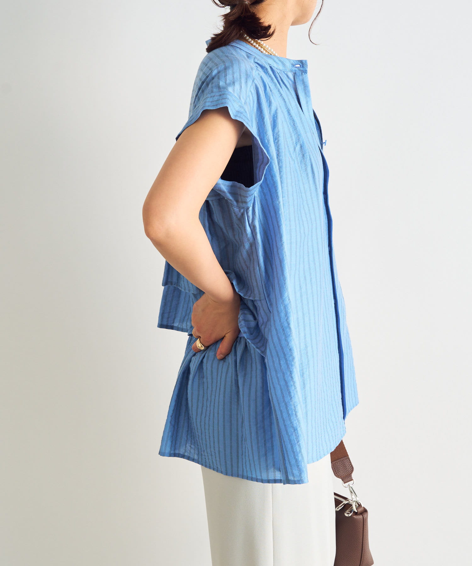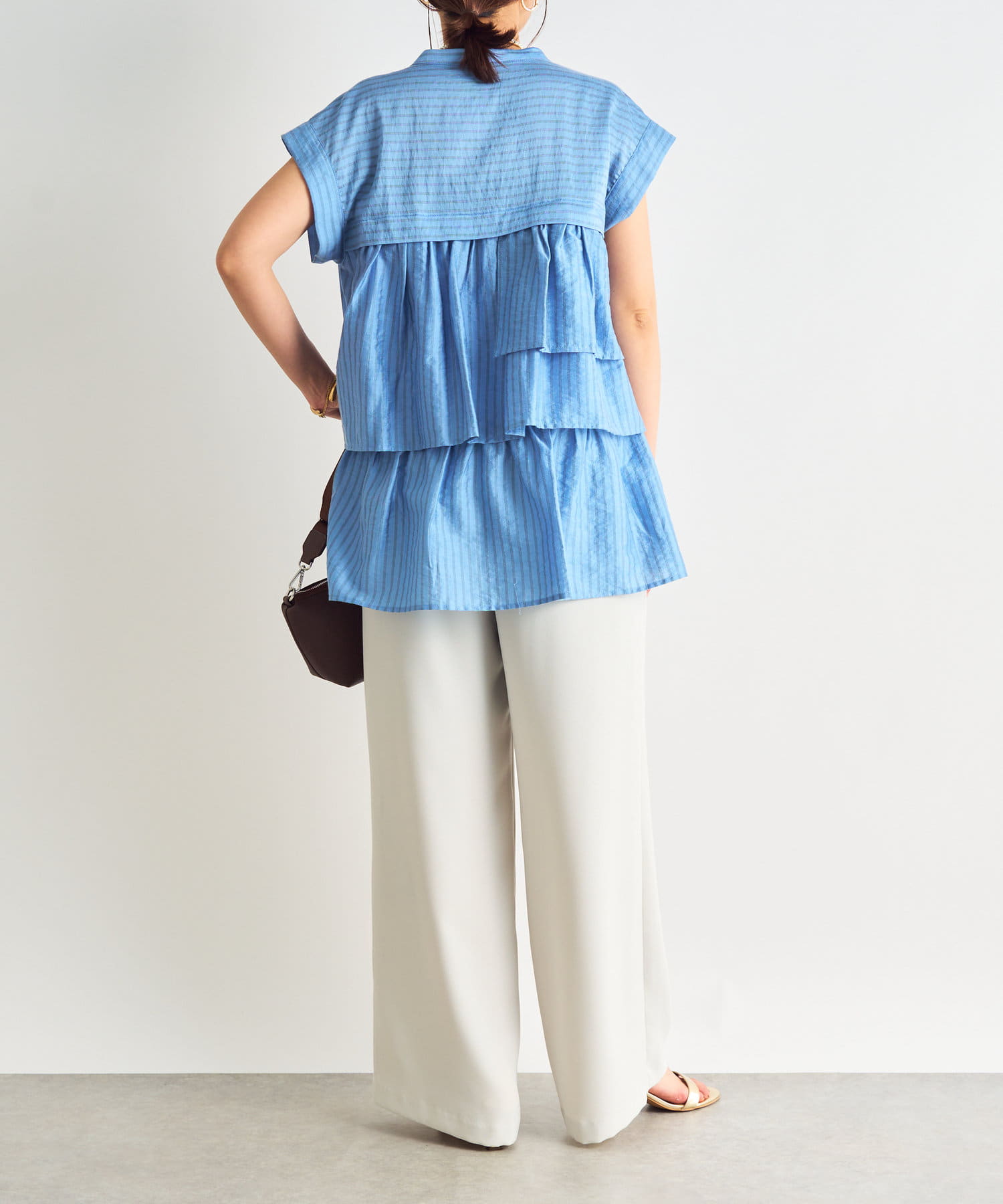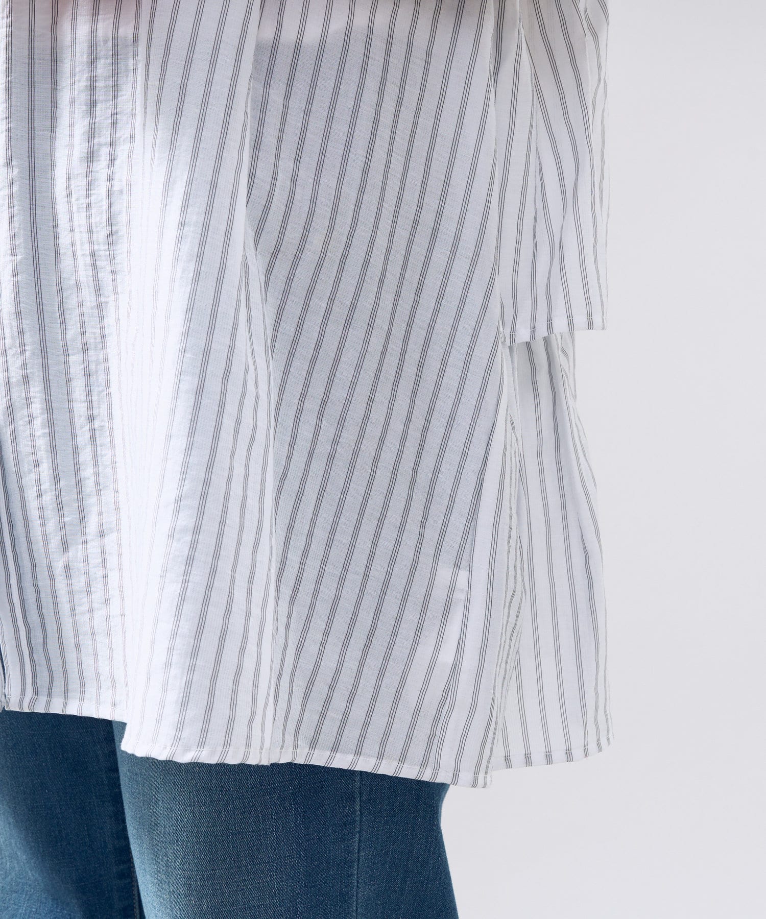 《後ろ姿も綺麗に決まる◎》シアードビーストライプブラウス