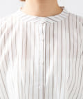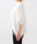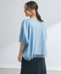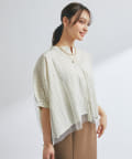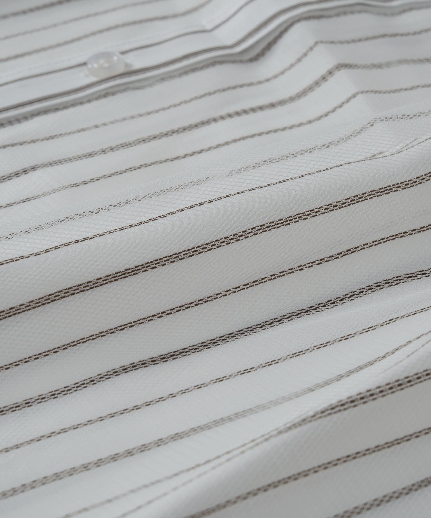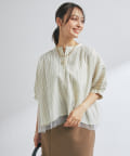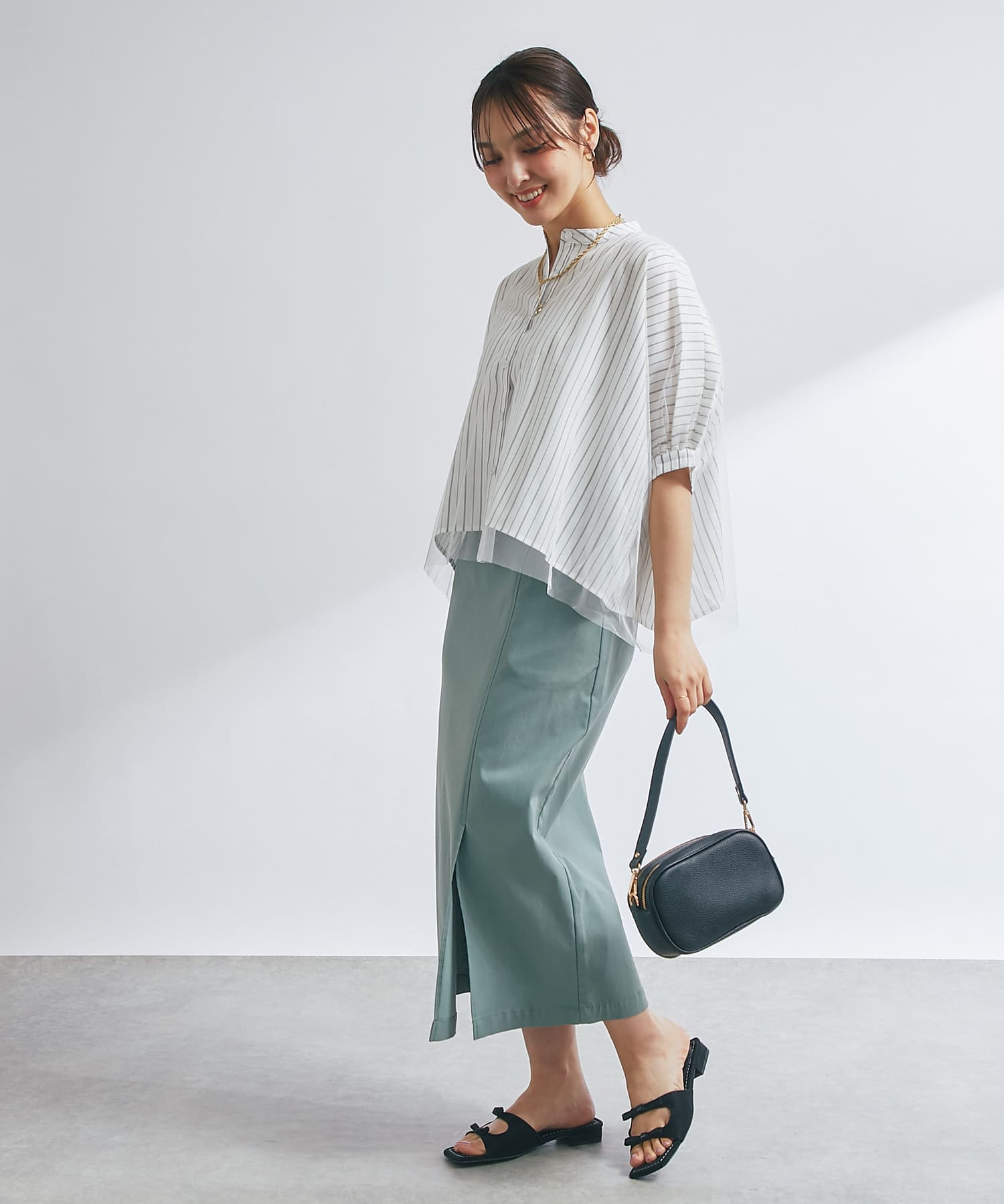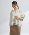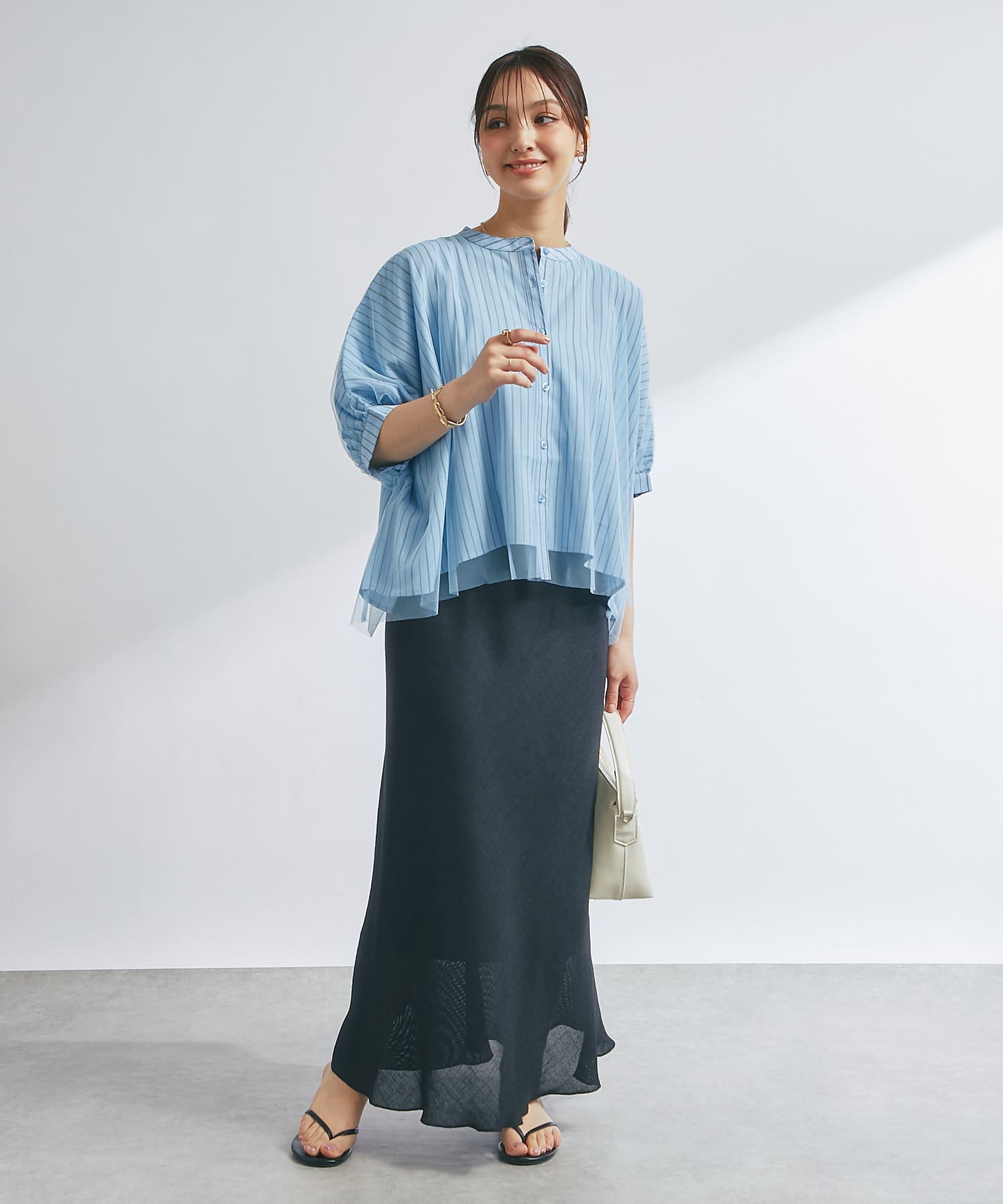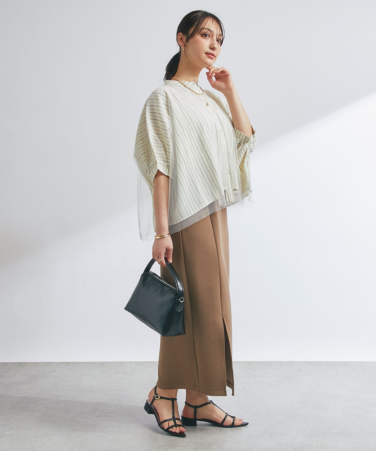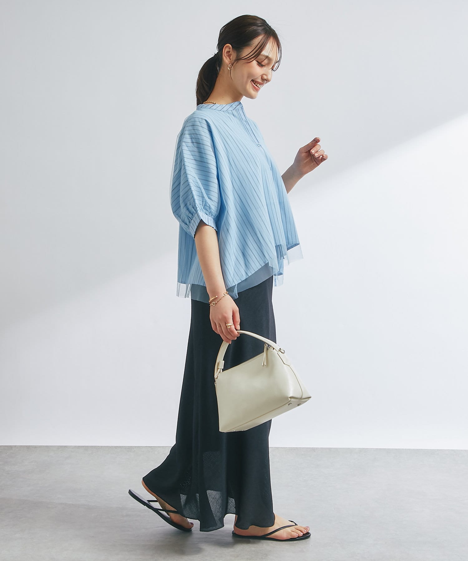 ・ストライプ柄にチュールを重ねた、軽やかなレイヤードブラウス。