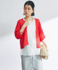 綺麗めノースリーブワンピの上に羽織ることで、オフィスシーンでも活躍するきちんと感のあるスタイリングにまとめてくれます。