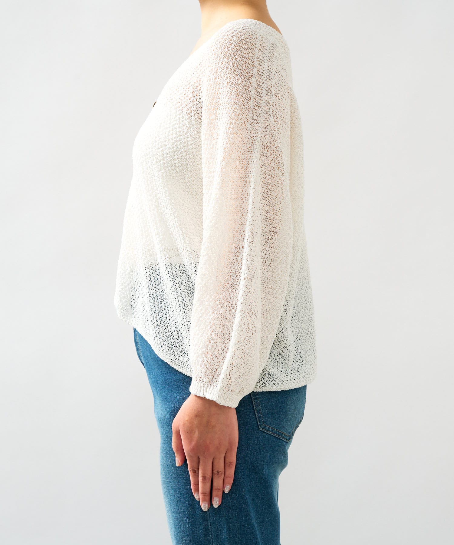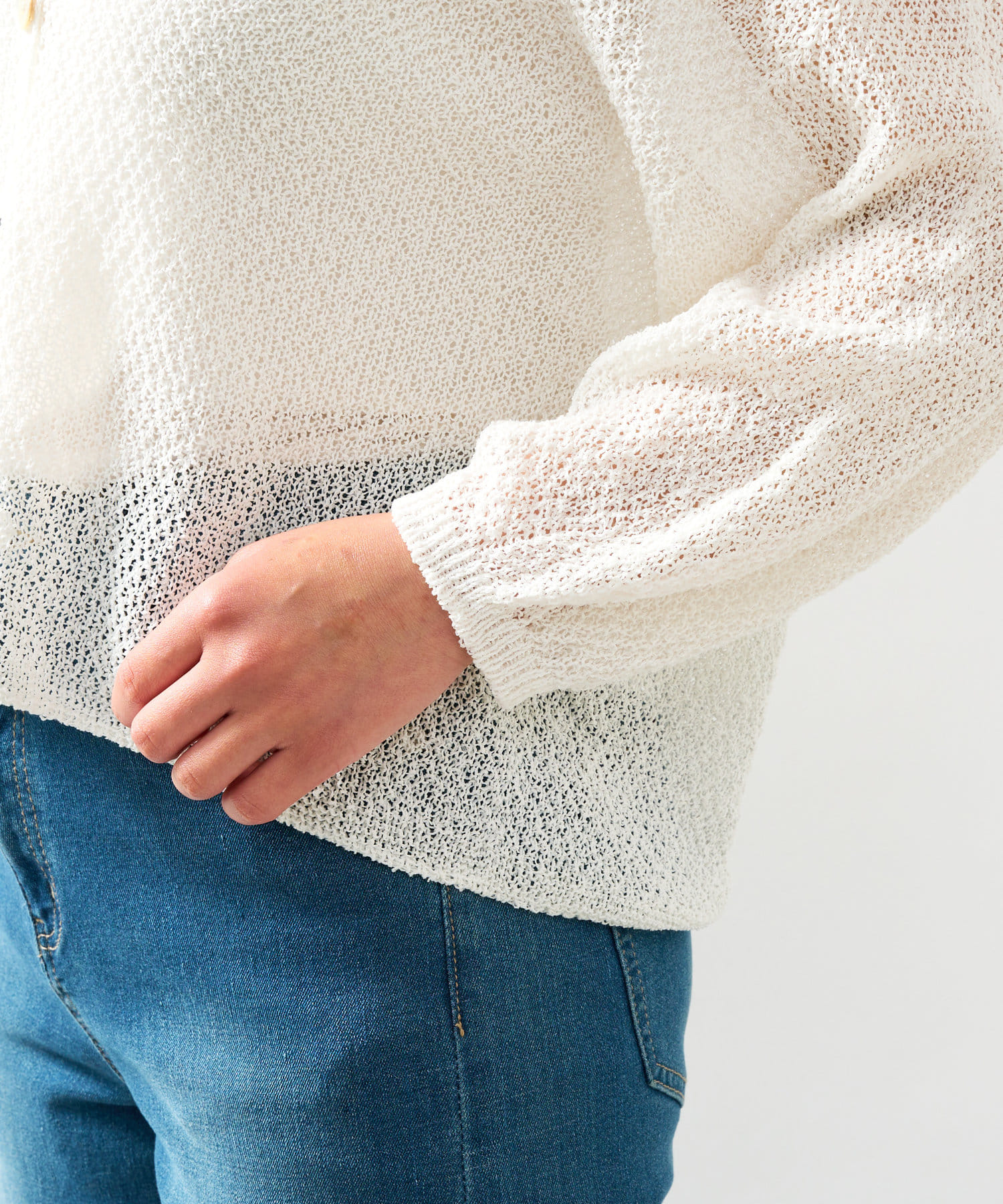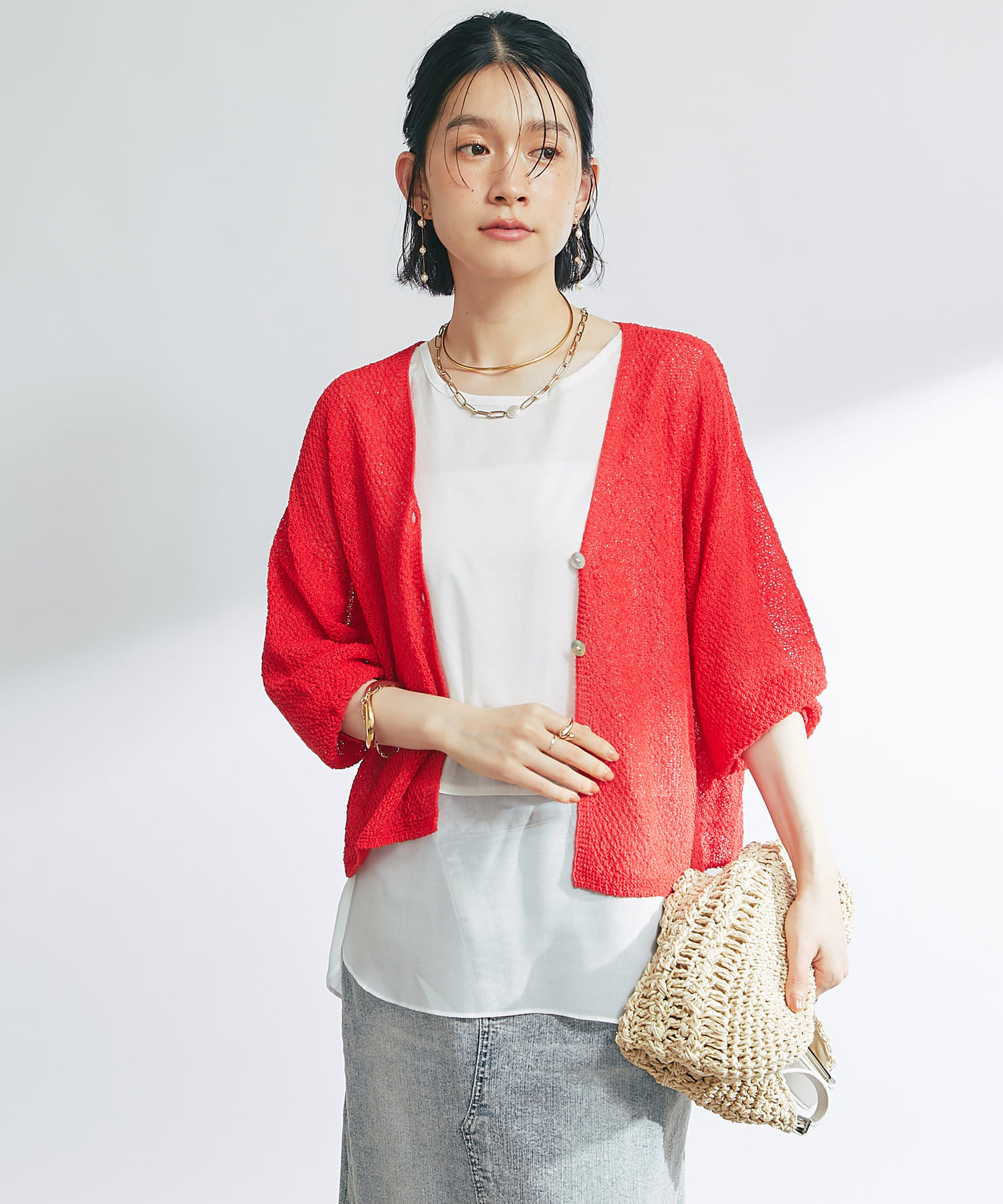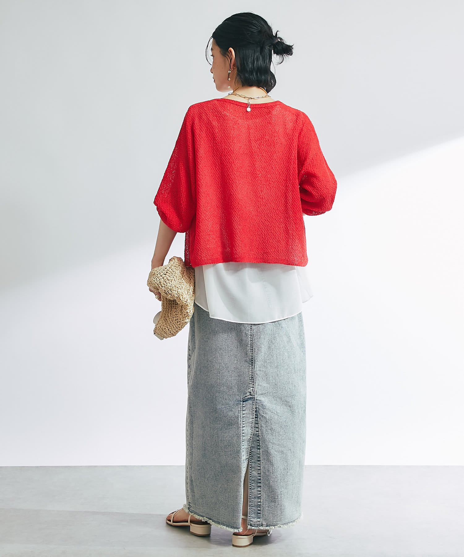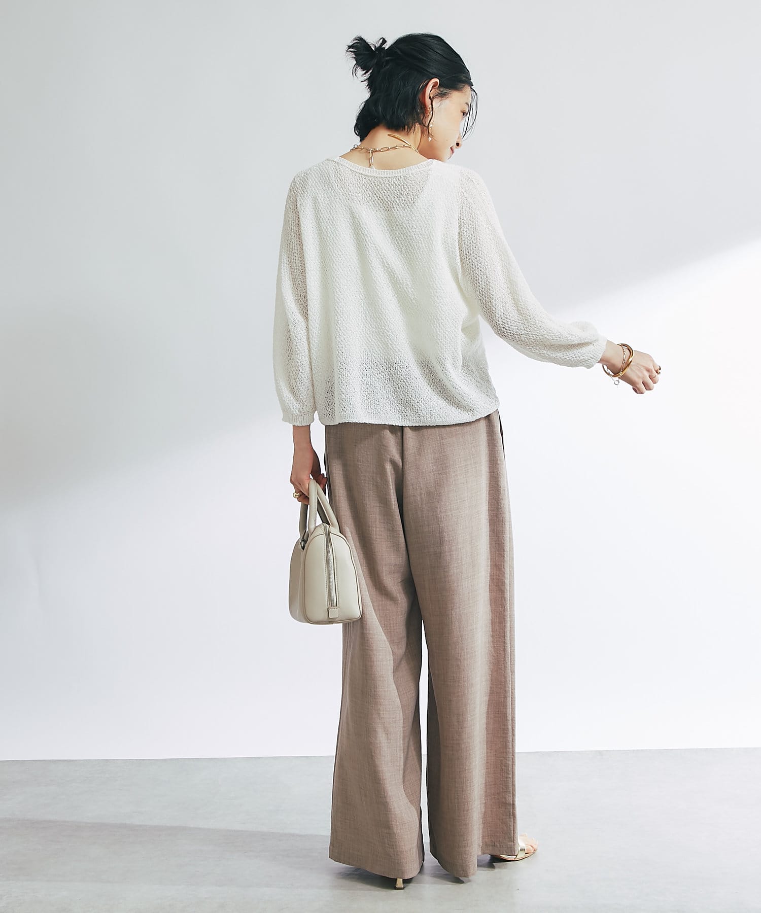 ・さりげない透け感と立体的な編地が、コーデにこなれ感をプラスしてくれます。