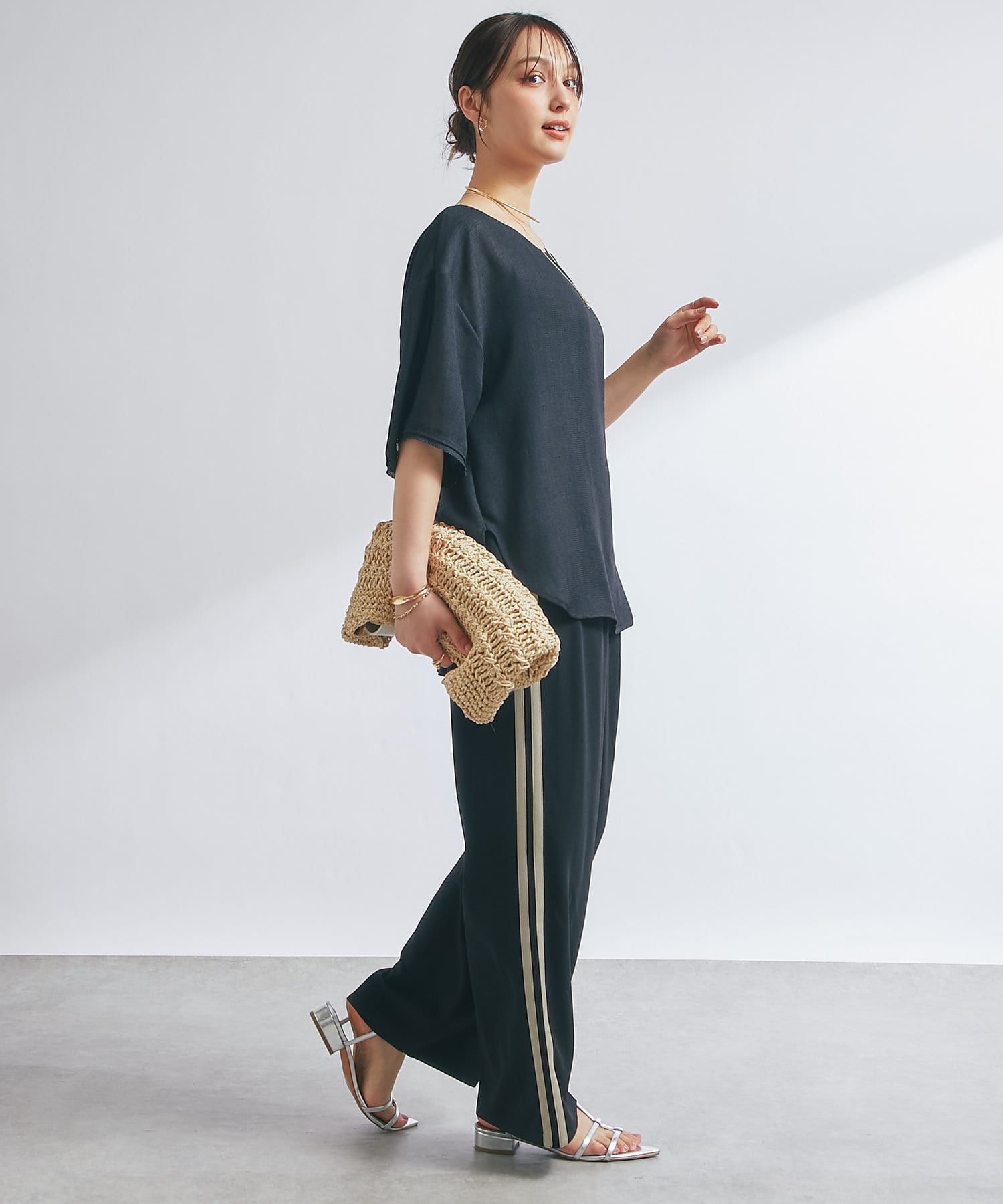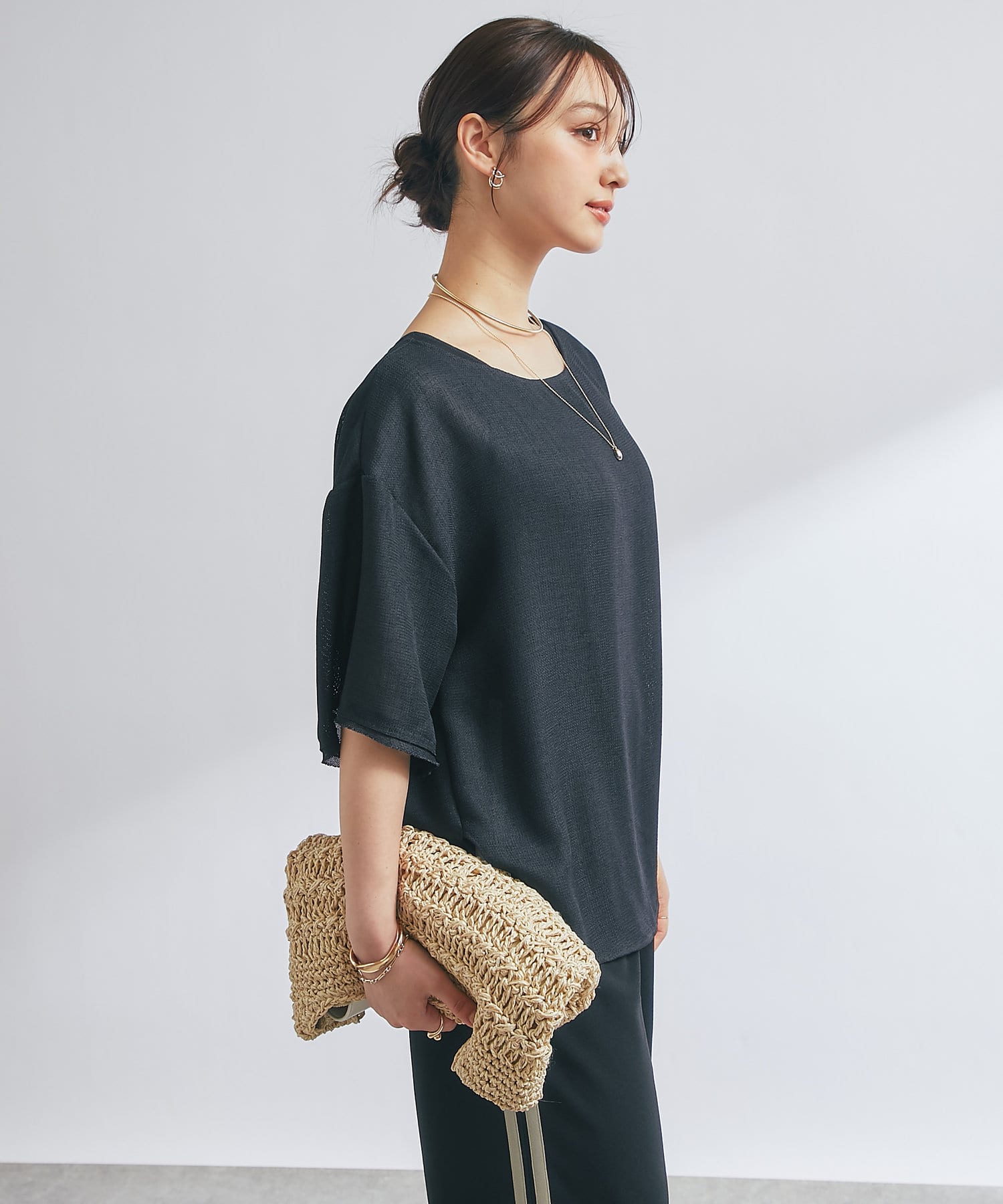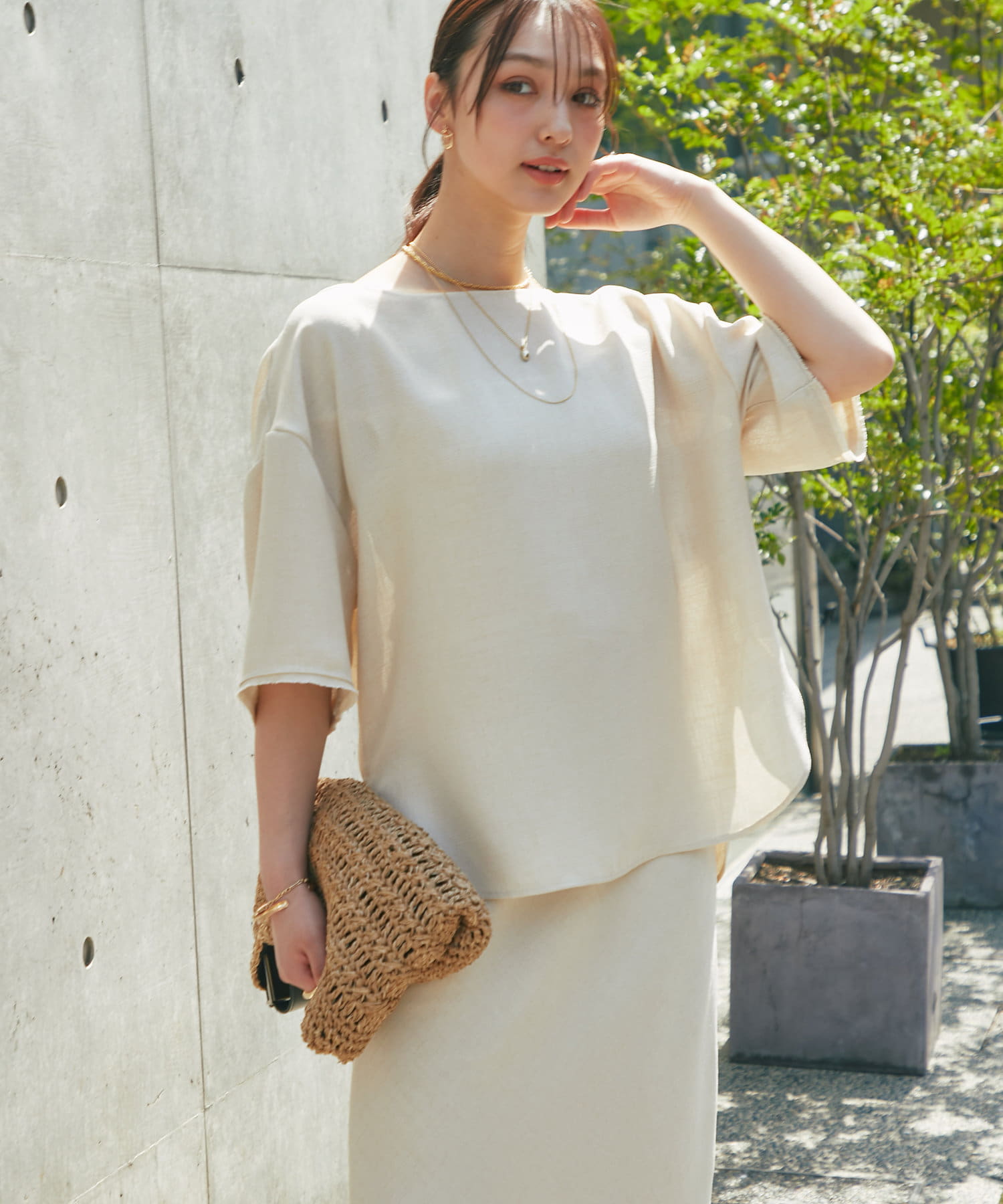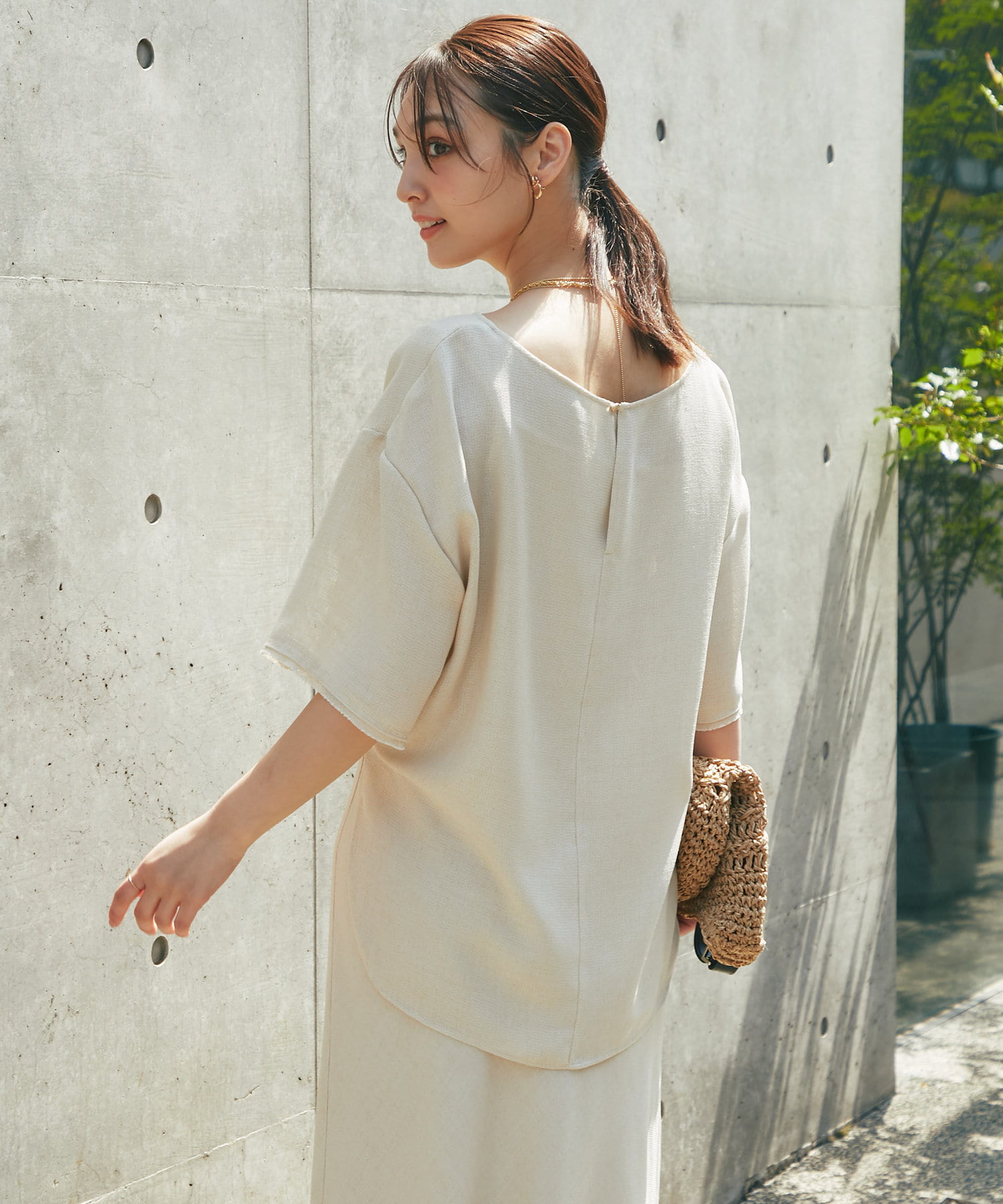 涼しげな素材感のトップスでさらっと快適に着られます。