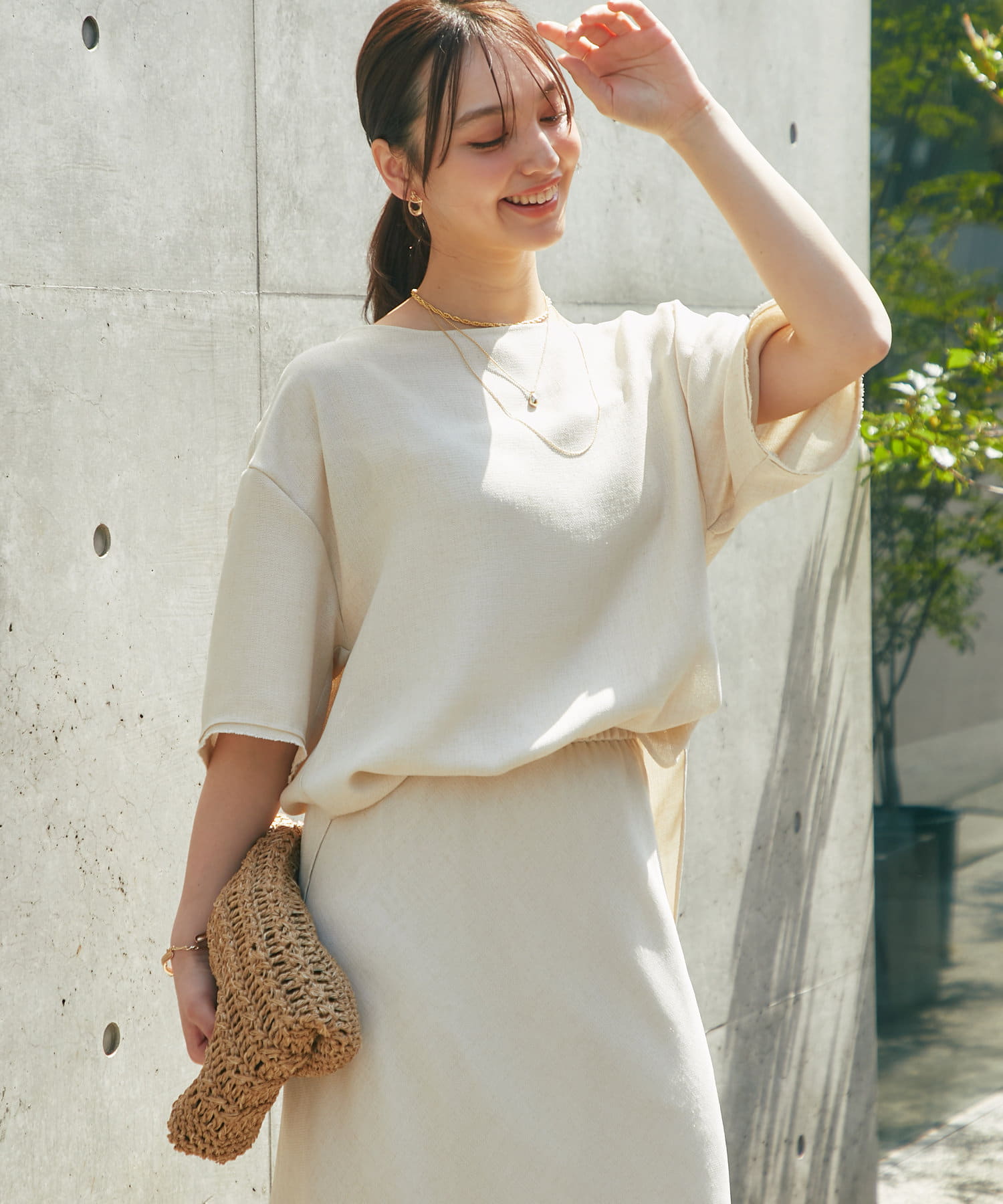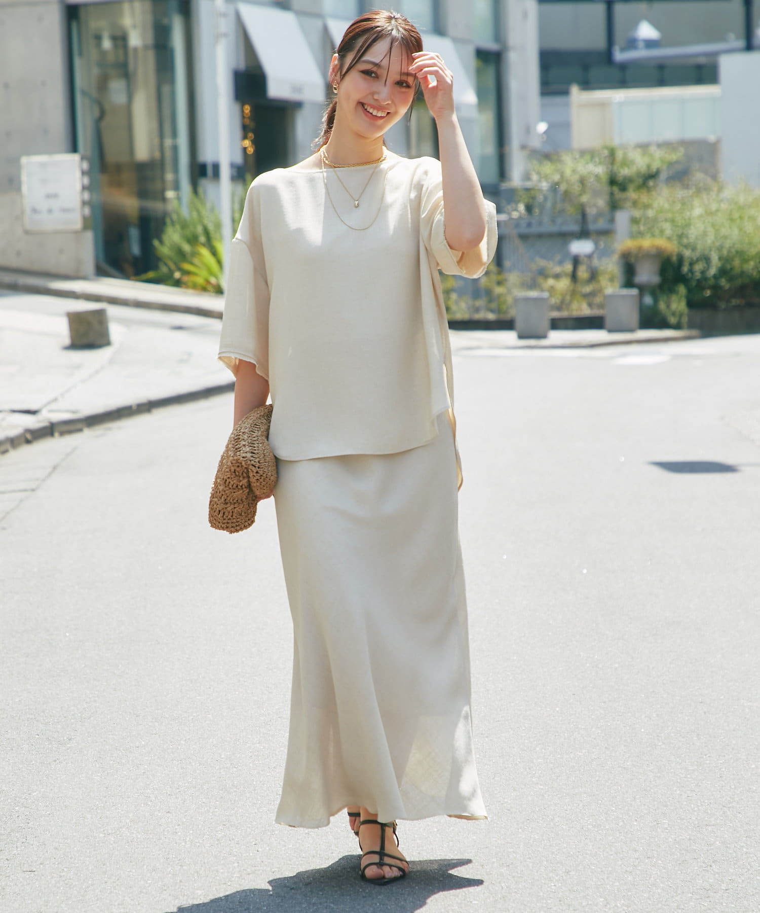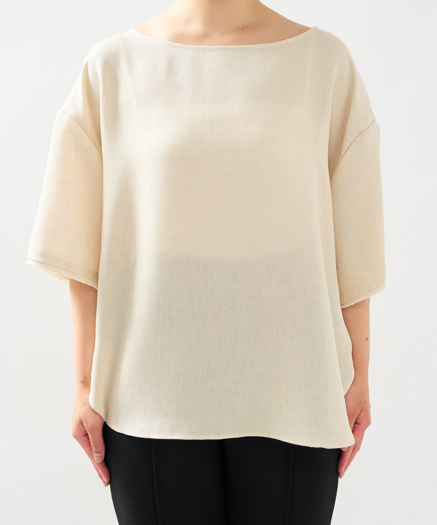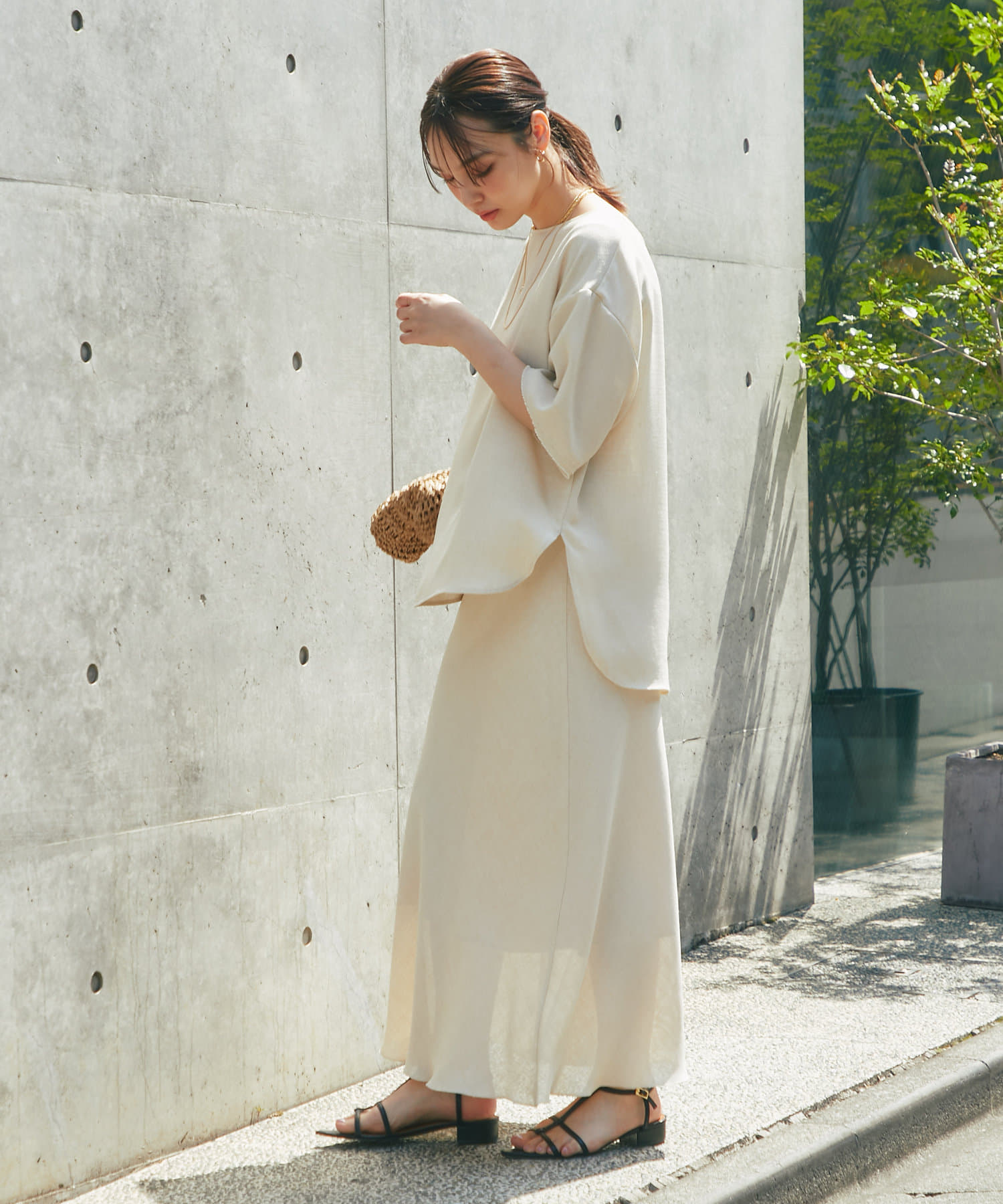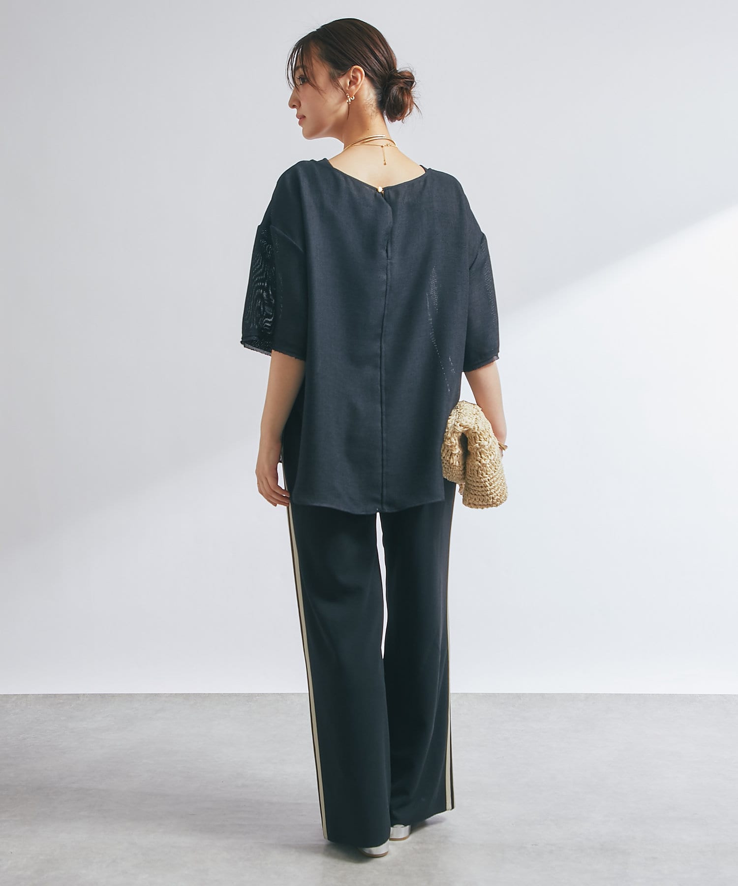 涼しげな素材感のトップスでさらっと快適に着られます。