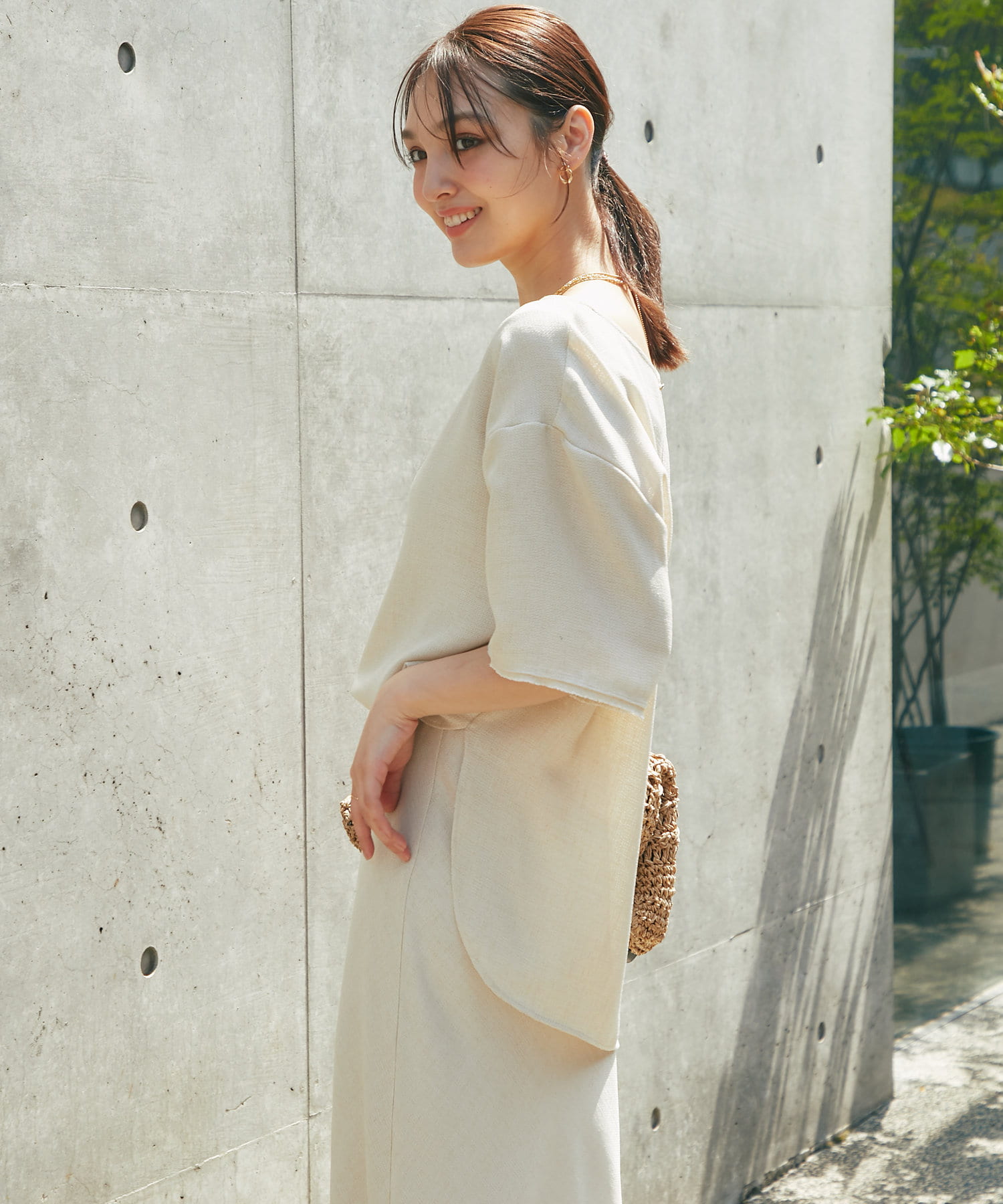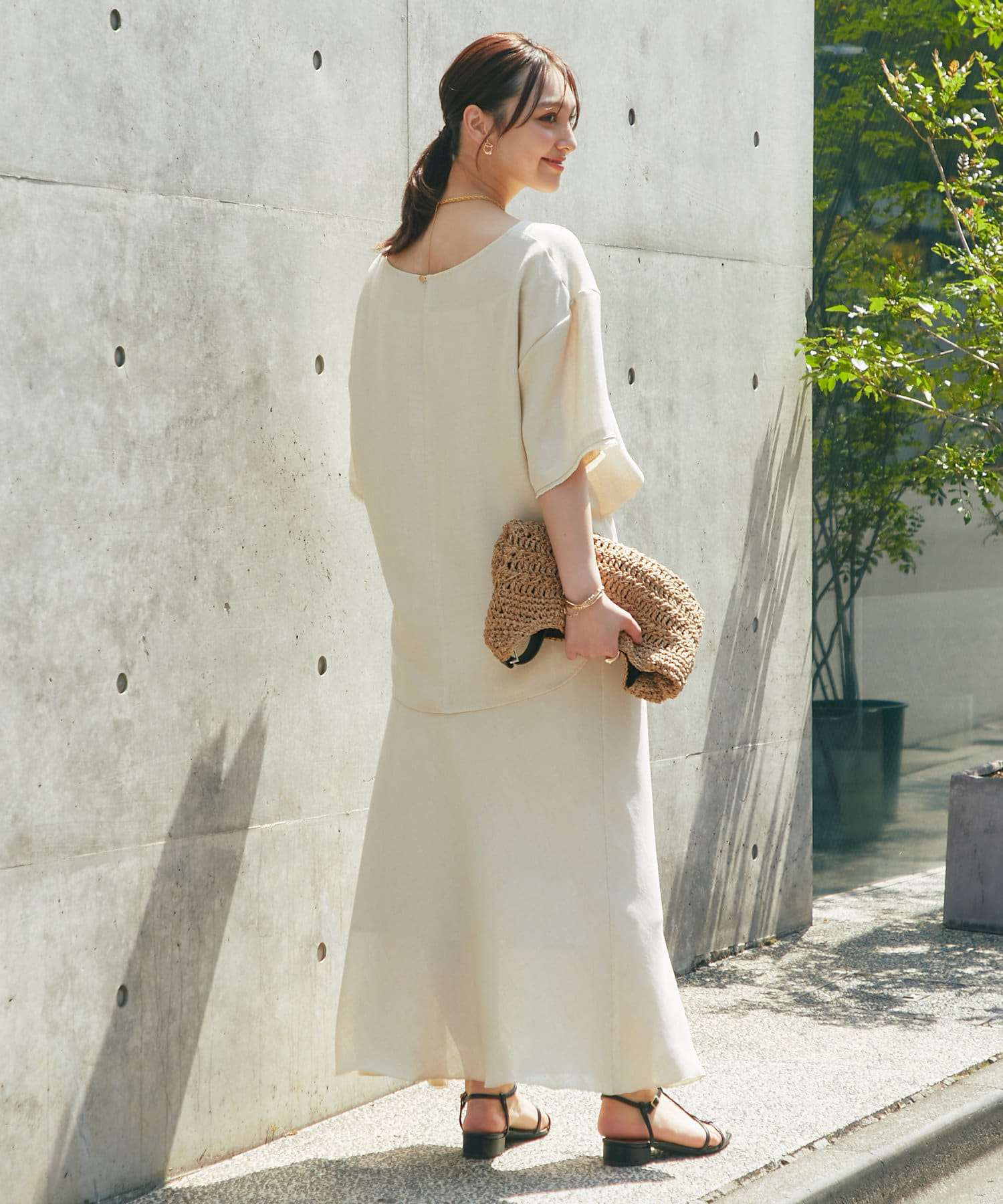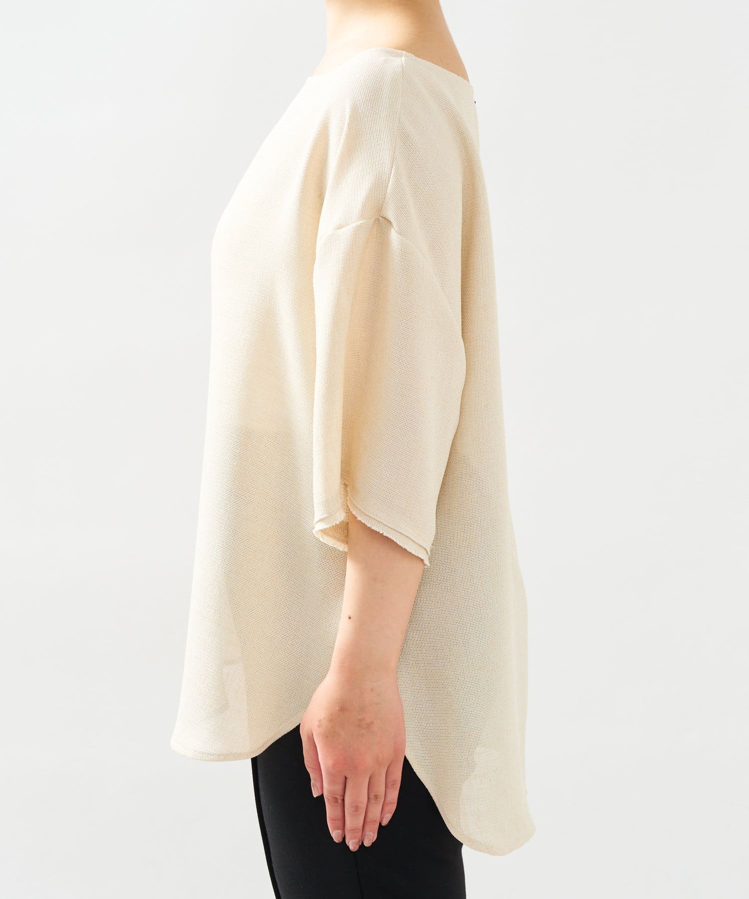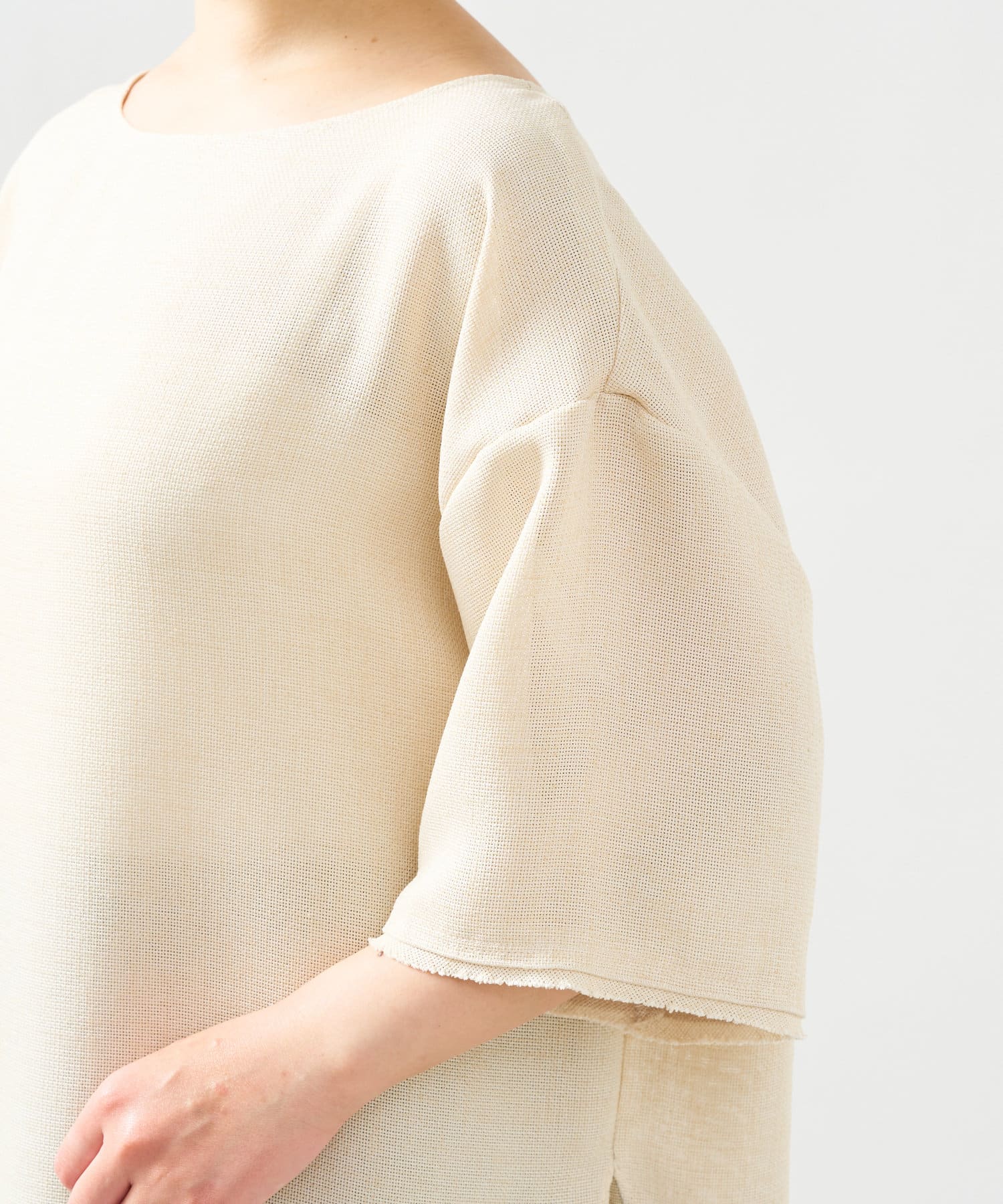 涼しげな素材感のトップスでさらっと快適に着られます。