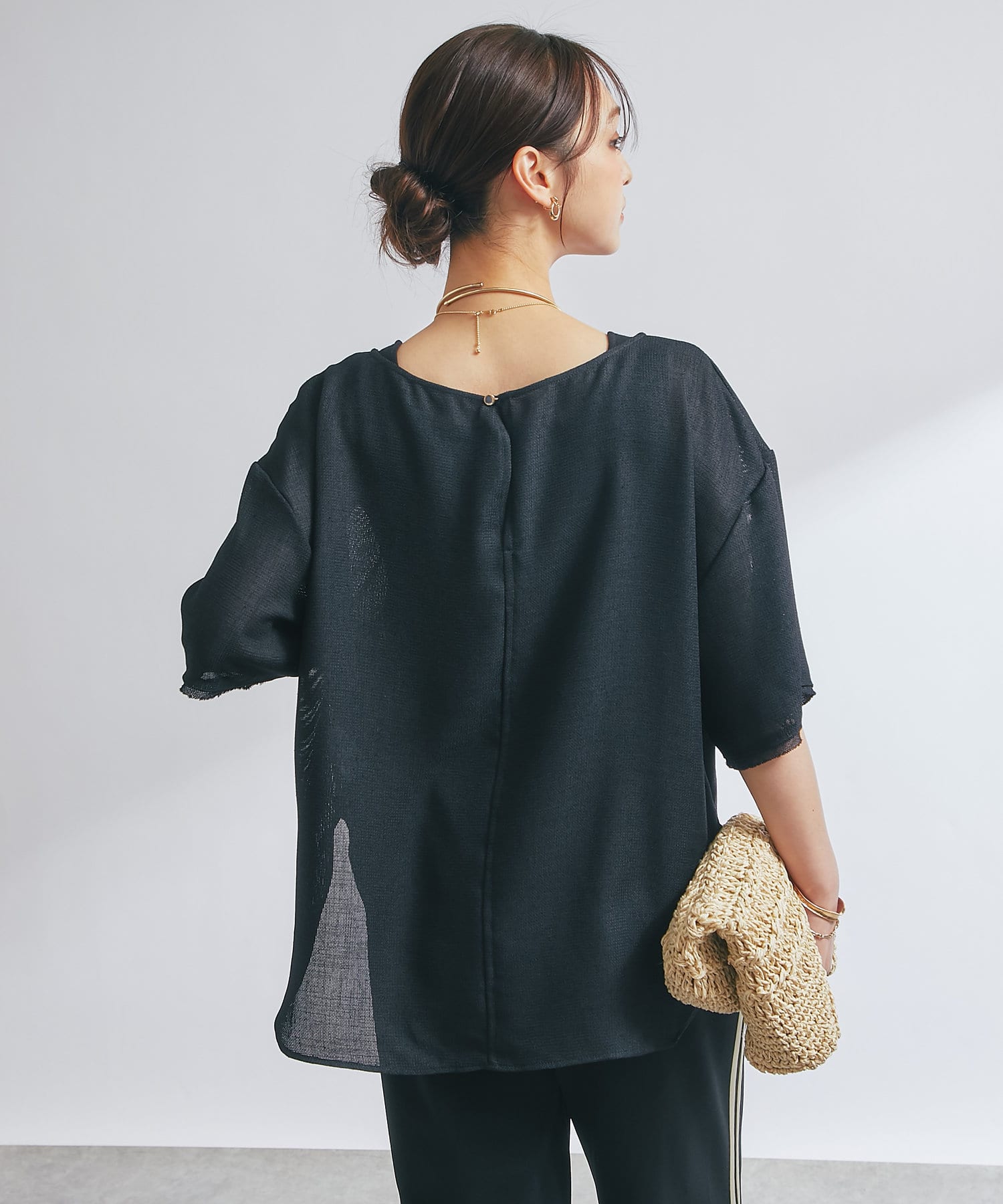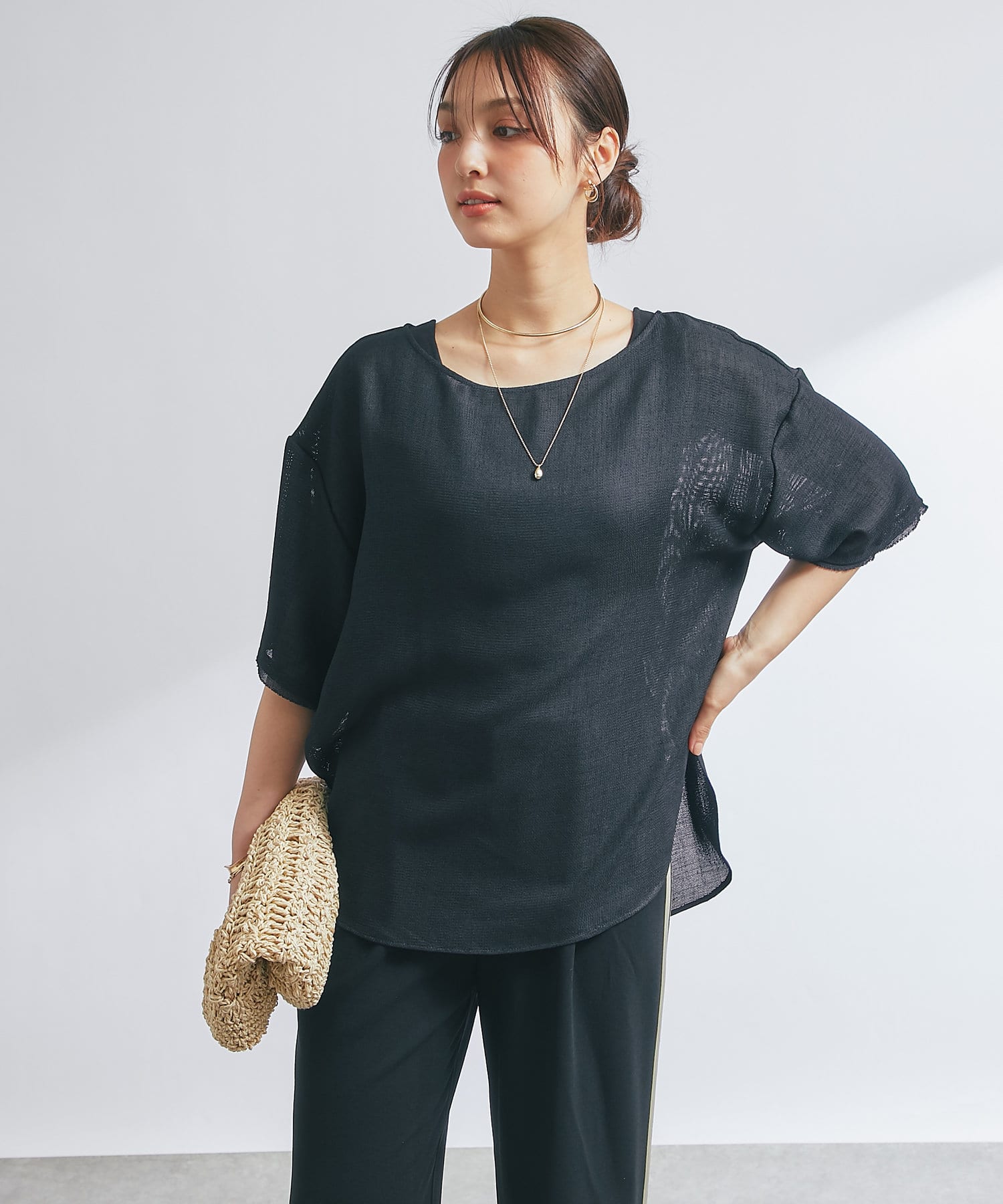 ・程よい透け感でこれからの季節に重宝するトップス。