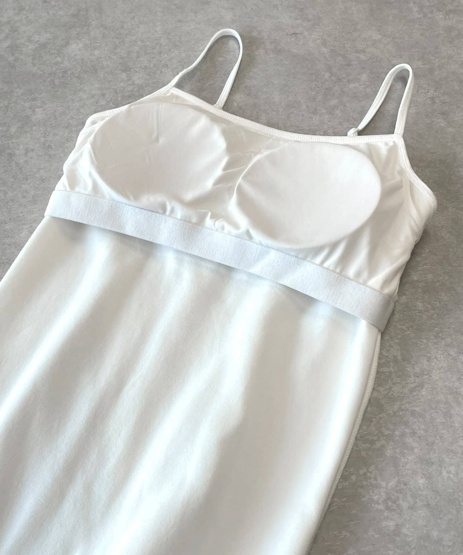 細めのストラップに、胸元すっきりなデザインのインナーですので、普段のワンピースコーデなどで