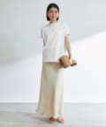 綺麗めスカートと合わせると、程よく女性らしさもプラスされた雰囲気にまとまります。