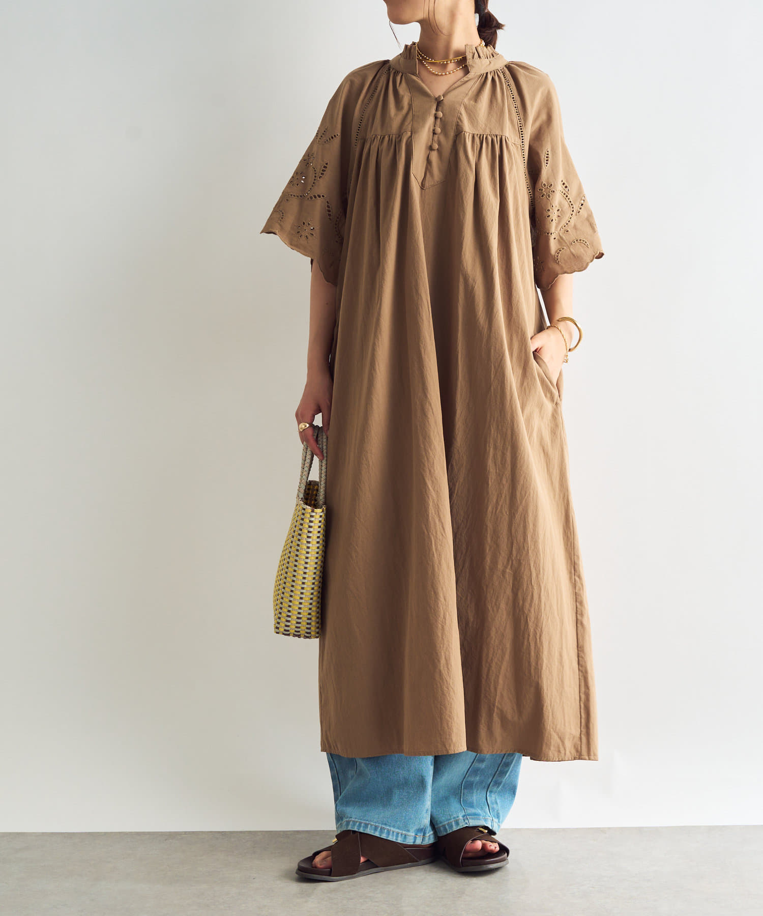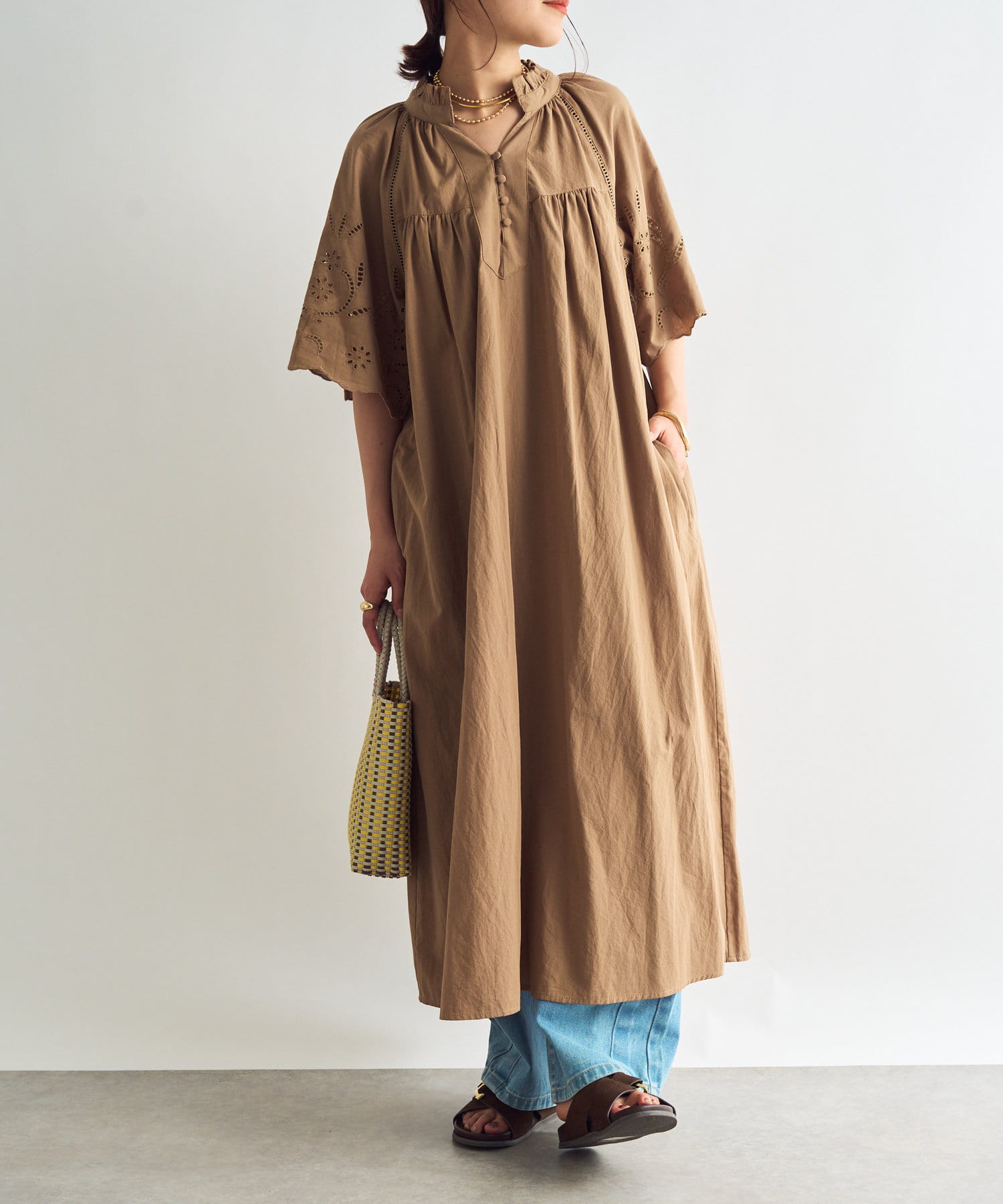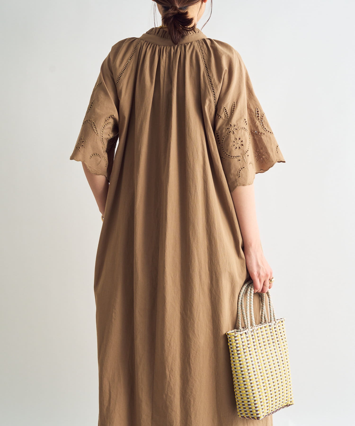 《ナチュラルな雰囲気》袖刺繍ワンピース