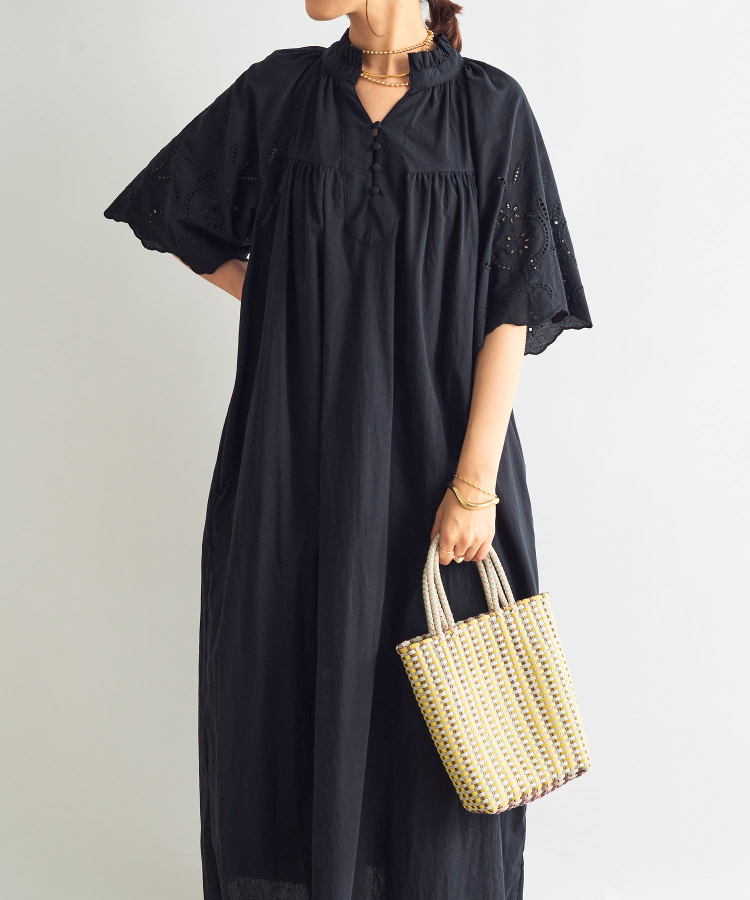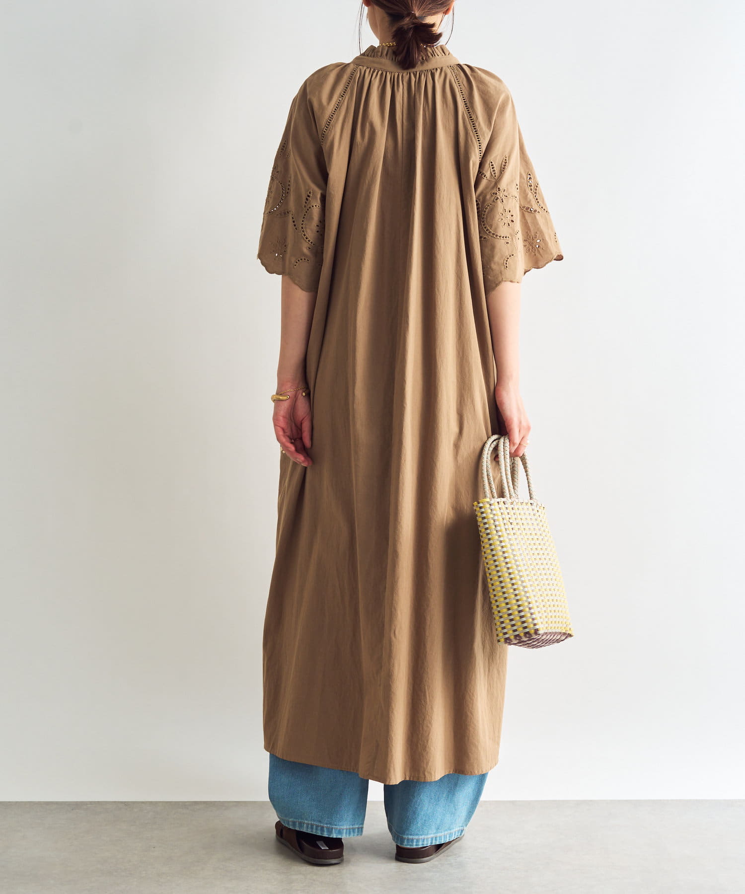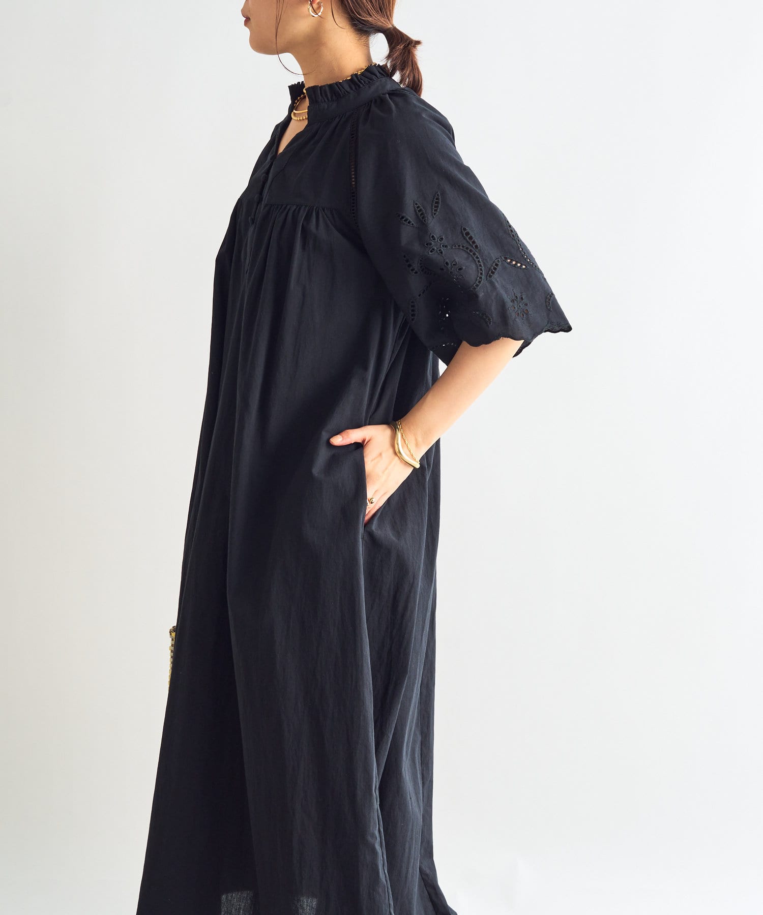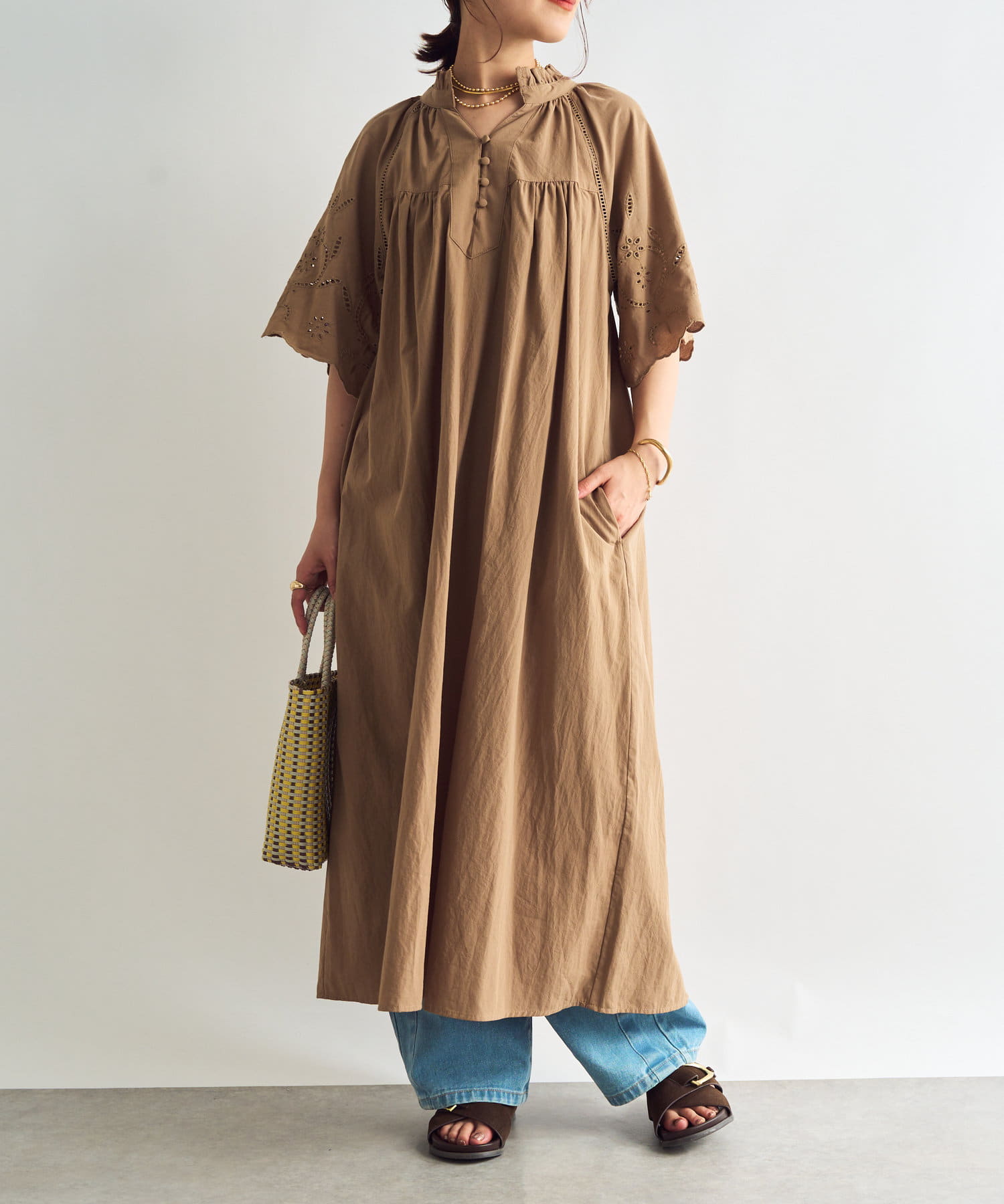 《ナチュラルな雰囲気》袖刺繍ワンピース