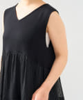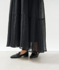 ドットのプリーツ生地はやや透け感がありますが、スカート部分には裏地がほどこされているので1枚でスタイリングがお楽しみいただけます。