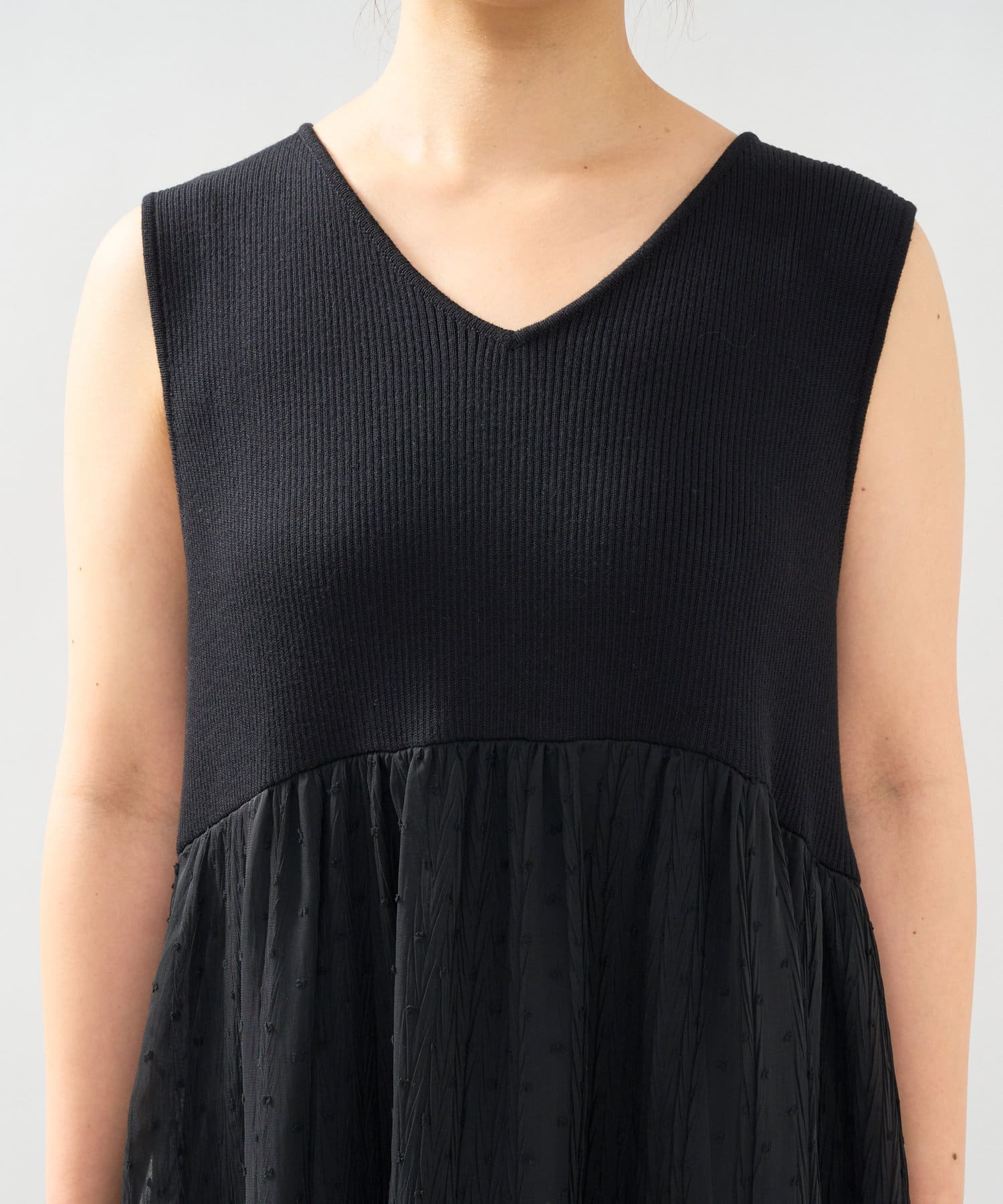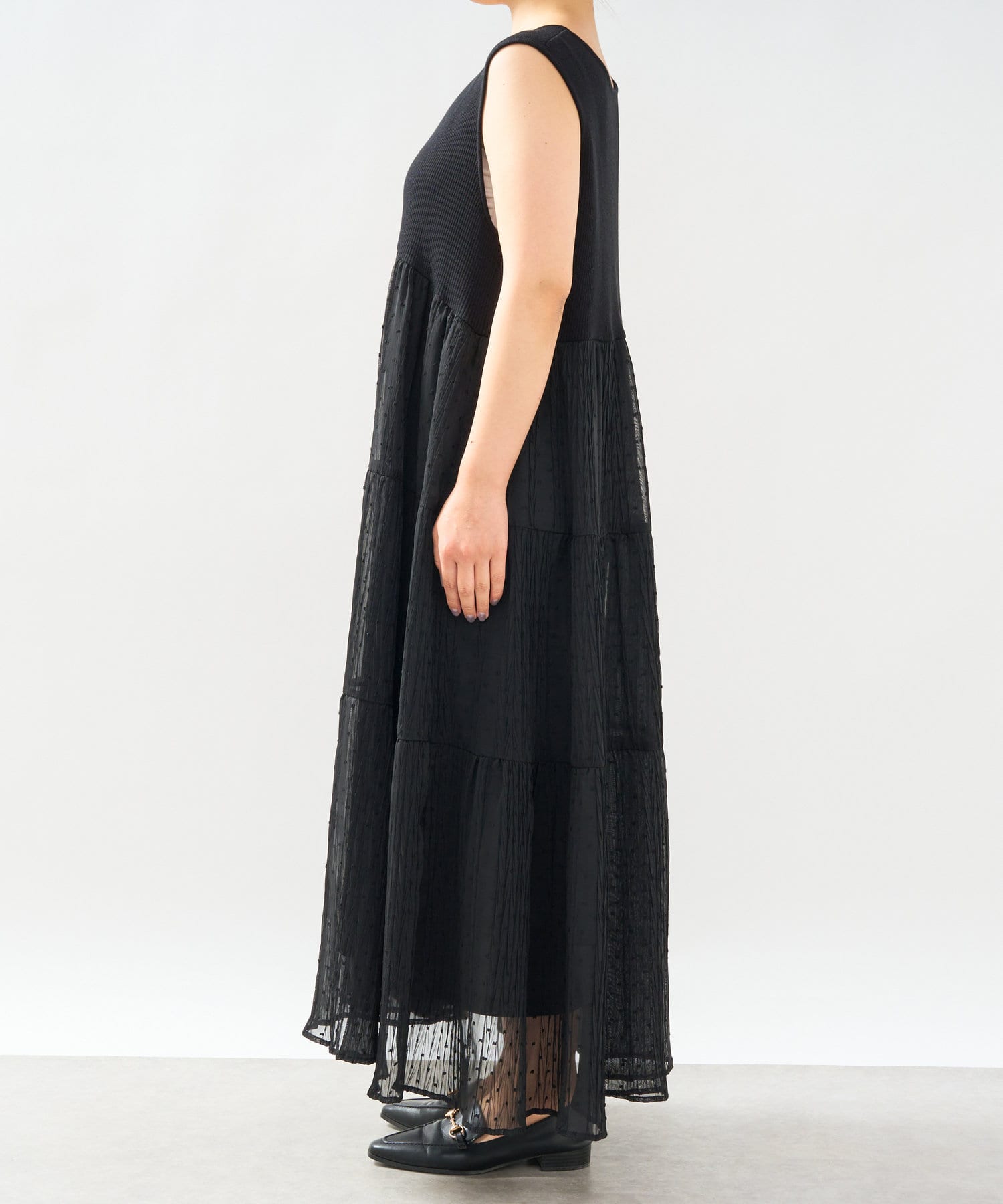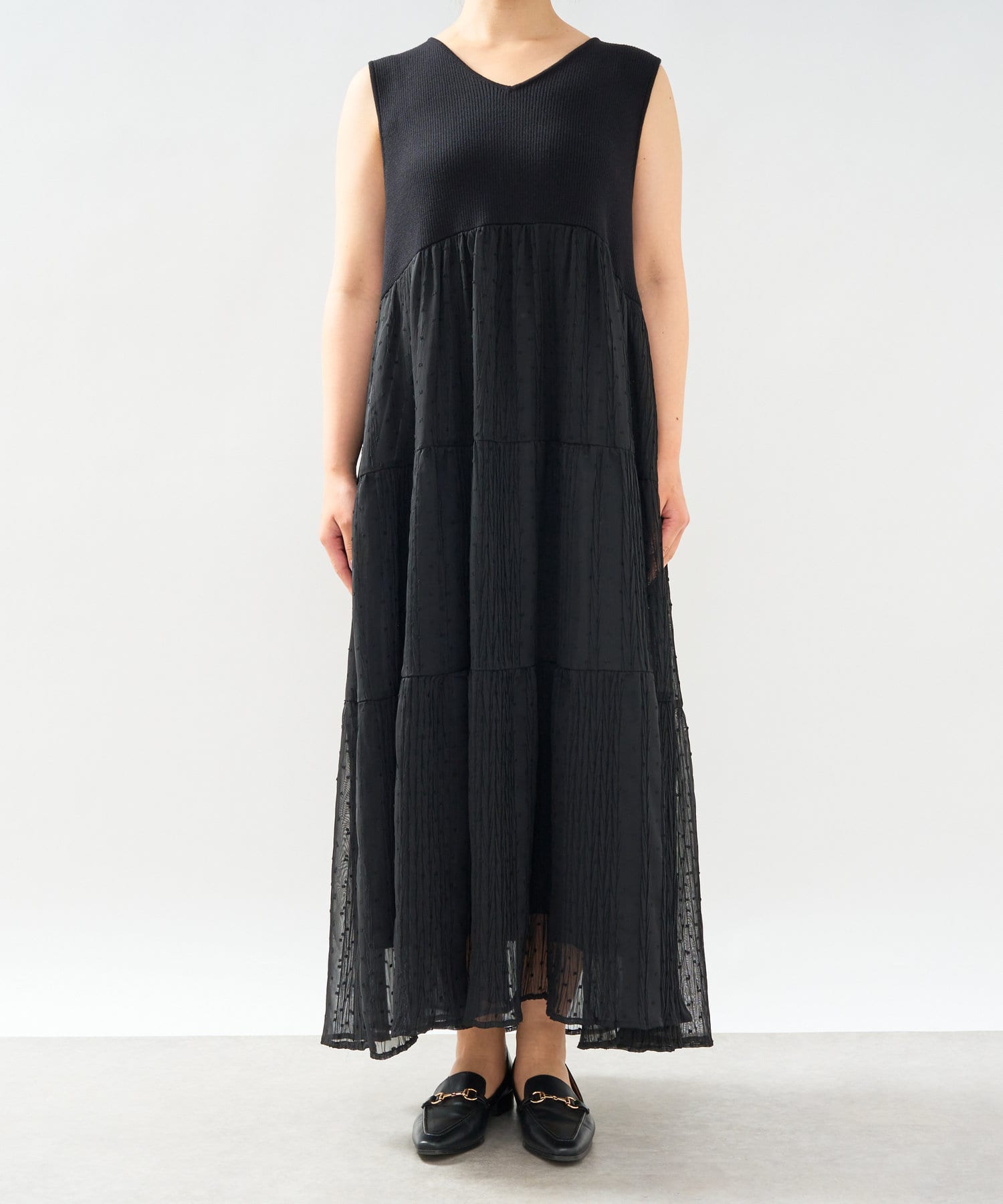 《主役級アイテム》ニット切替プリーツジャガードドットワンピース