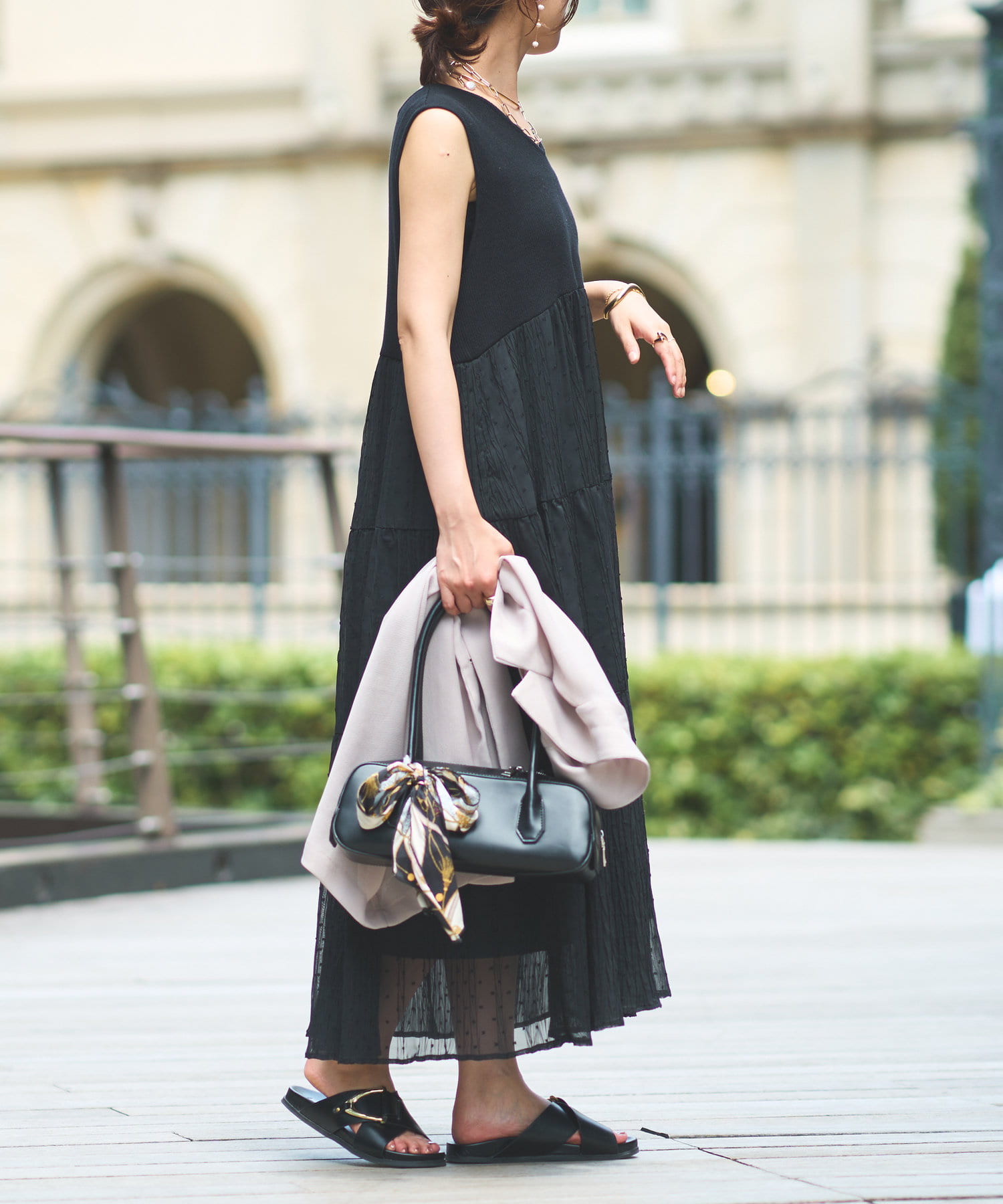 1枚ではもちろん、合わせるバッグやアクセサリーで雰囲気を変えることができます。