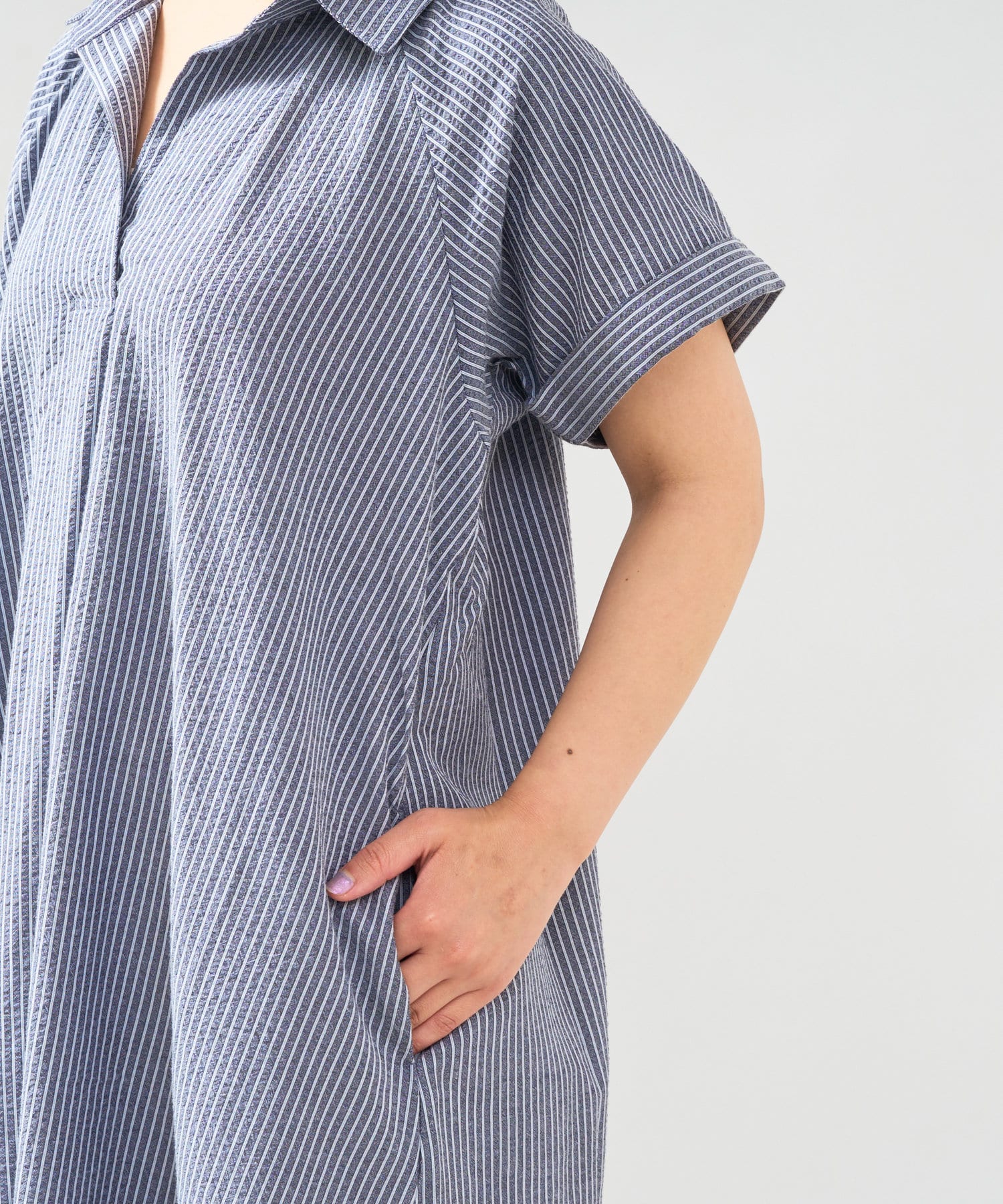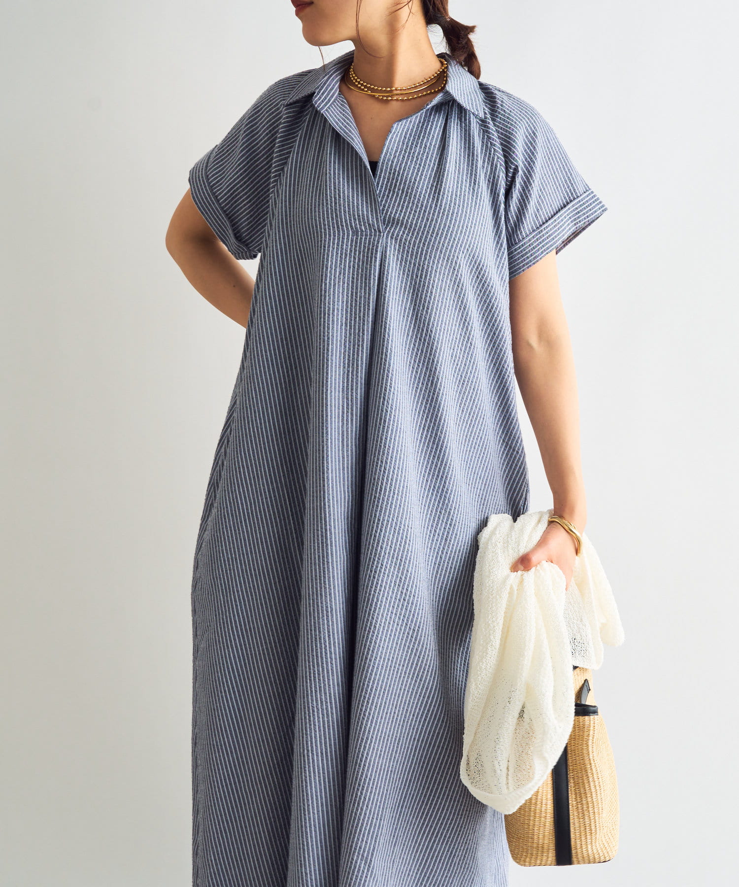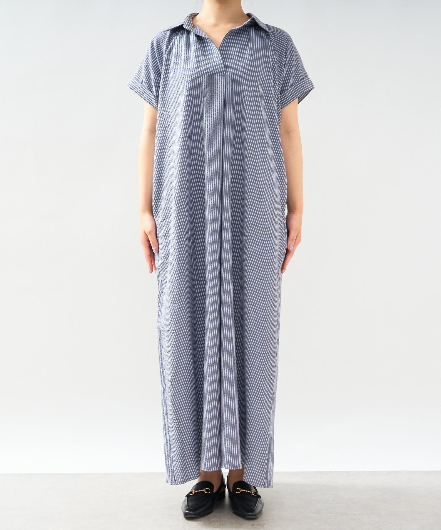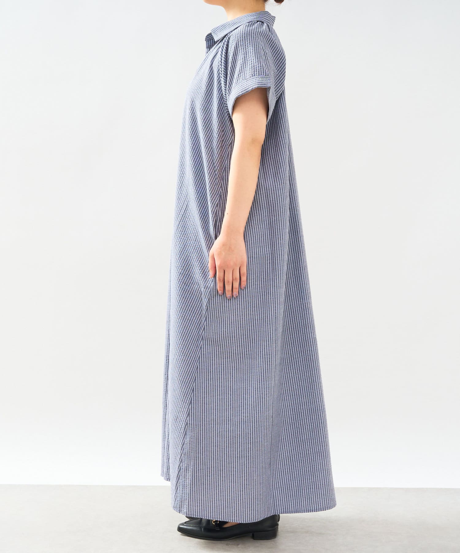 《さらっと涼しい》シアーサッカーシャツワンピース