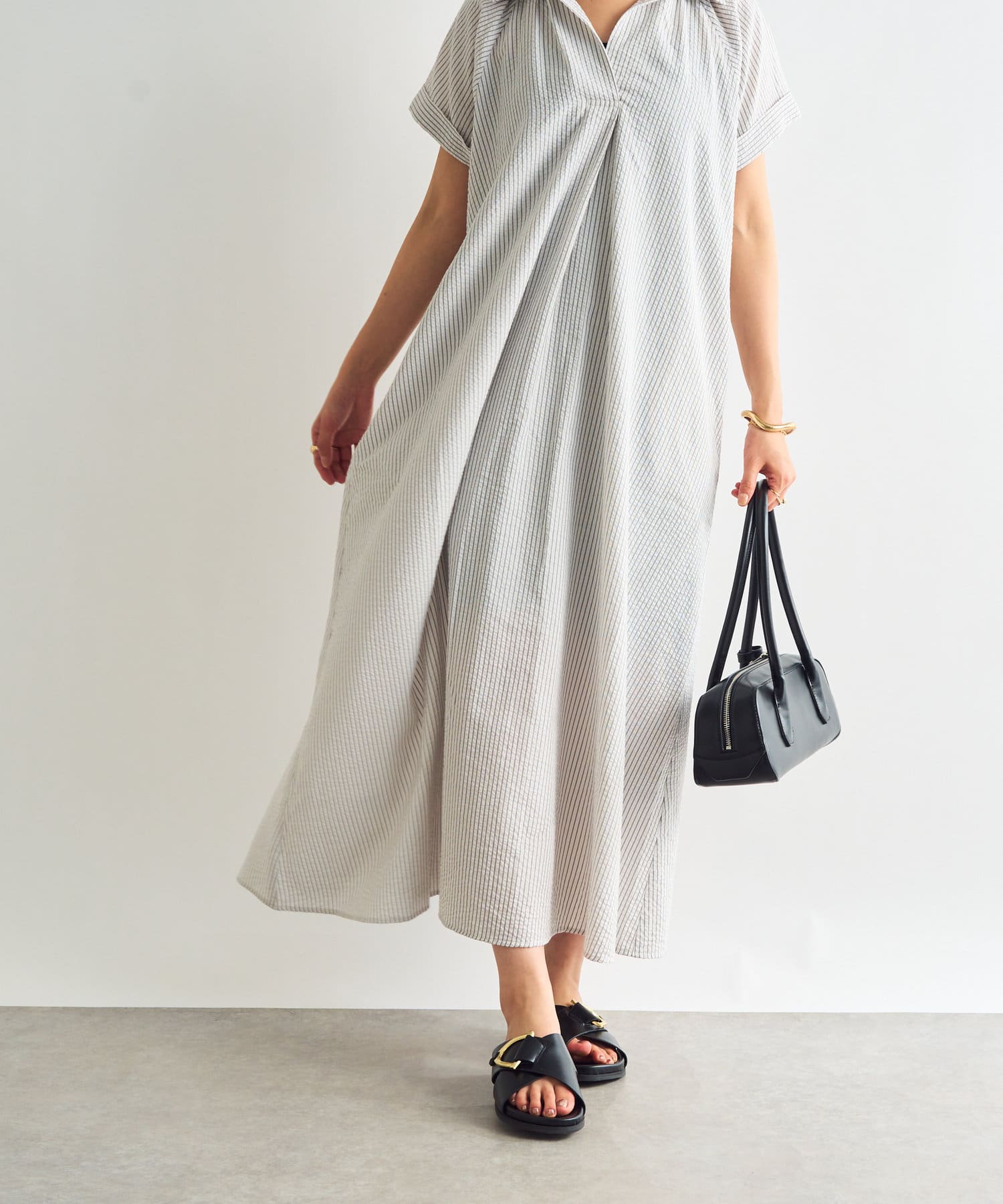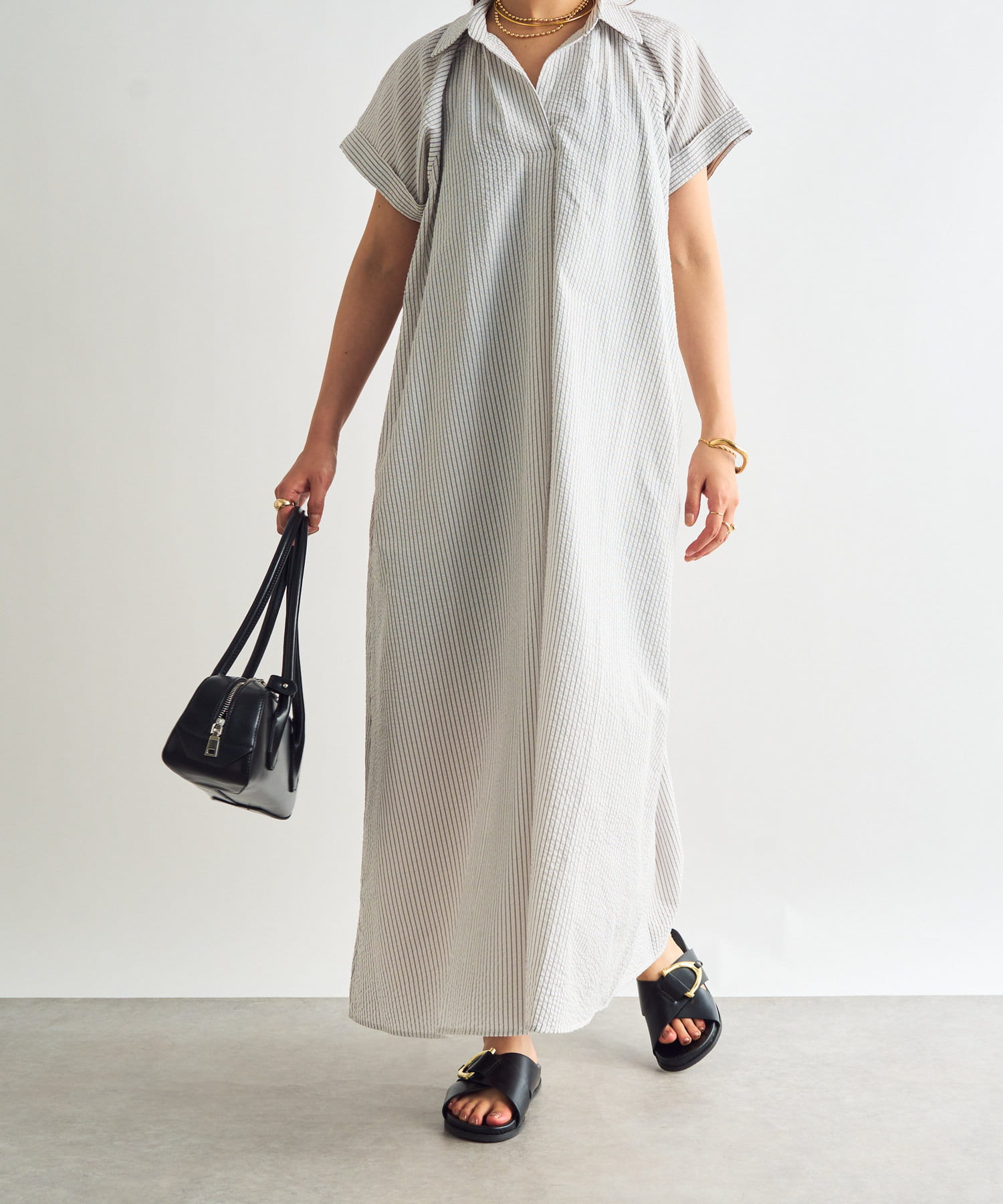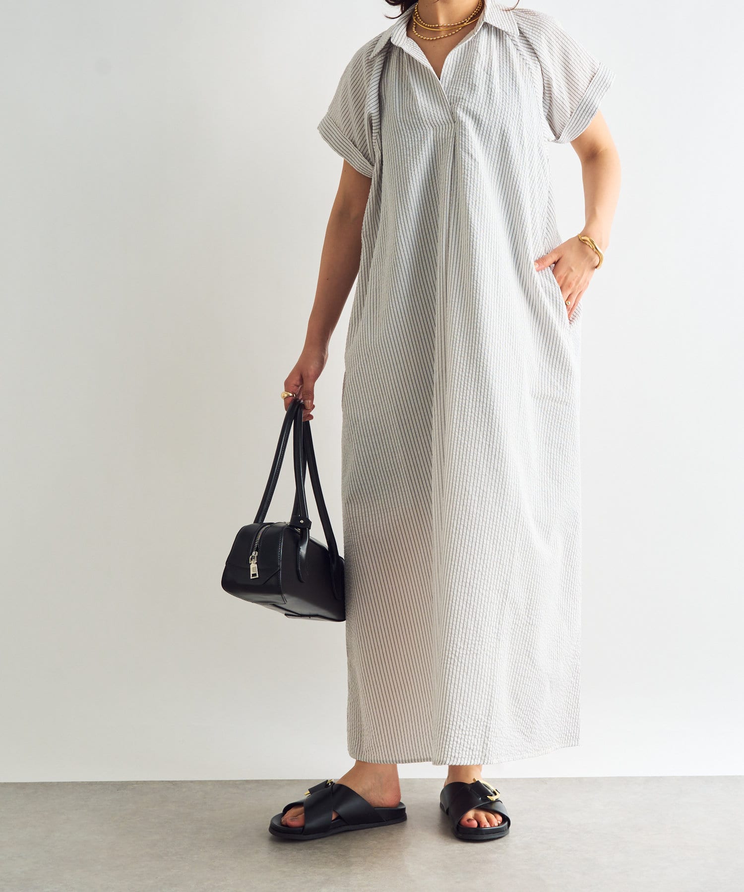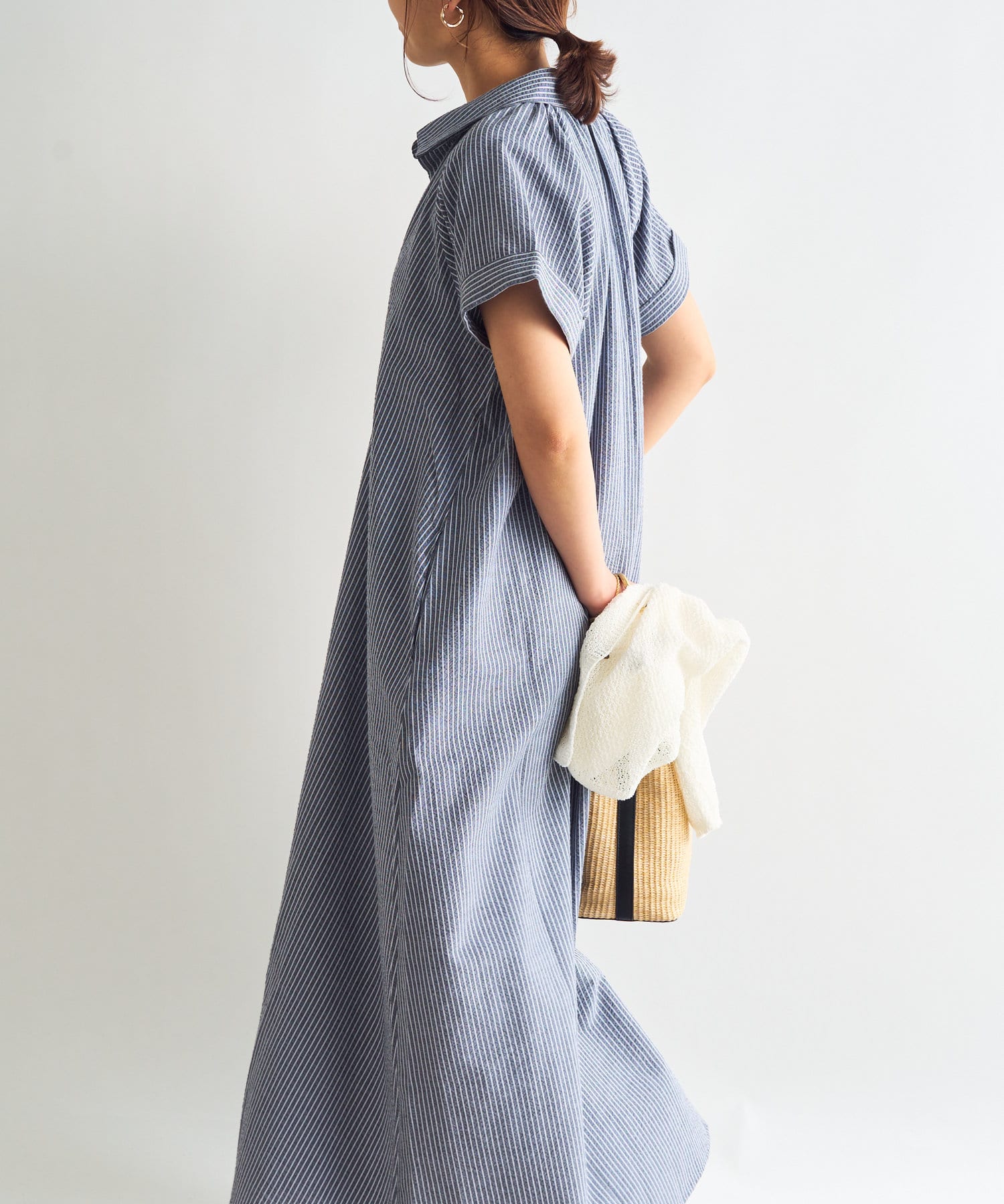 《さらっと涼しい》シアーサッカーシャツワンピース