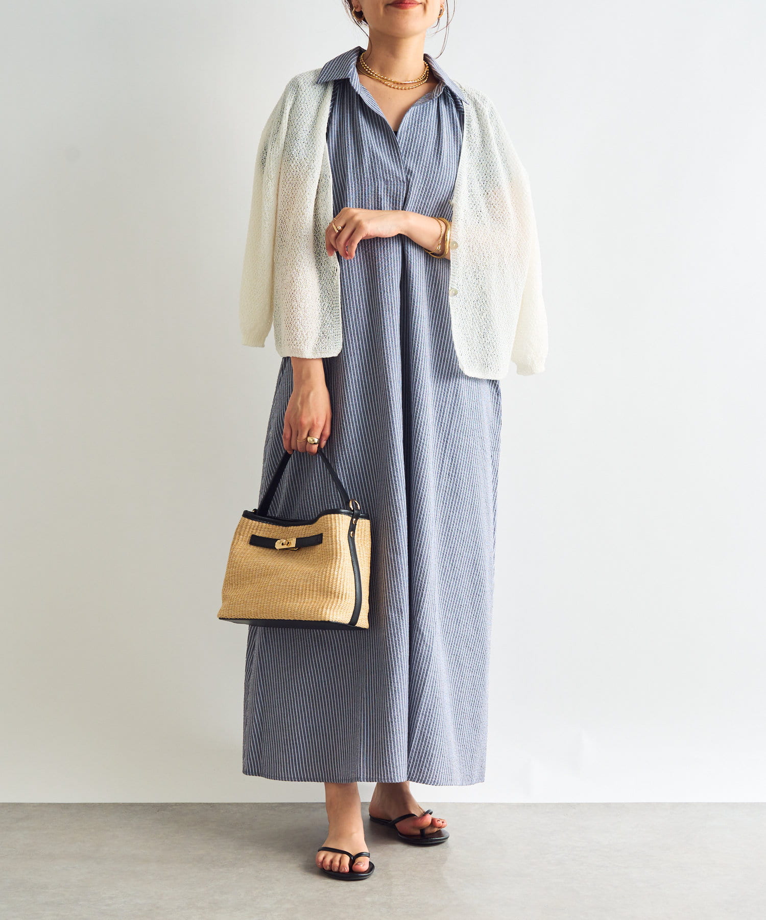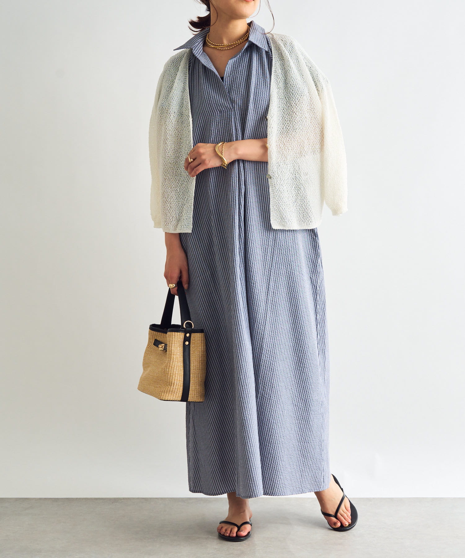 ・暑い時期はそのまま1着で着たり、肌寒いときはカーディガンなどを羽織っても様になります。