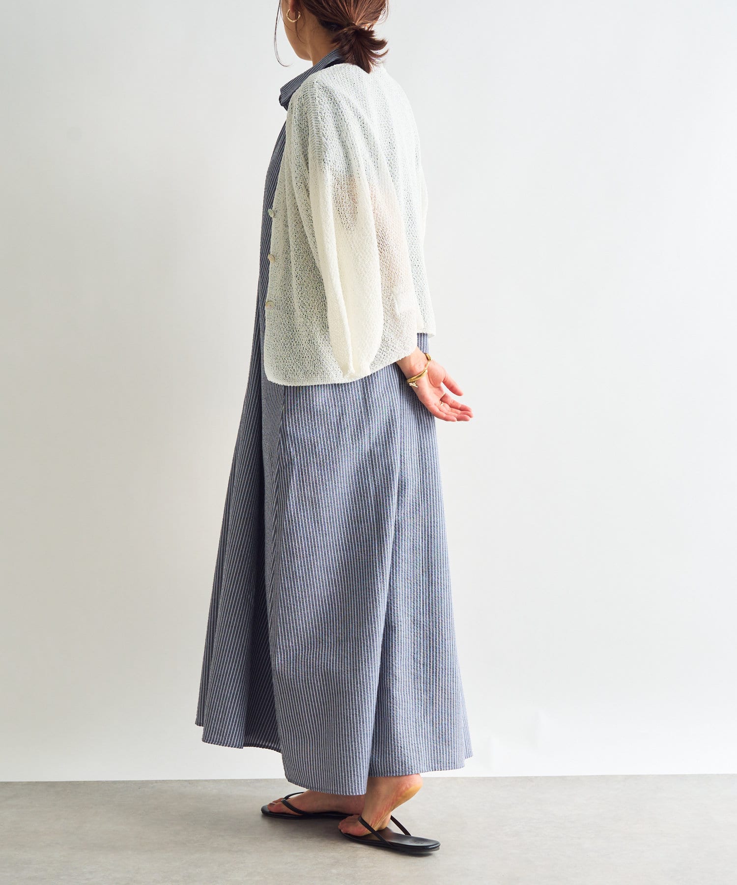 ・ヒールを合わせてキレイ目コーデとしても、サンダルでカジュアルなコーデにも着まわせます。