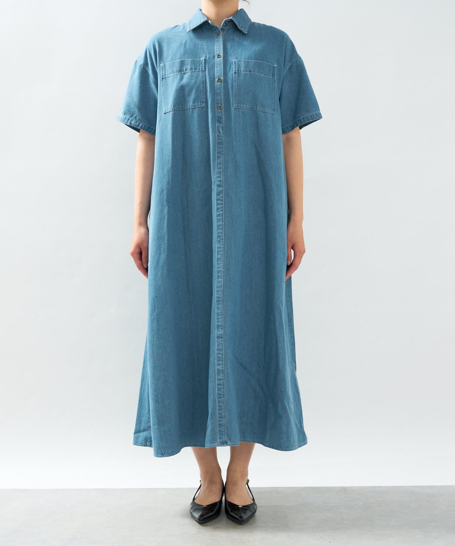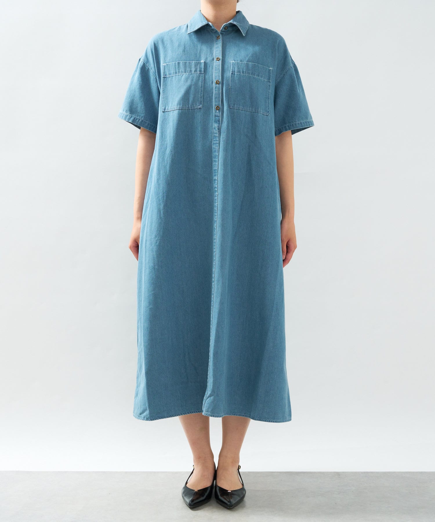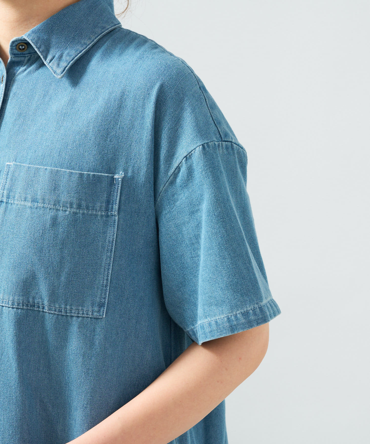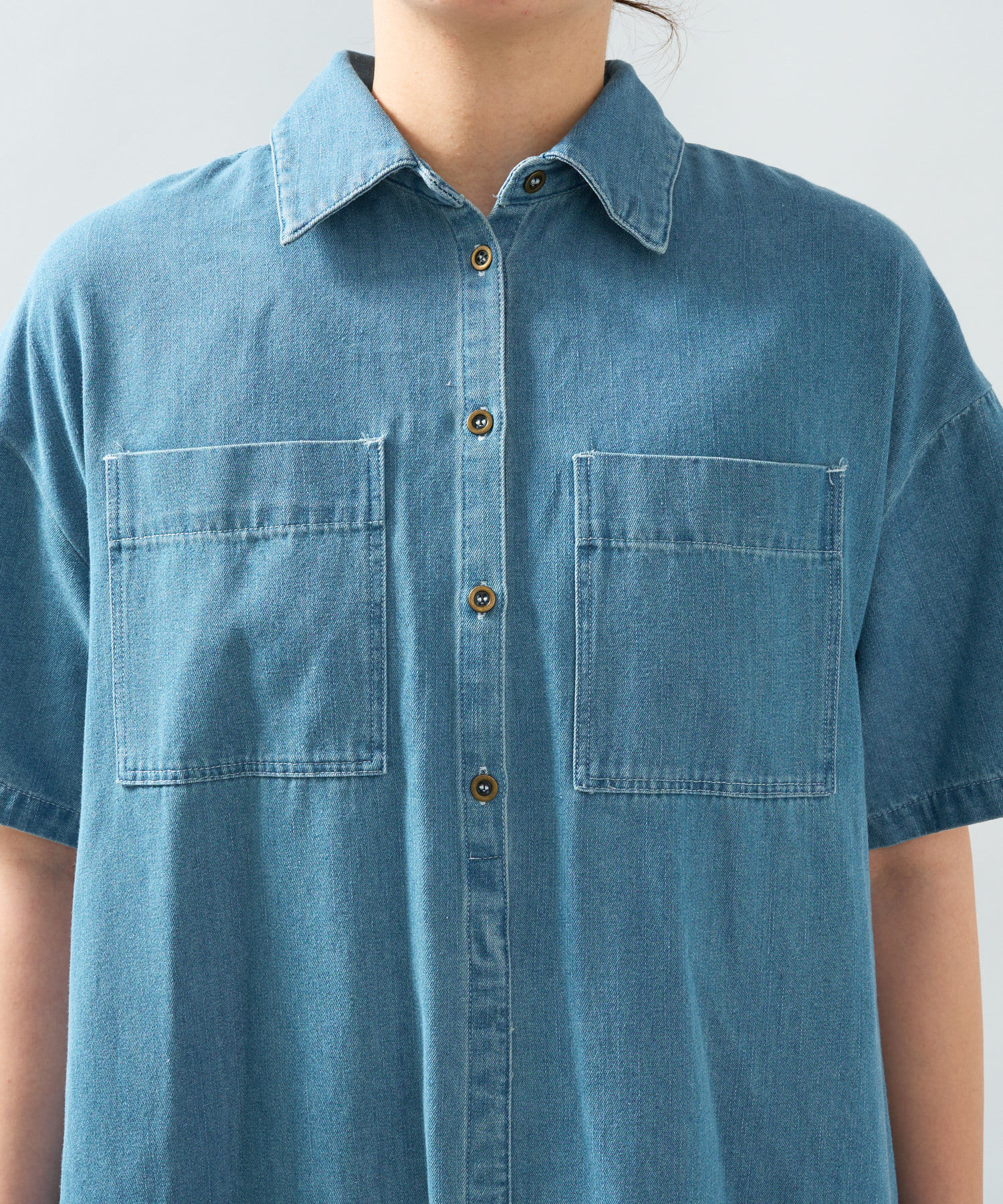 《2サイズ・大人カジュアルなムードに》半袖デニムシャツワンピース
