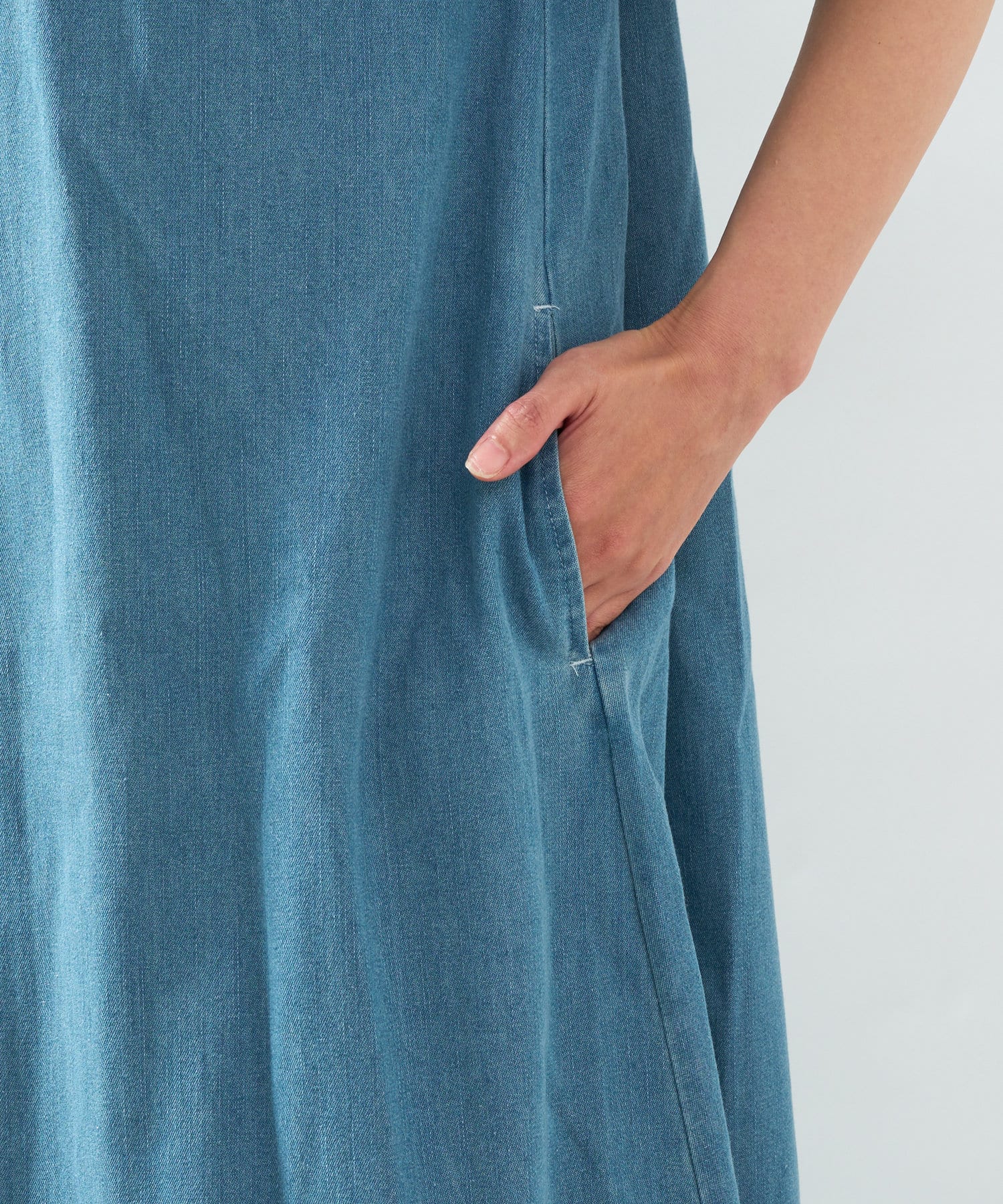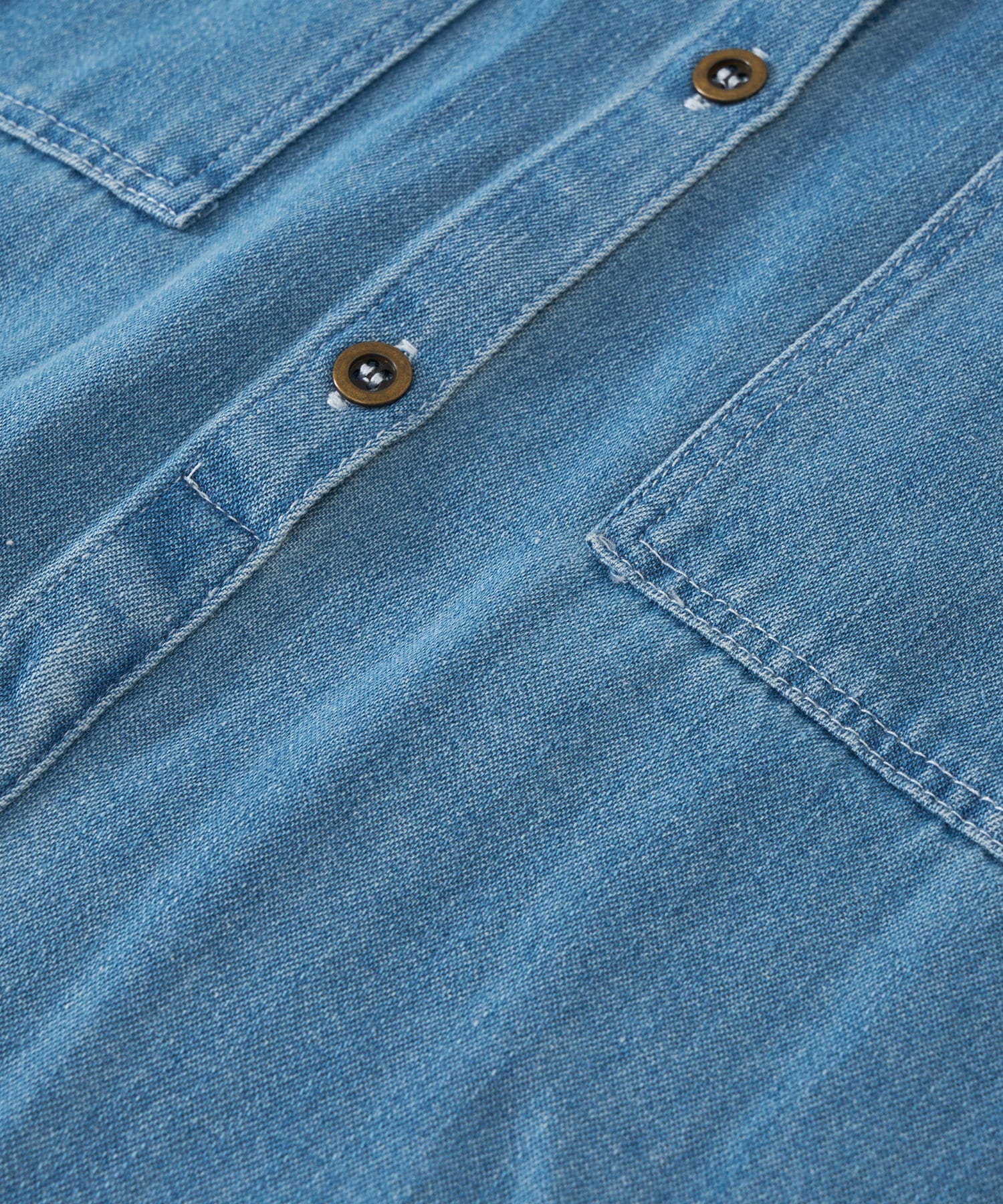 綿混の優しい手触りの厚手過ぎないデニム素材で仕立てられ、柔らかな肌当たりです。