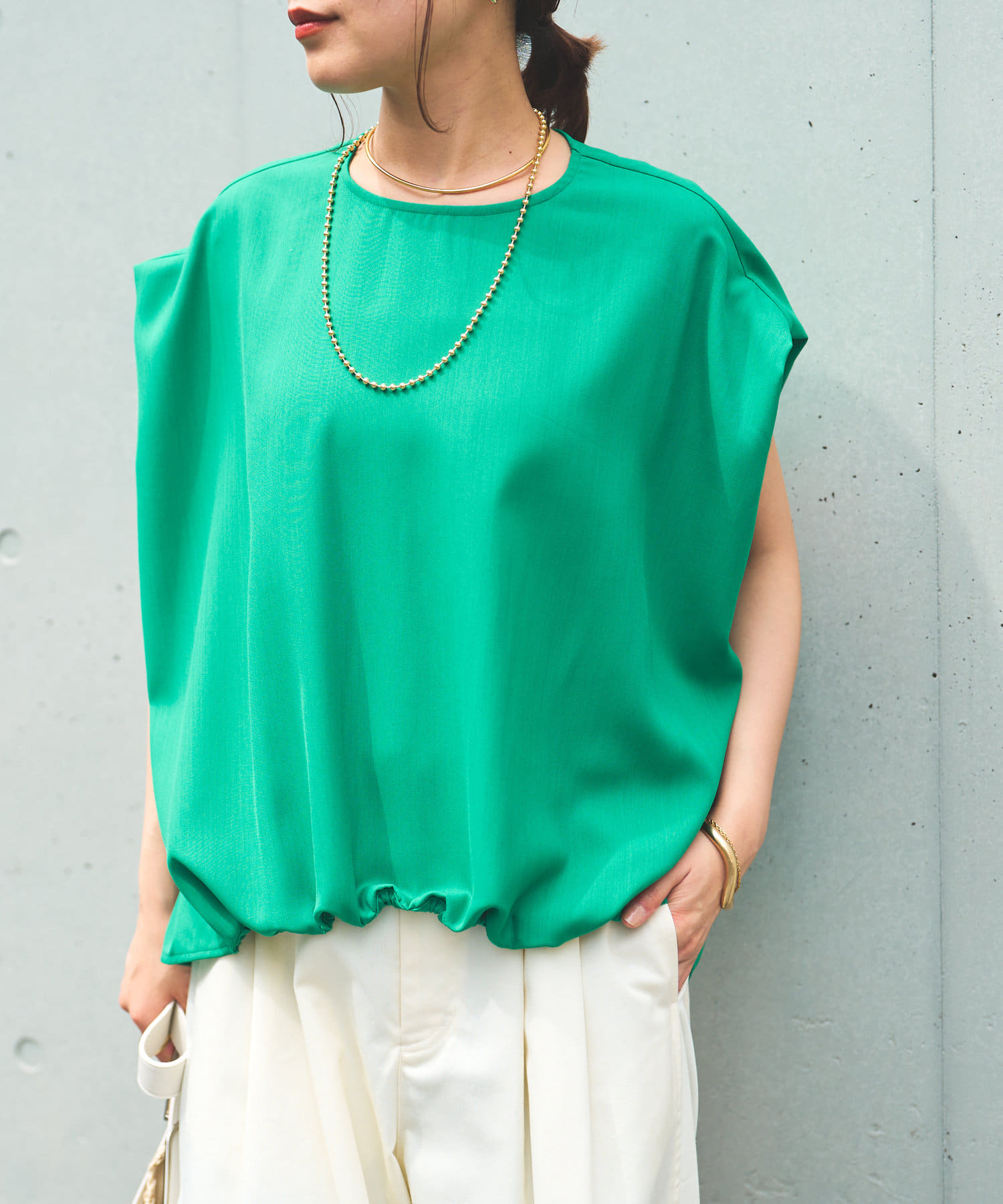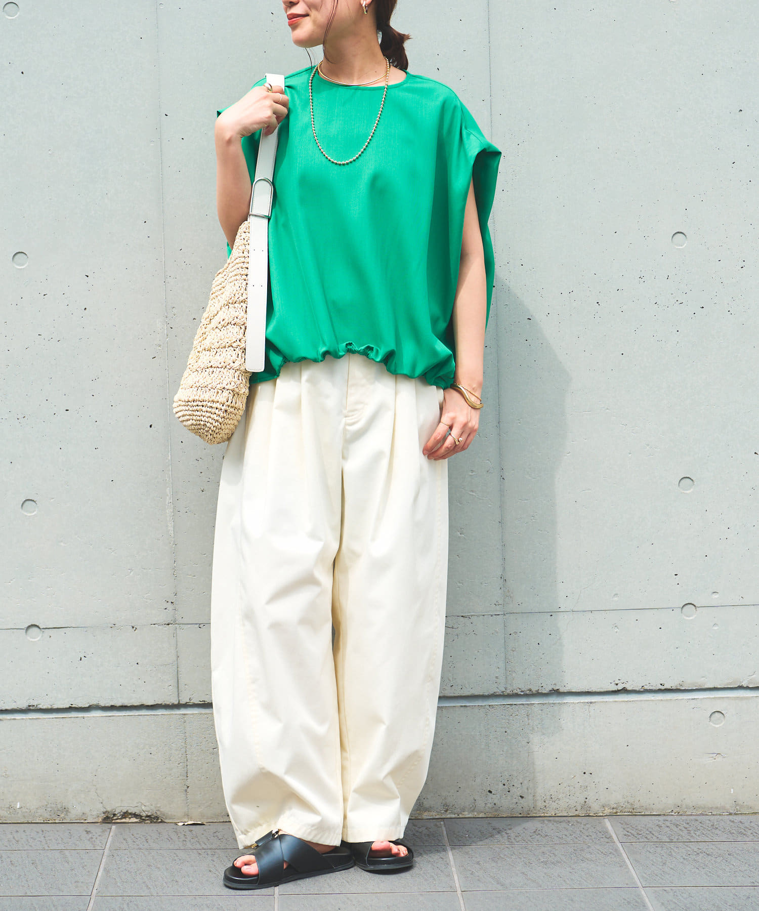 ・裾ギャザーによって立体感のあるシルエットが作り出され、こなれた雰囲気に◎