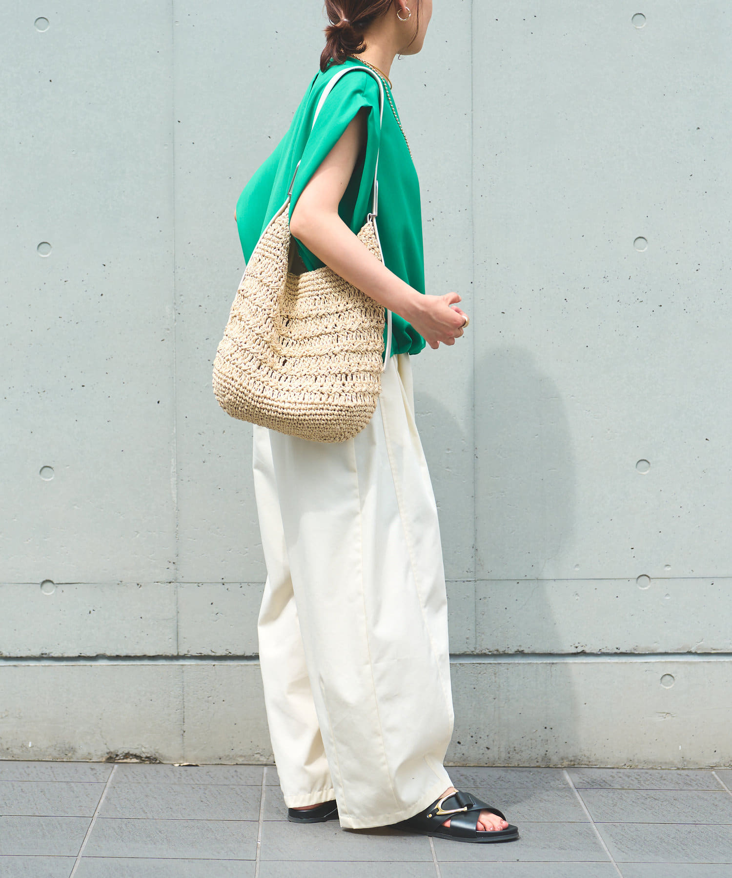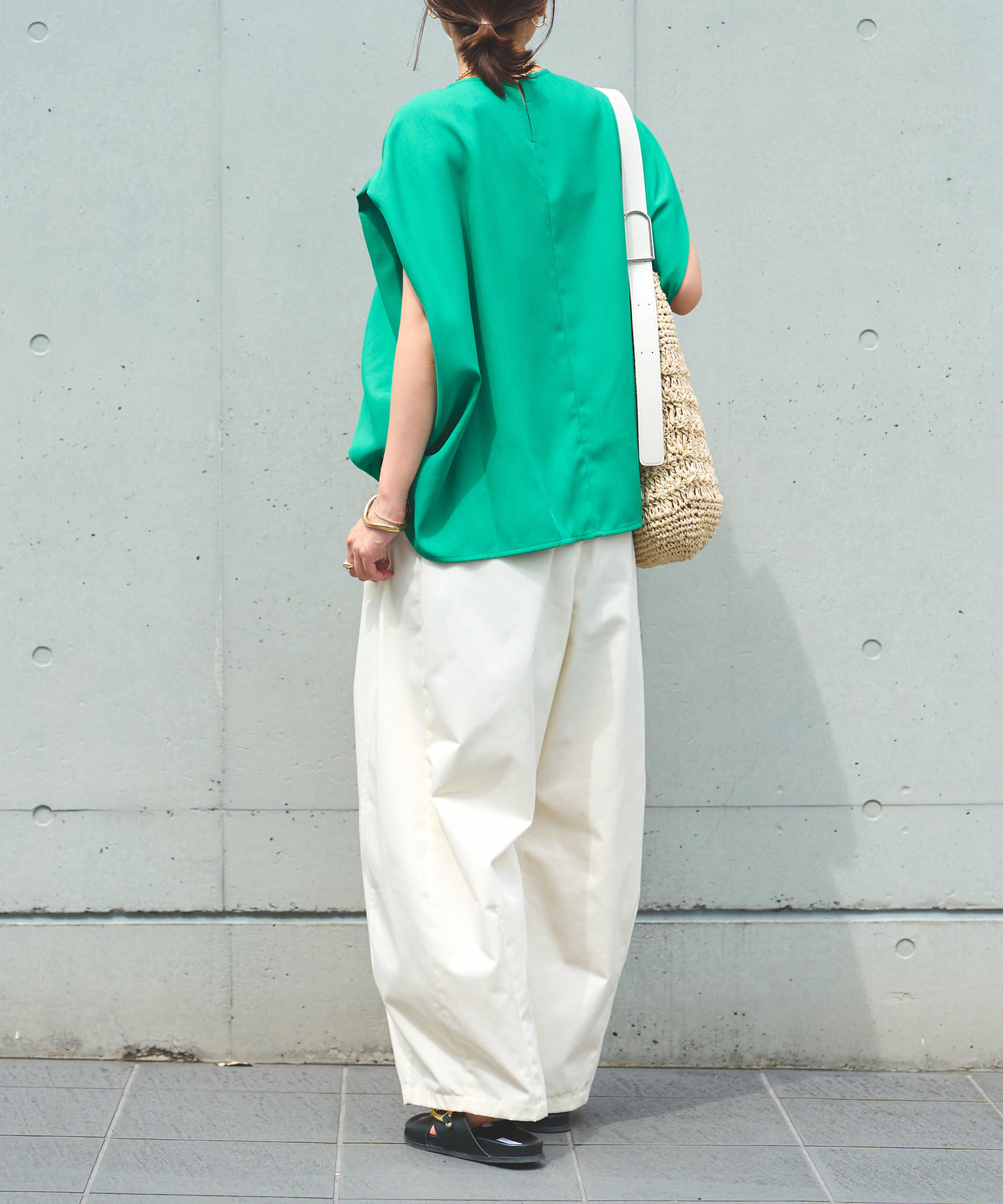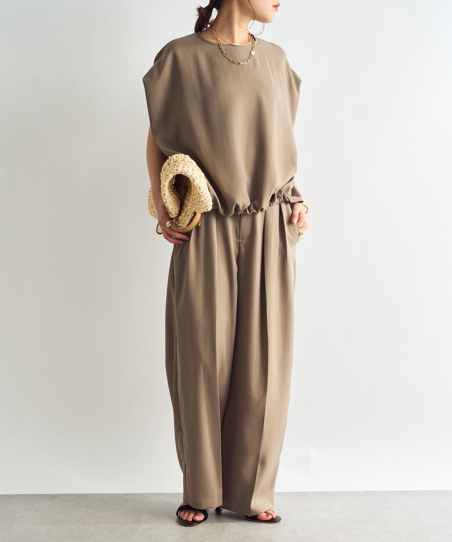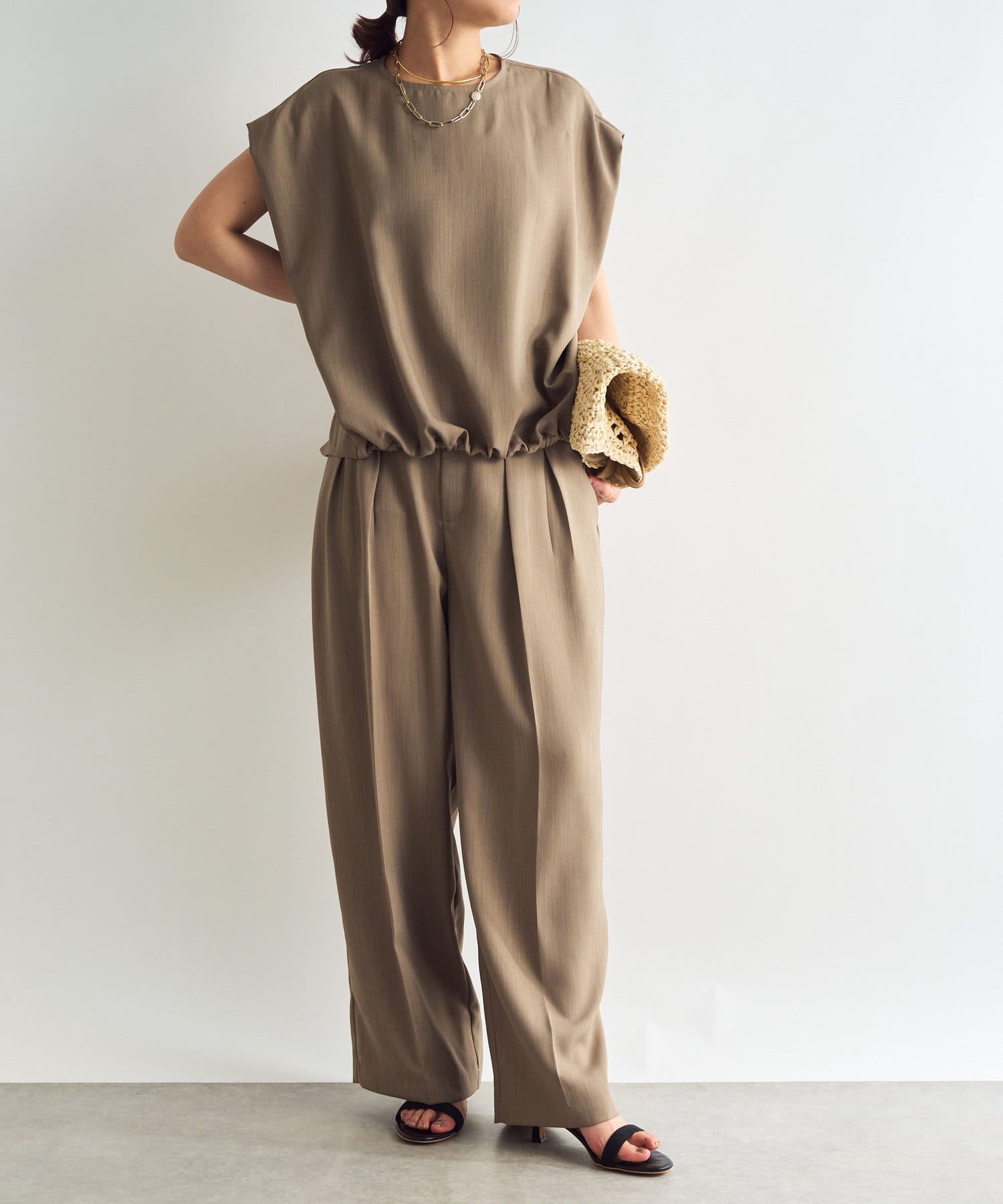 同シリーズのリネンライクタックパンツと合わせてセットアップで楽しむのもおすすめです。