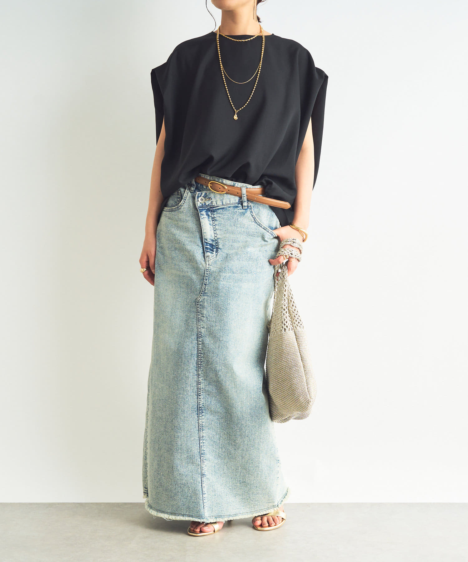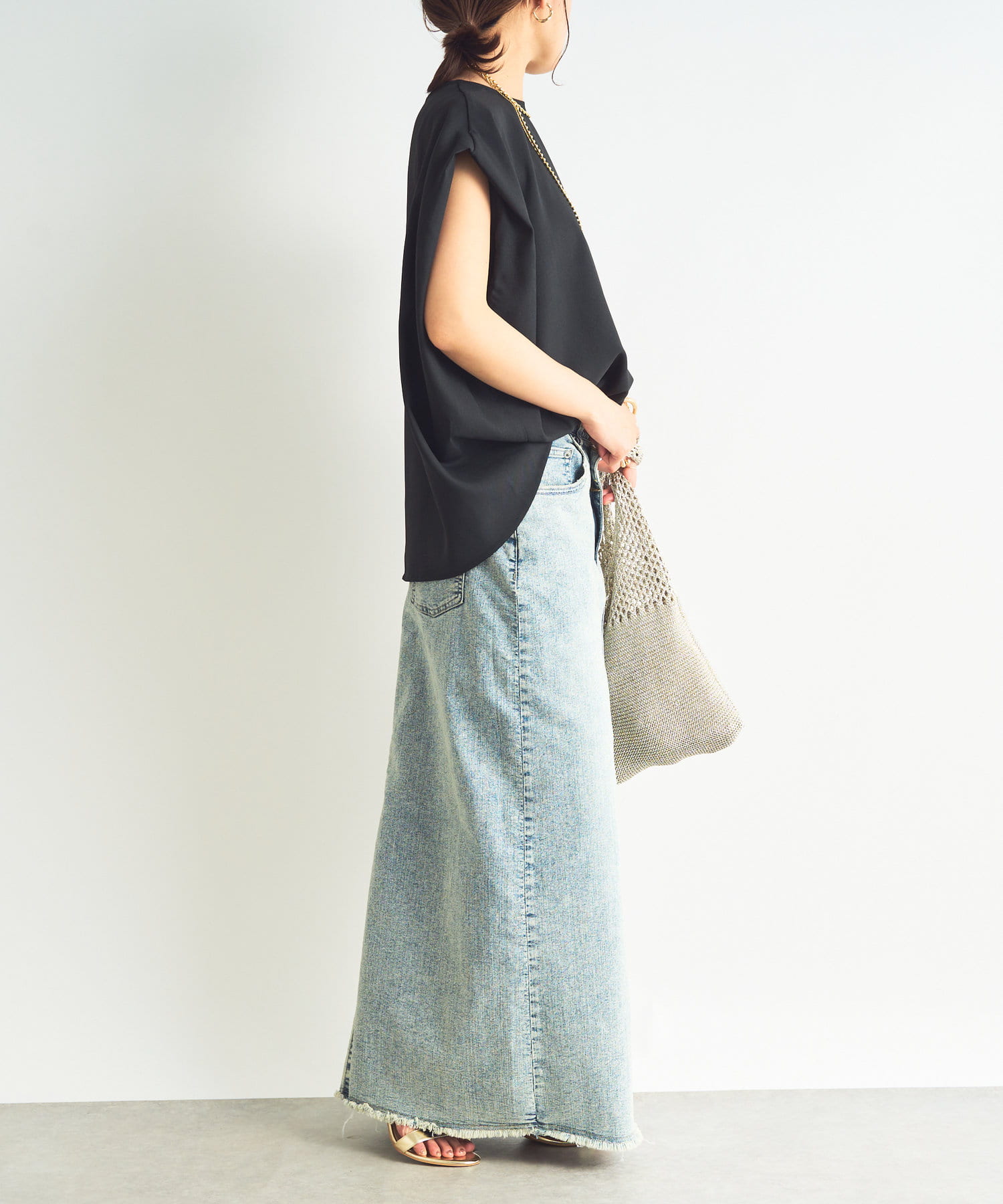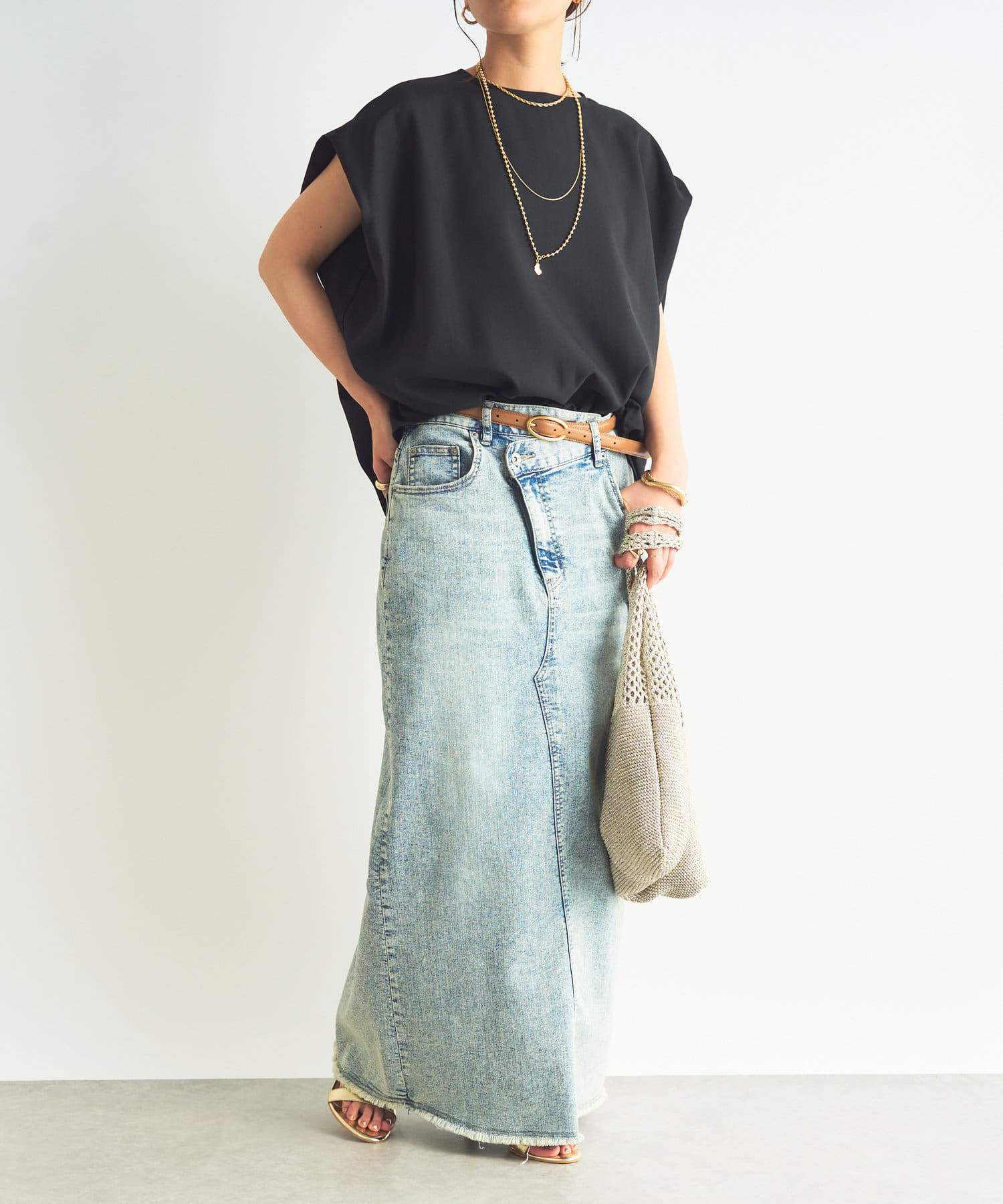 前後差のある着丈なのでタイトめボトムを合わせてもバランスよく決まります!