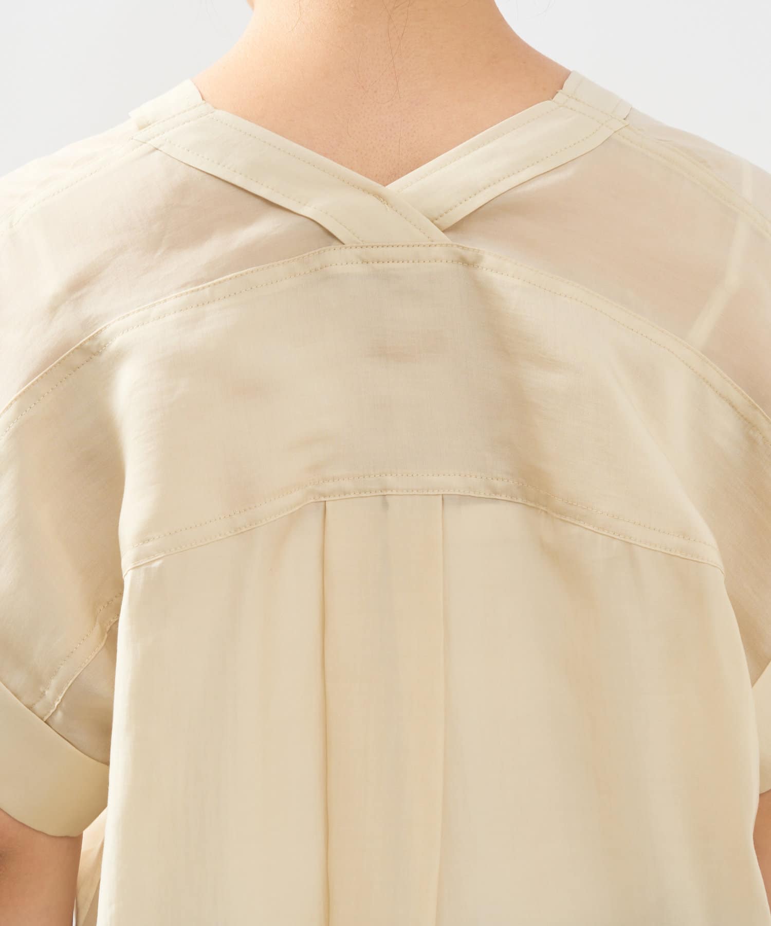 やや薄手の生地ですので全体的に少し透け感があり、アイボリーやカーキなど明るい色のものはとくに気になるかと思います。