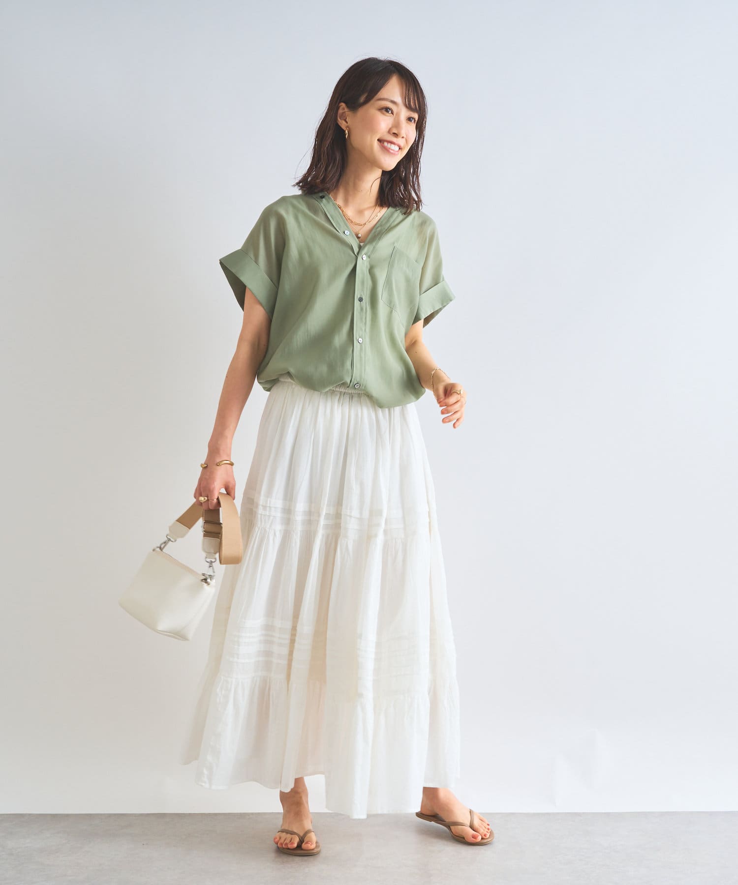 アイボリーは肌馴染みの良いカラーリングで、明るめのコーデを楽しみたいときにおすすめ。