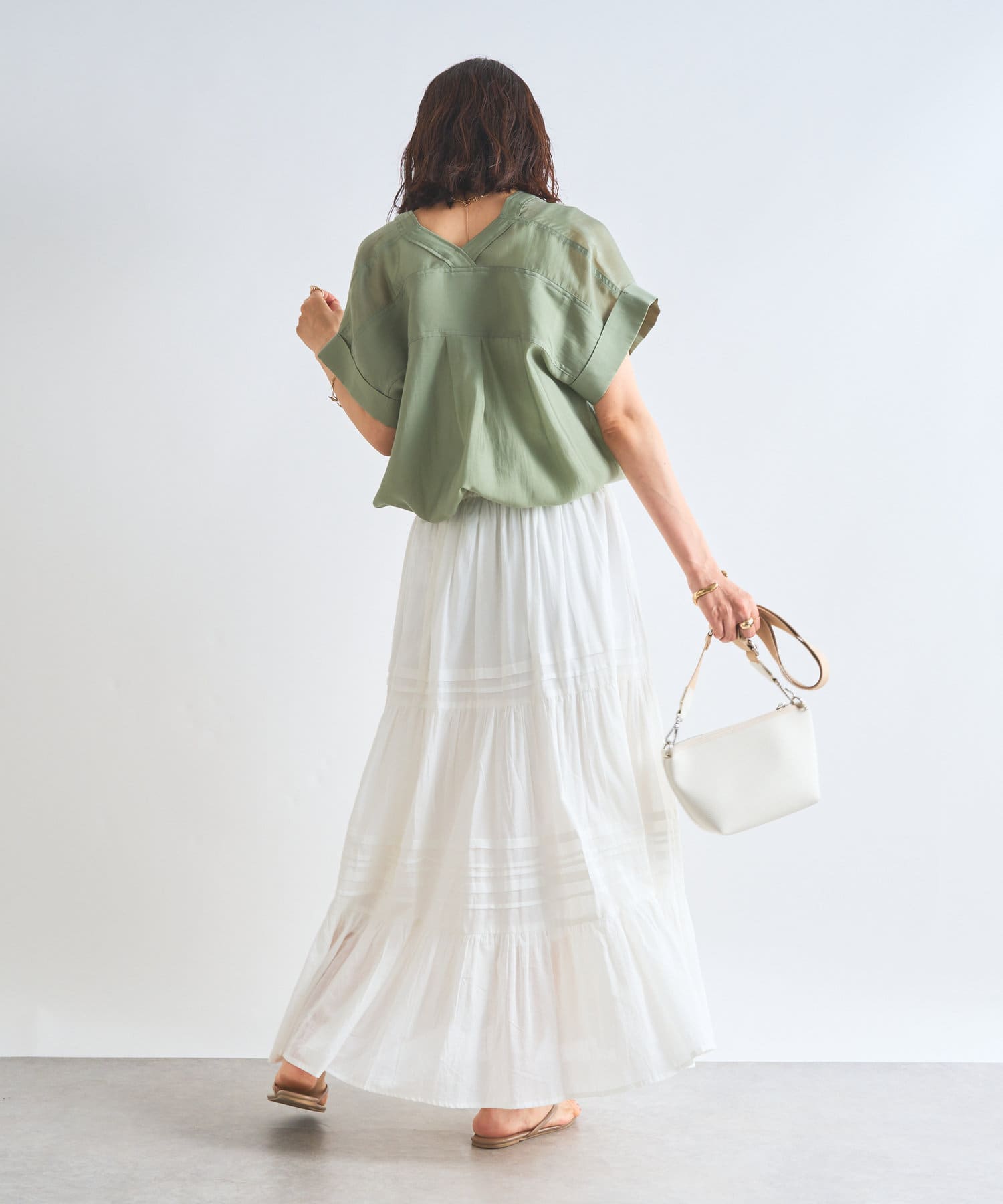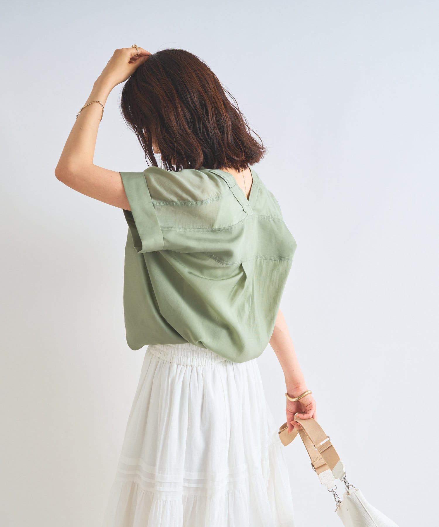 全体的にややゆとりのあるシルエットになっているため、ボディーラインにフィットしすぎない印象です。