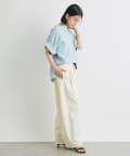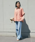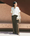 センタープレスのパンツやフレアースカートを合わせると、オフィスシーンで使える綺麗めコーデに◎