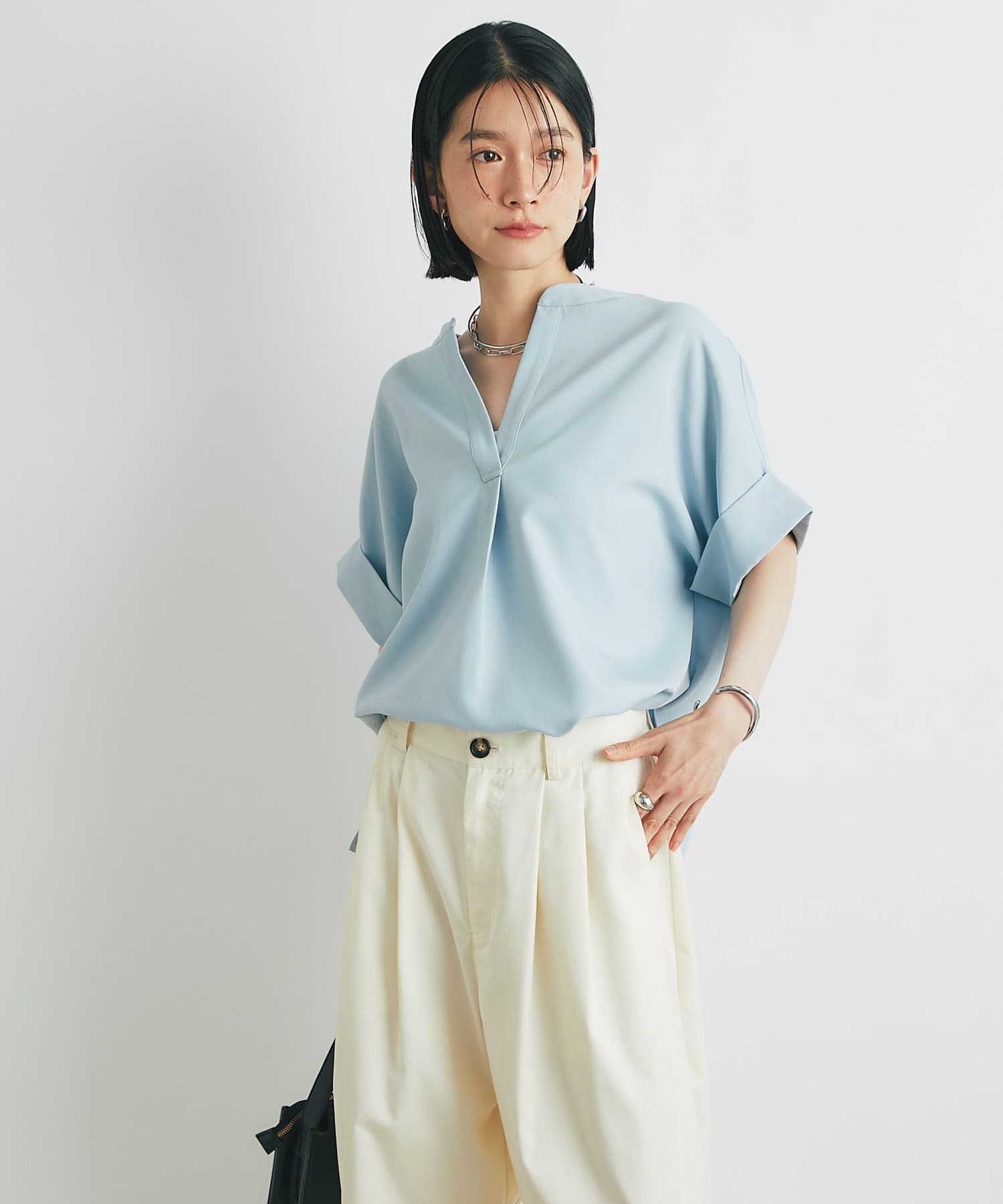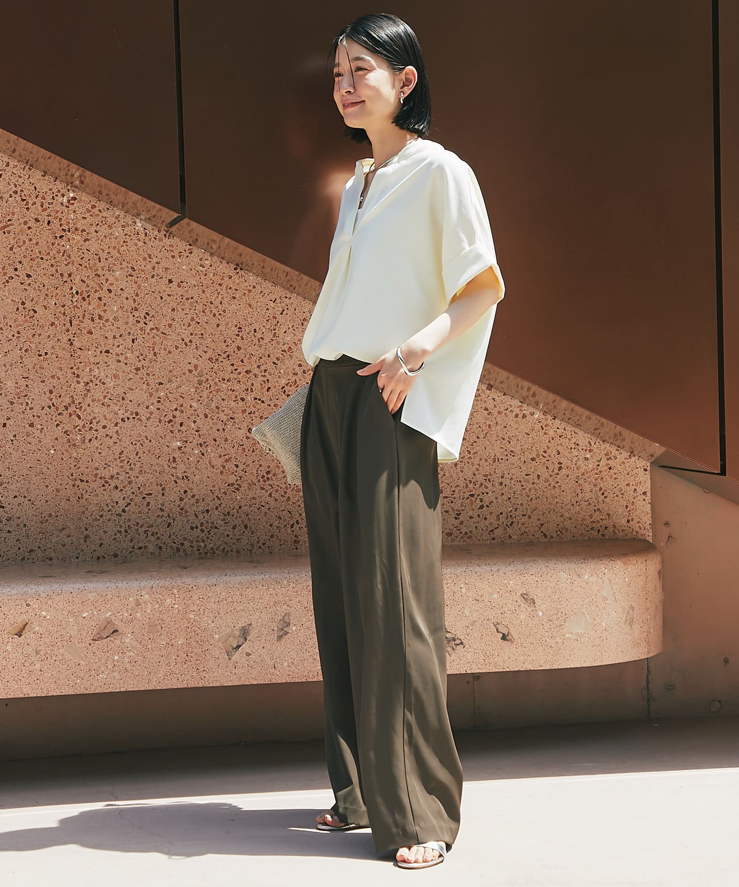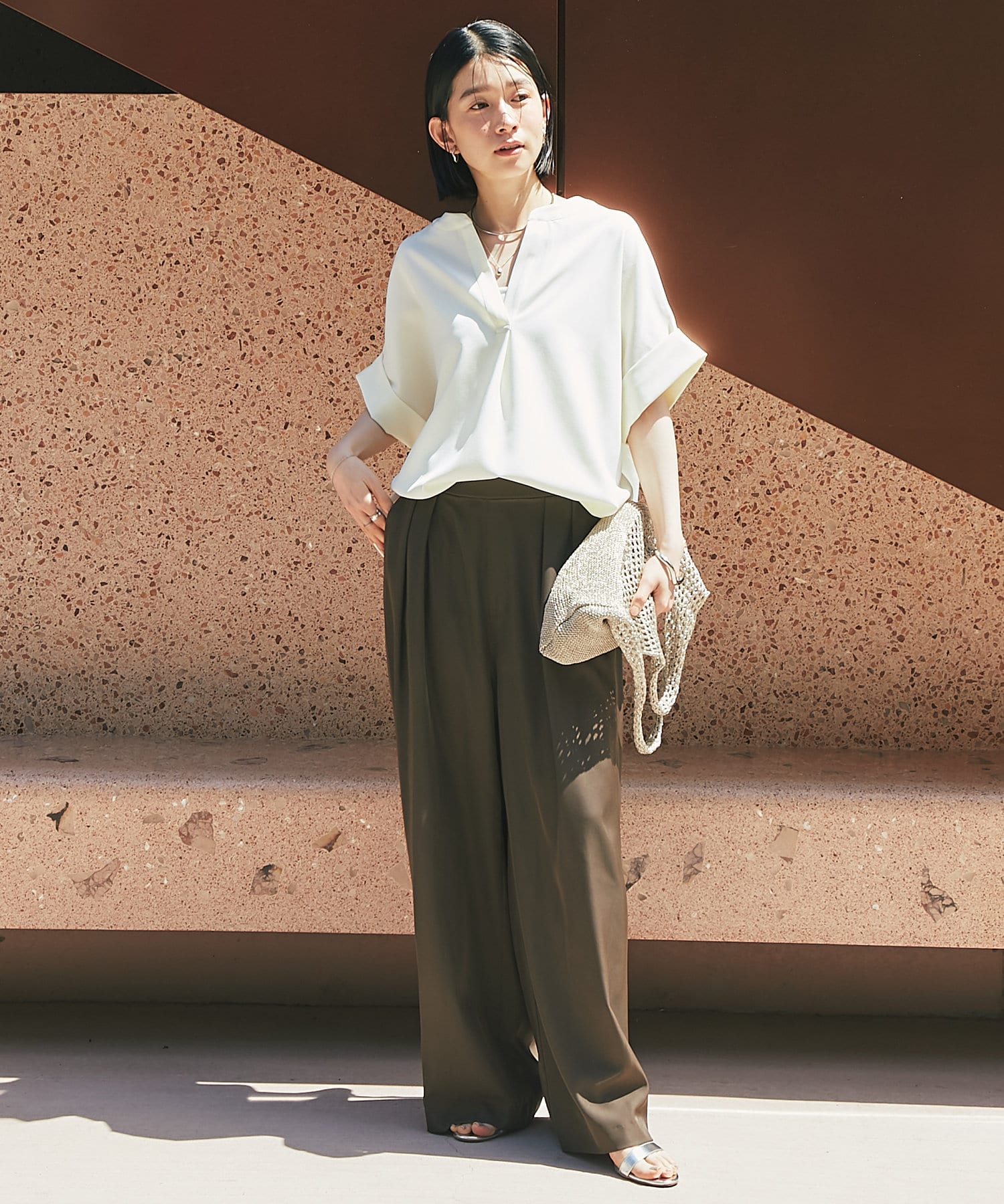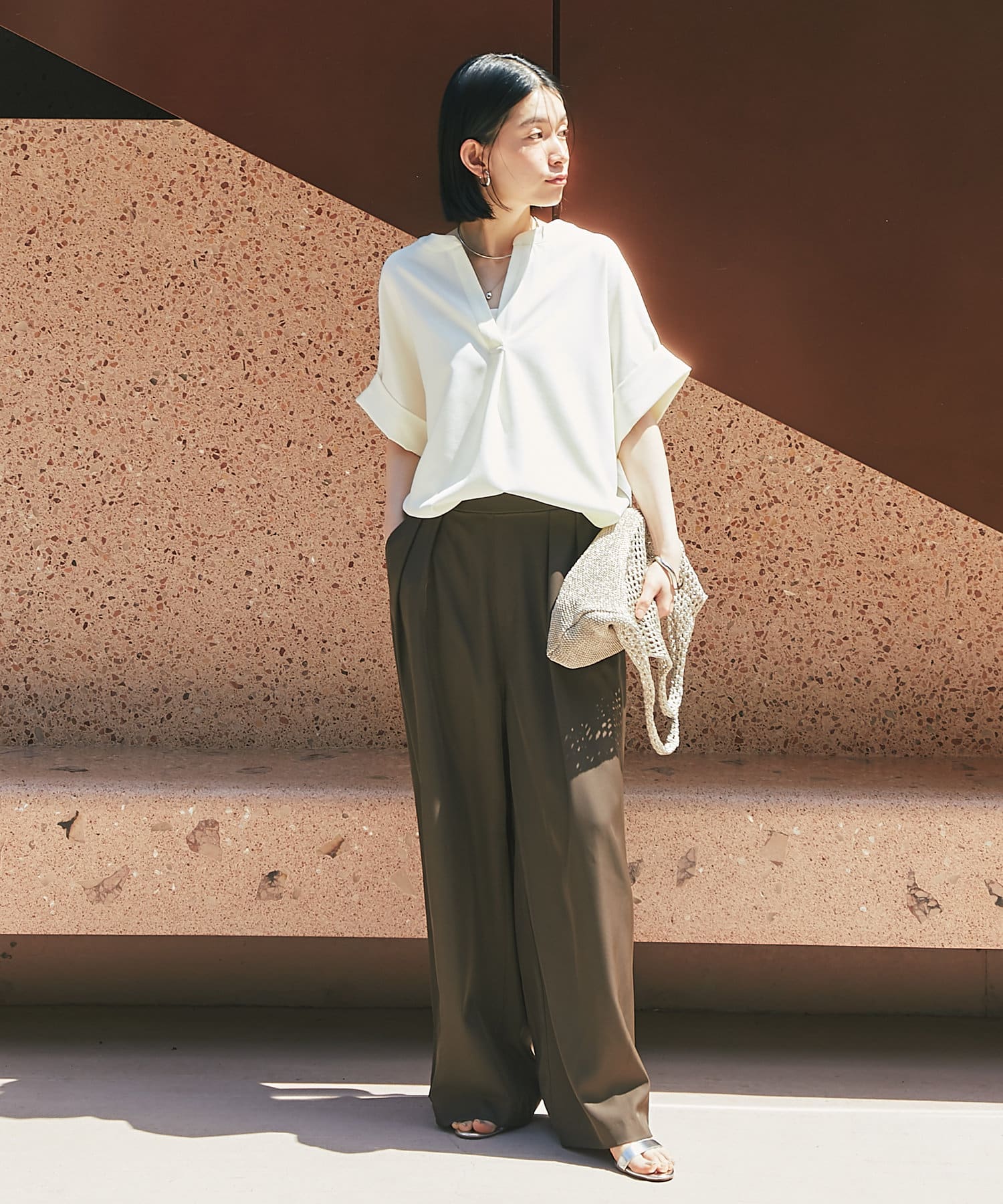 大人の綺麗めコーデに欠かせないスキッパーブラウス