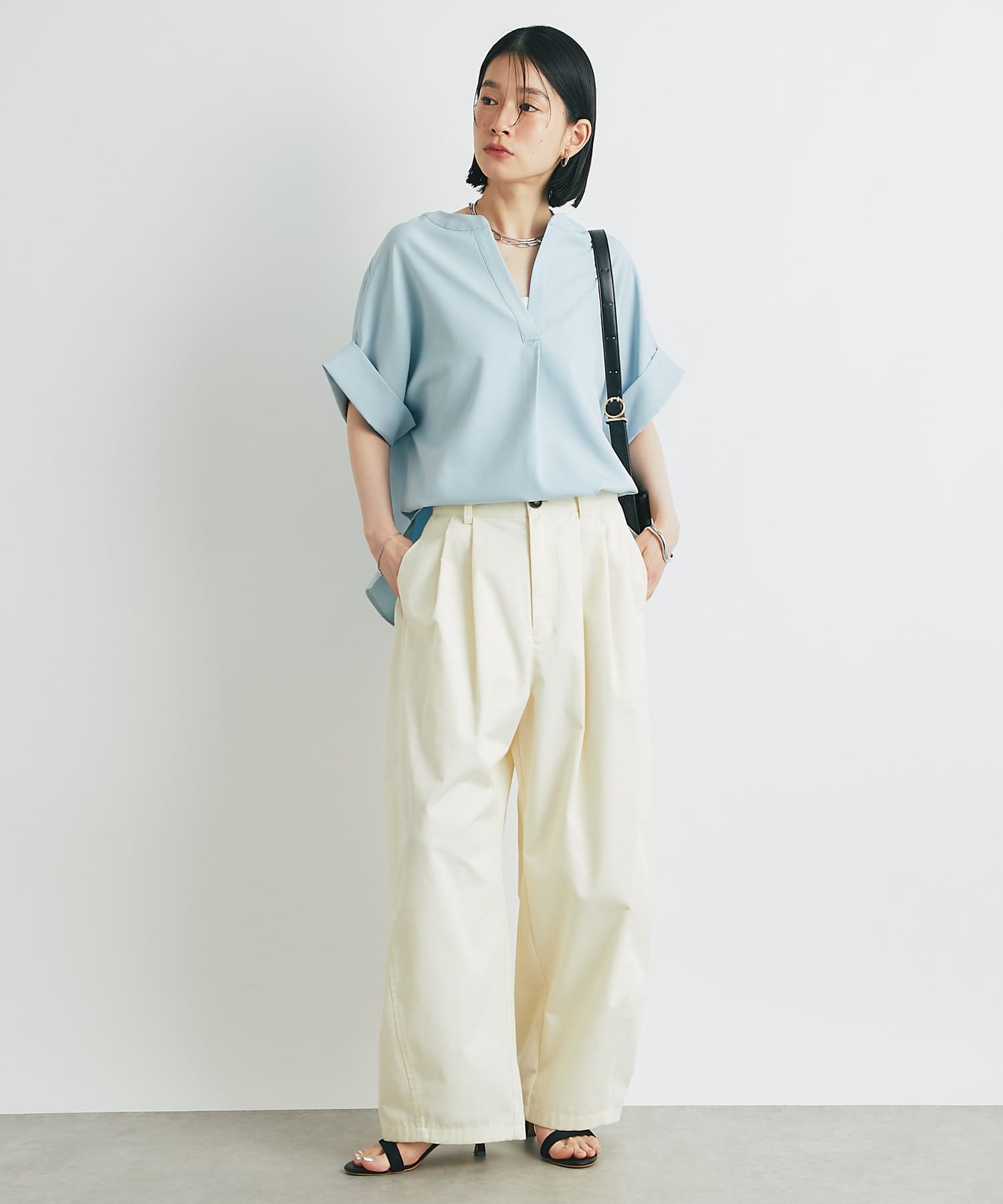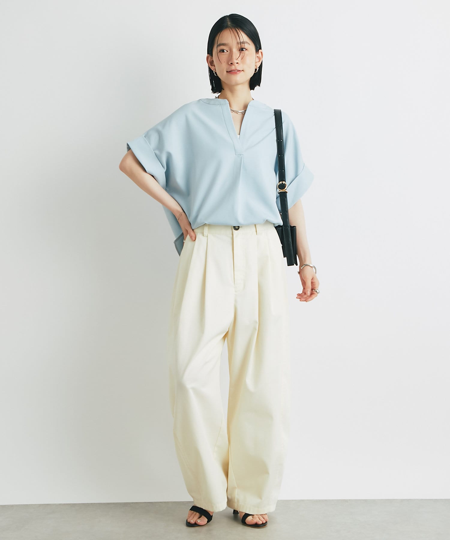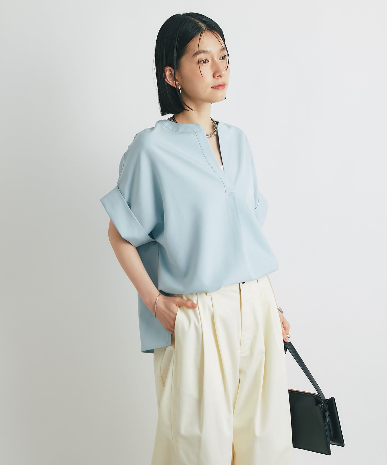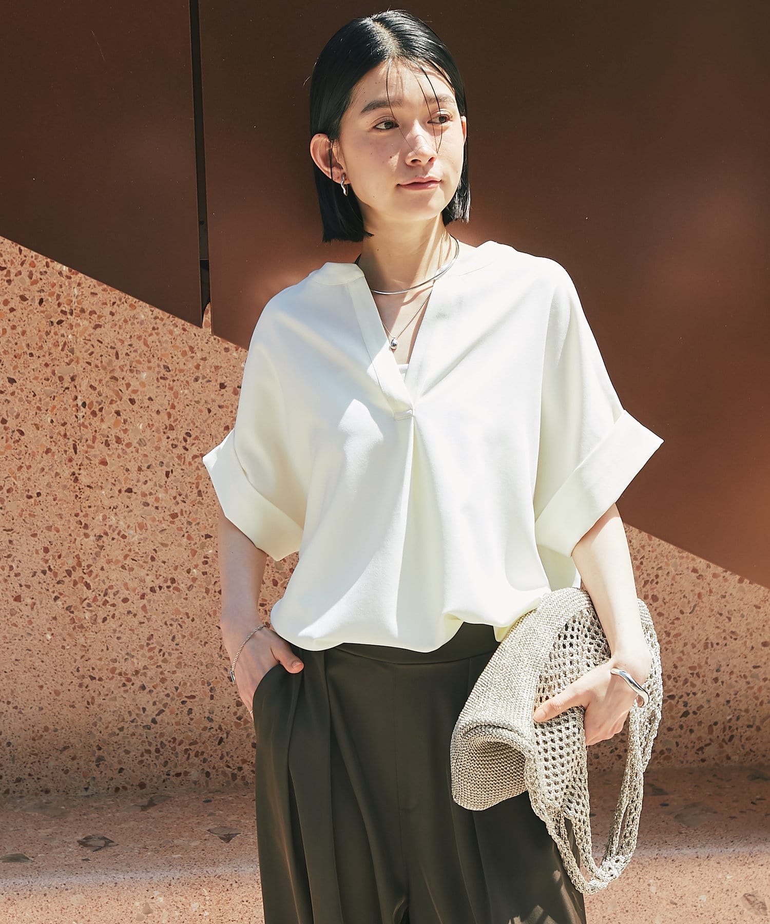 大人の綺麗めコーデに欠かせないスキッパーブラウス