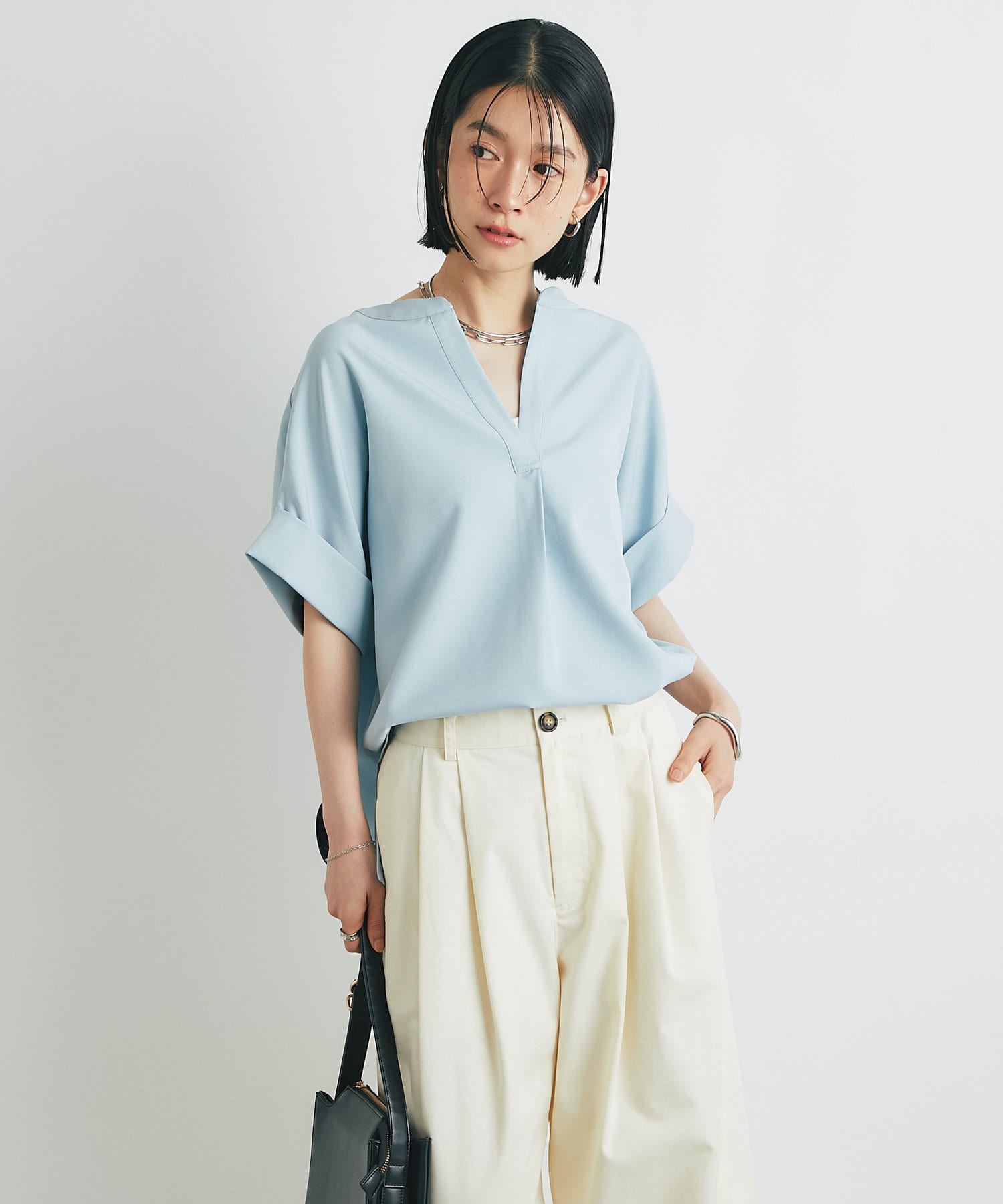 《オンオフ着まわせる》ニュアンススリーブスキッパーブラウス