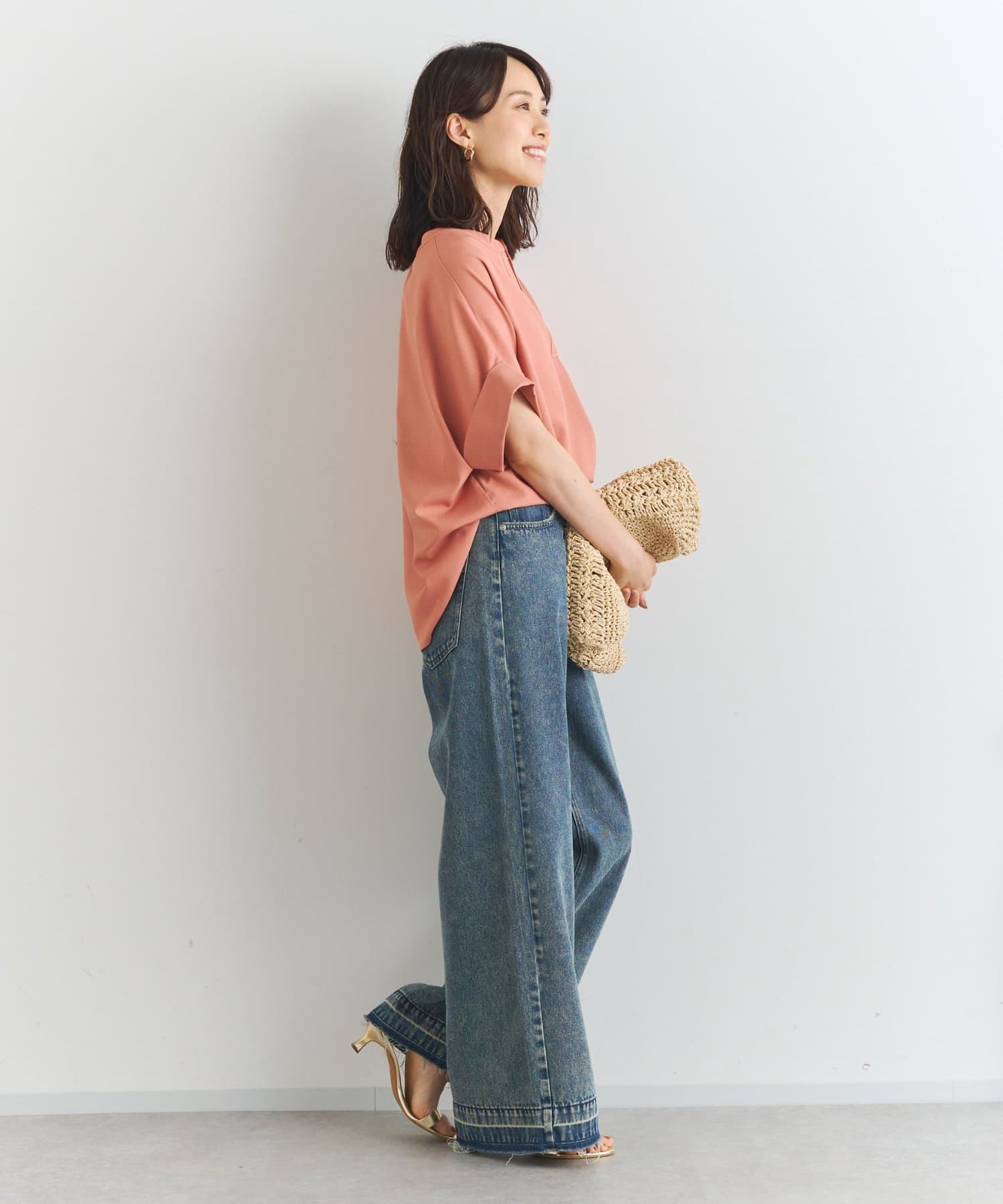 ワイドデニムパンツを合わせて、大人カジュアルな雰囲気を楽しむのもおすすめです。