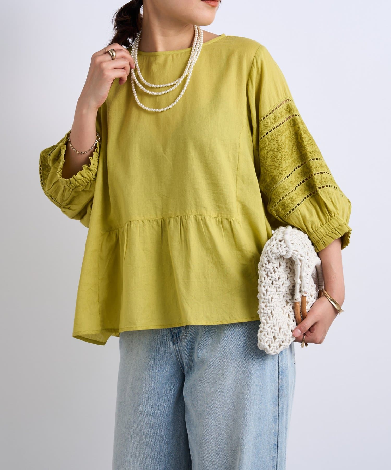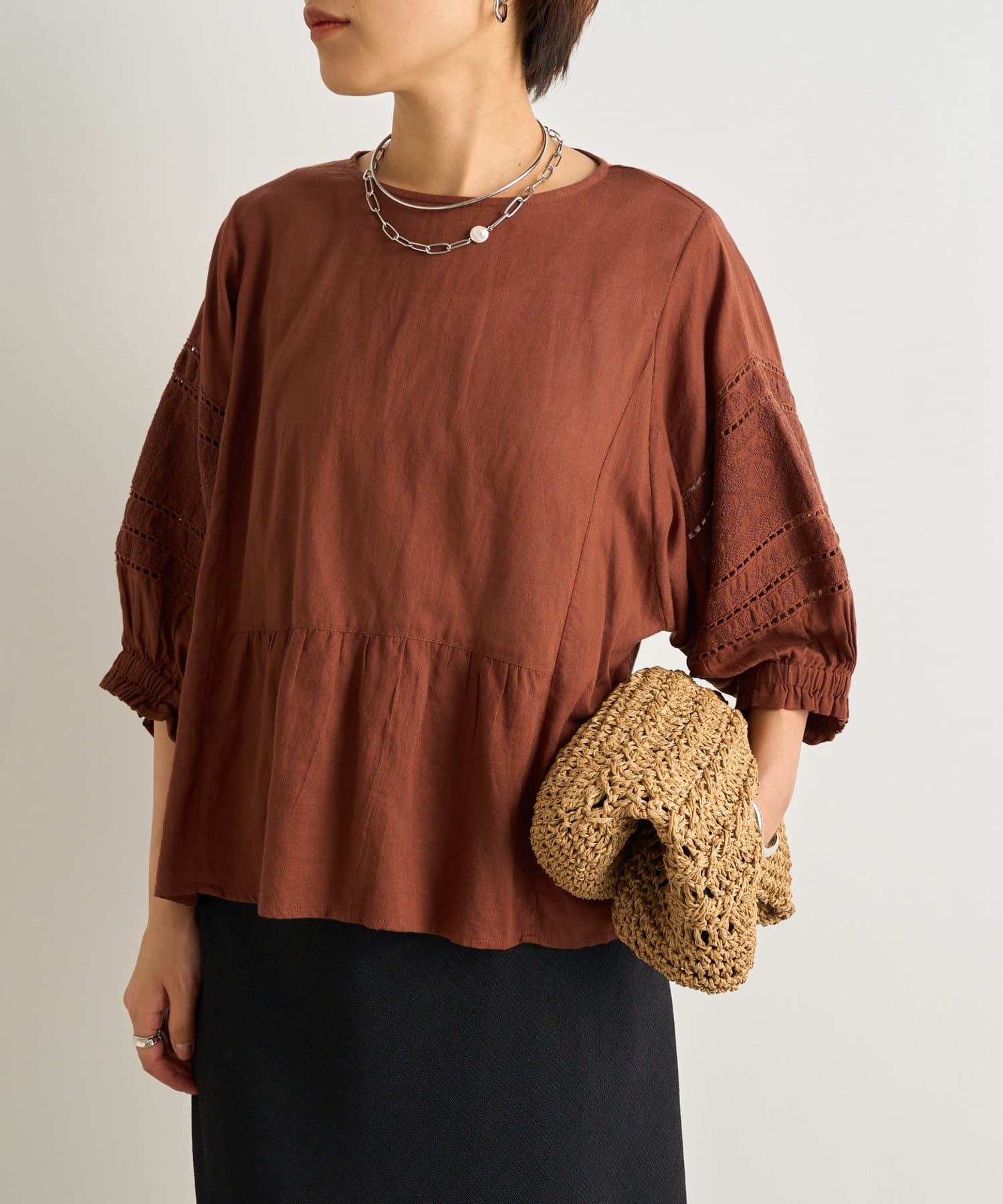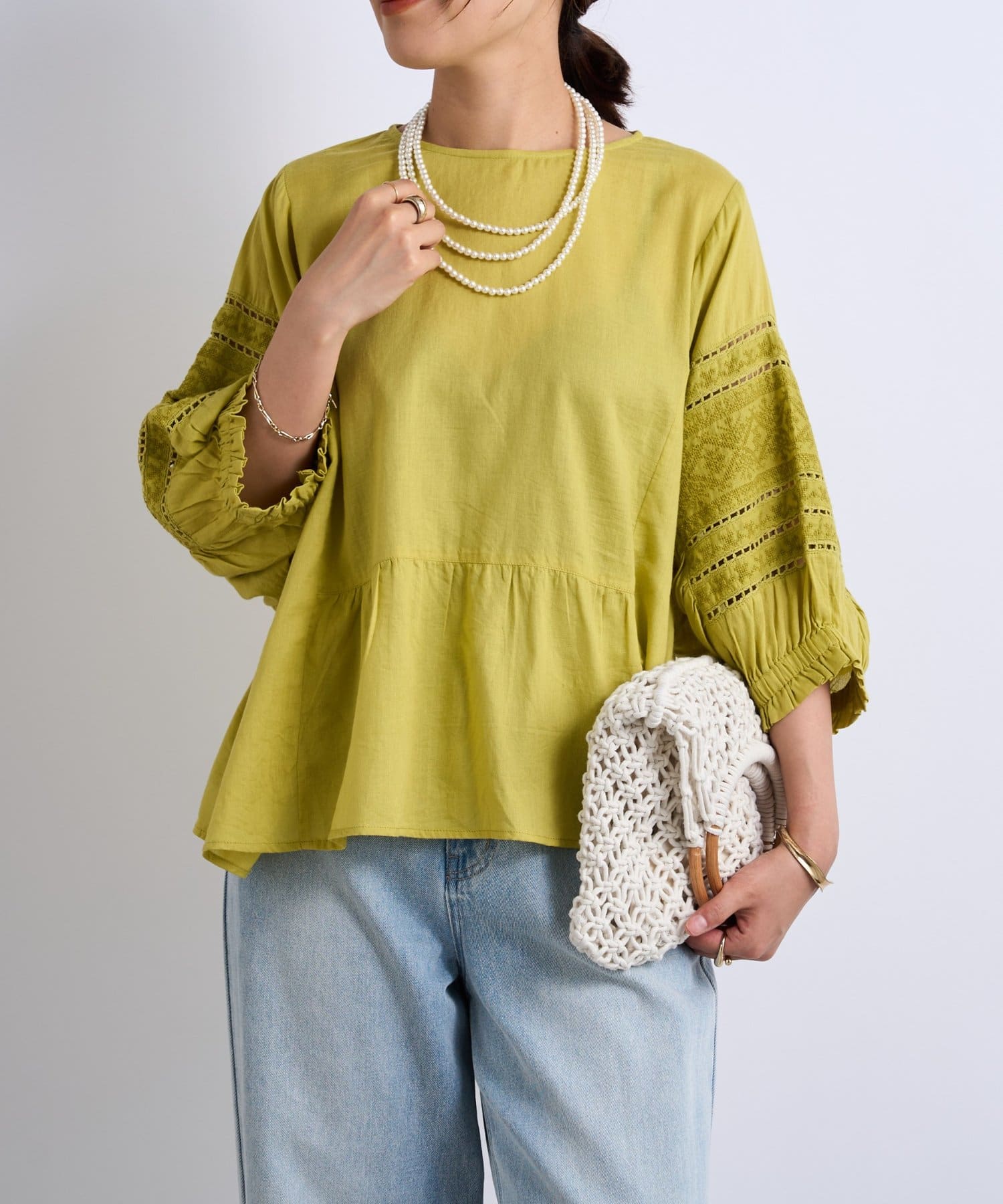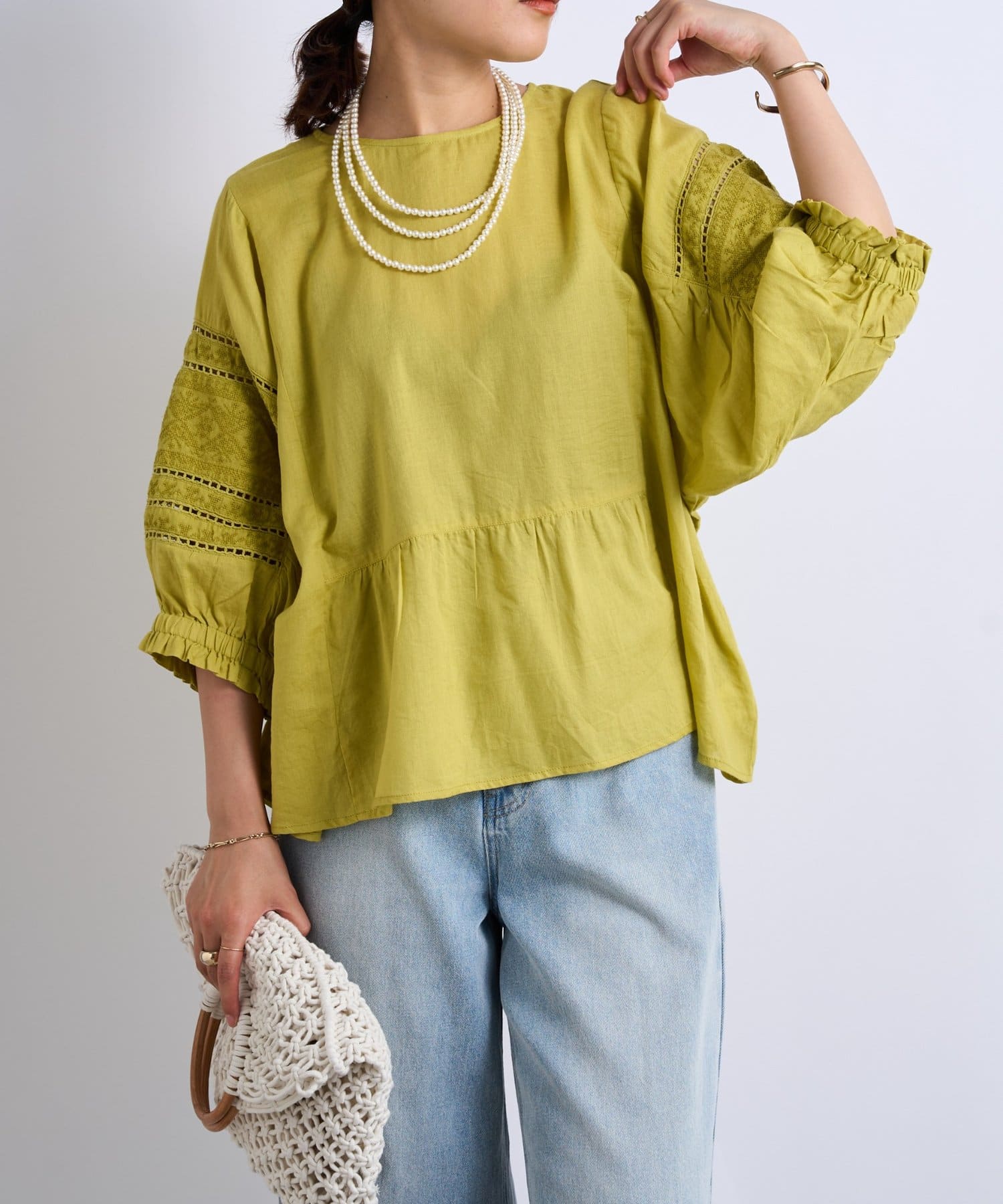 《綿100%・大人フェミニンなムードに》コットンエンブロイダリーブラウス