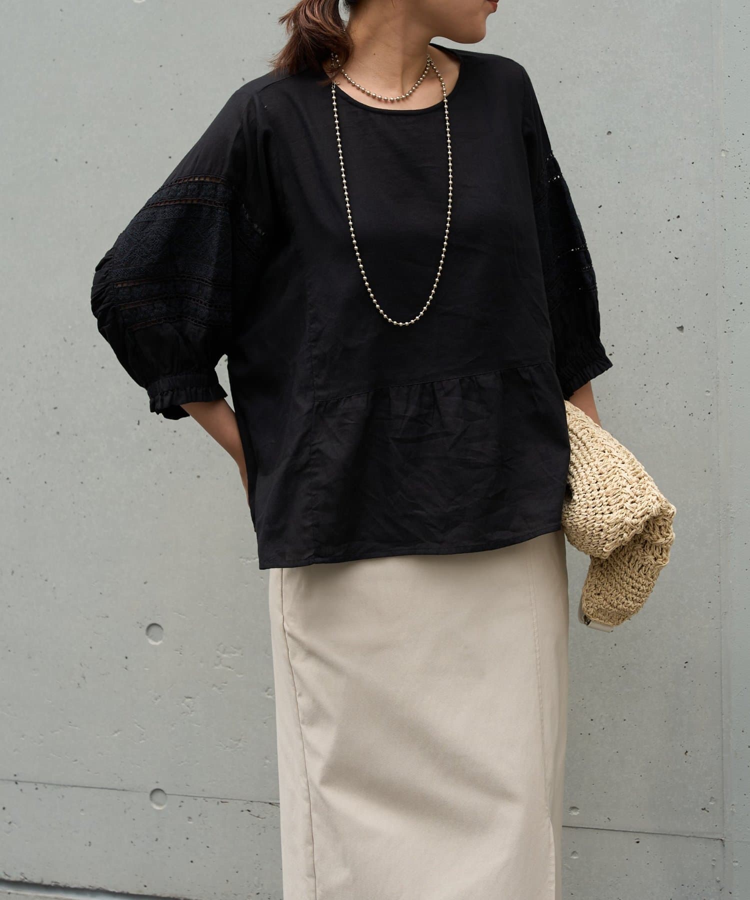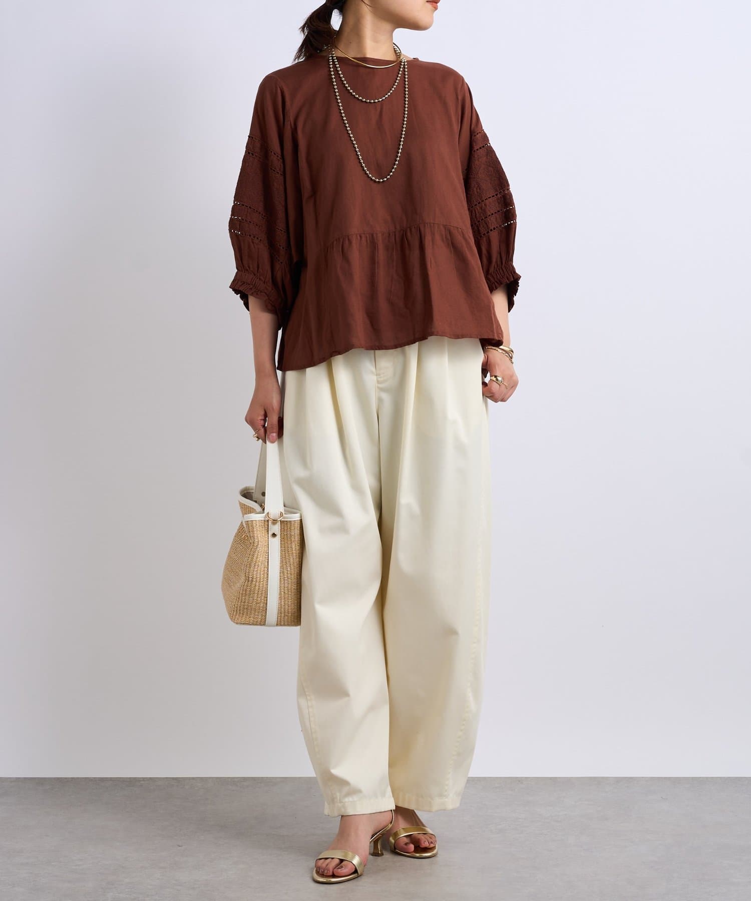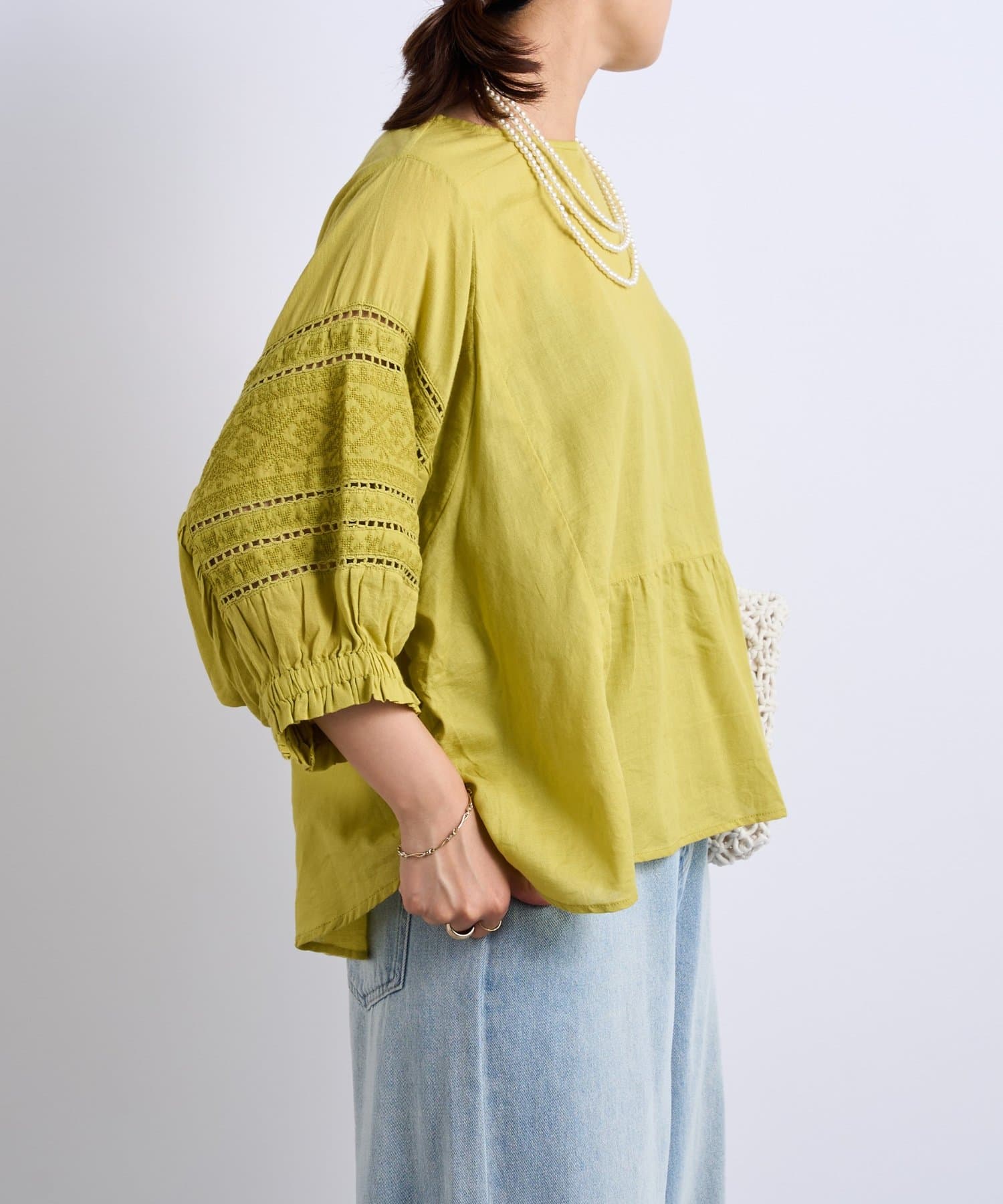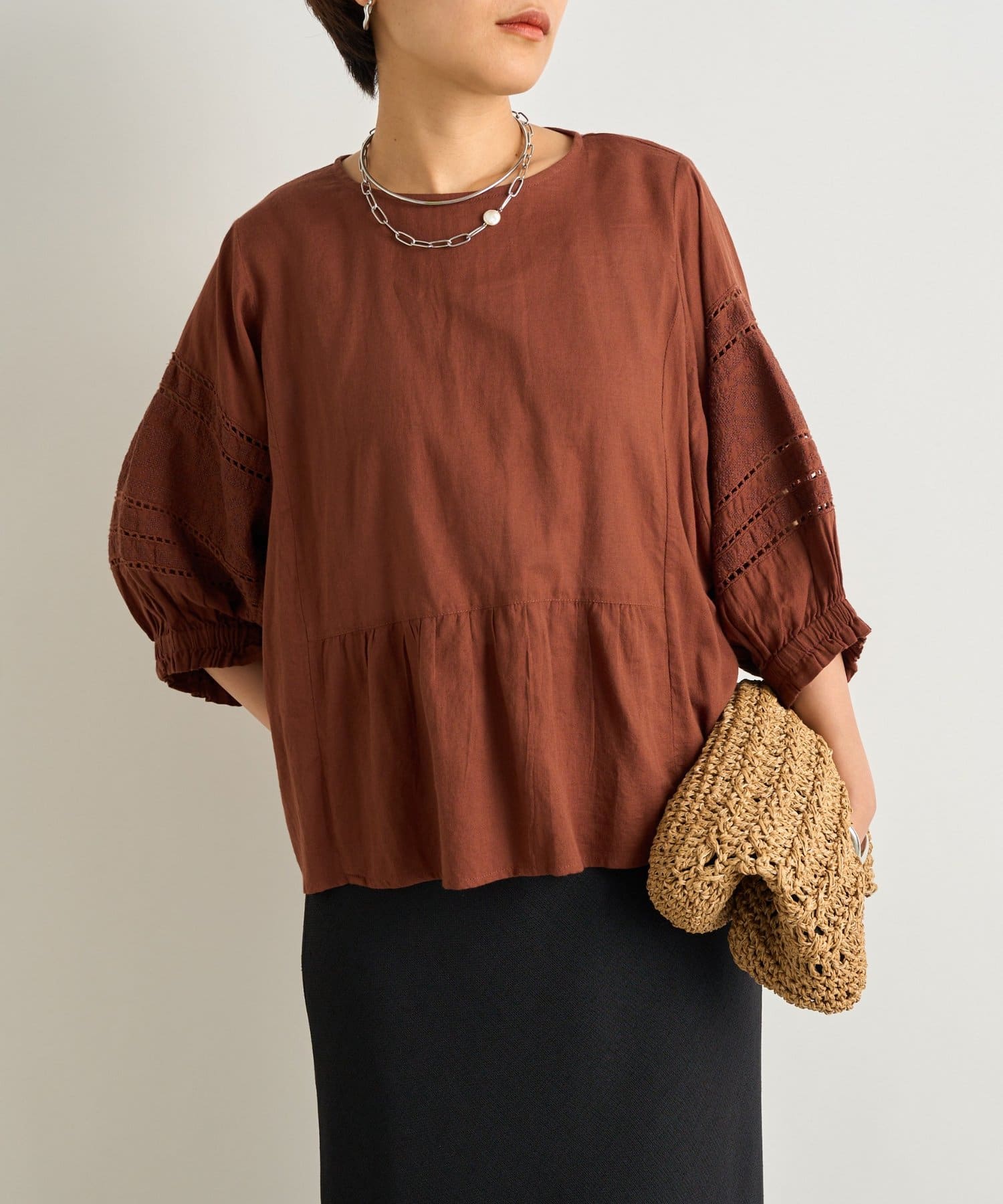 《綿100%・大人フェミニンなムードに》コットンエンブロイダリーブラウス