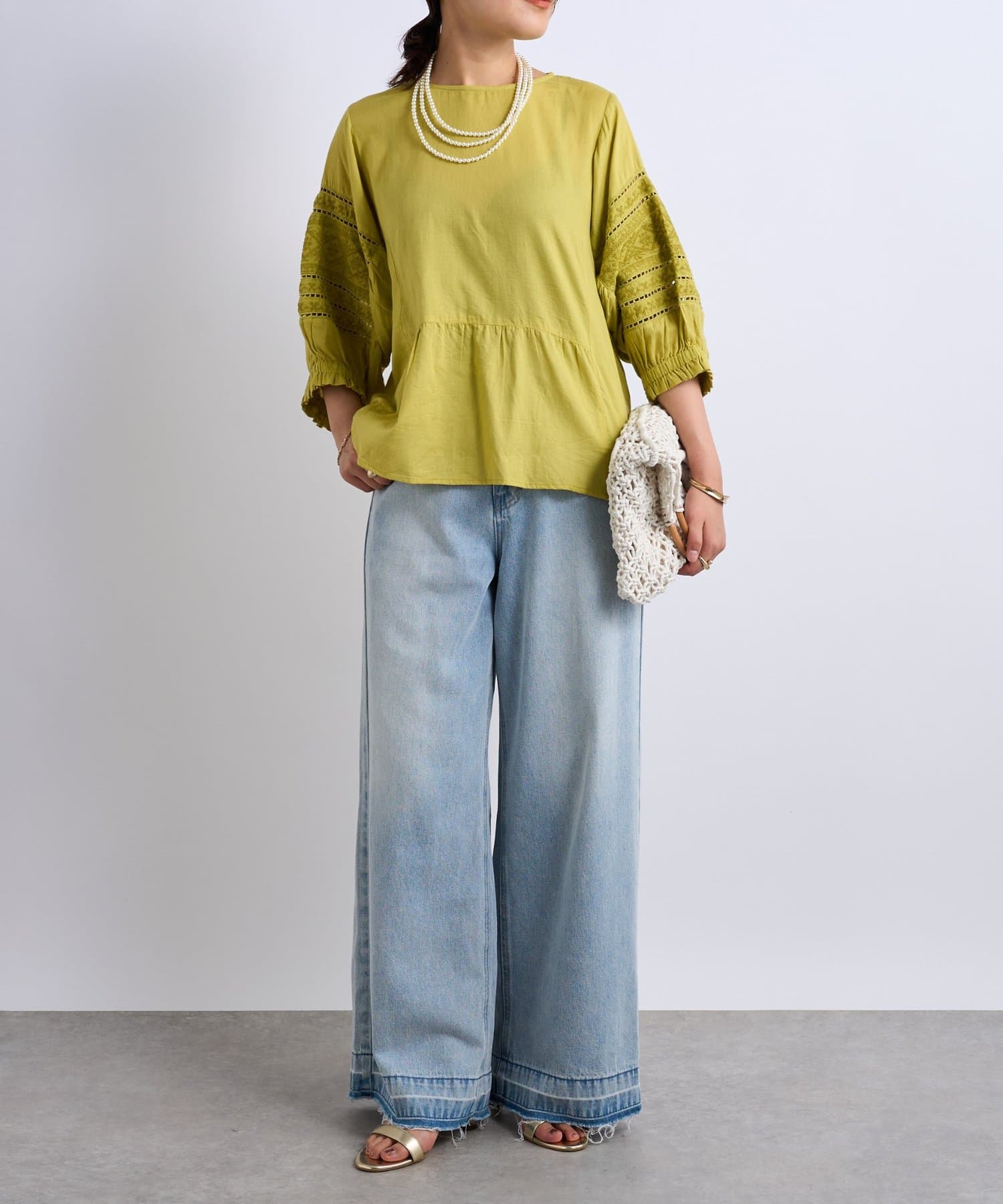 デニムパンツと合わせると、カジュアルさとフェミニンムードの両方を楽しめます。