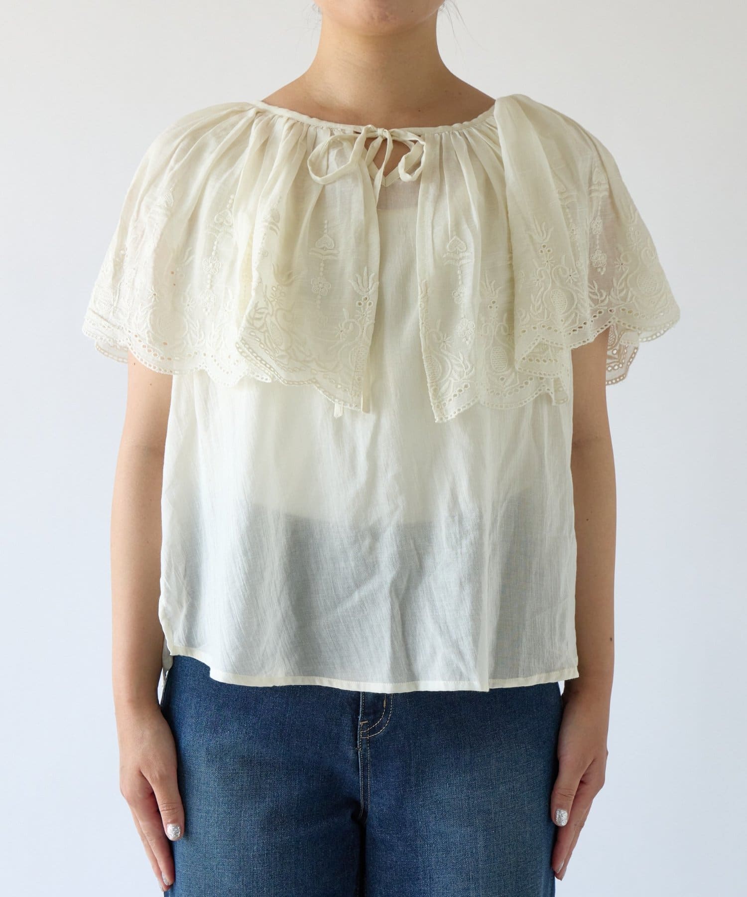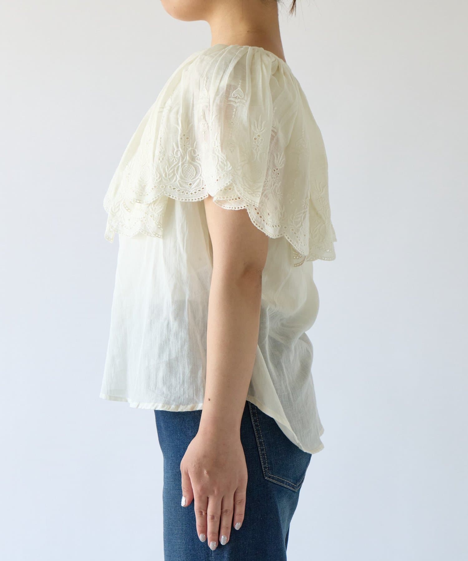 《綿100%・ふんわりと女性らしい》パンチングレースブラウス