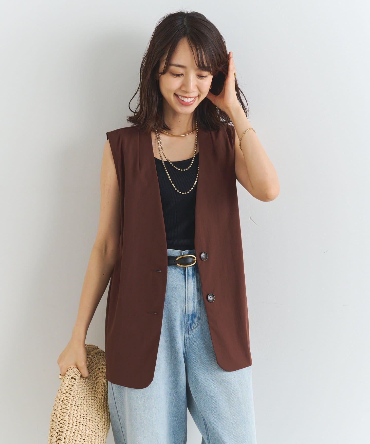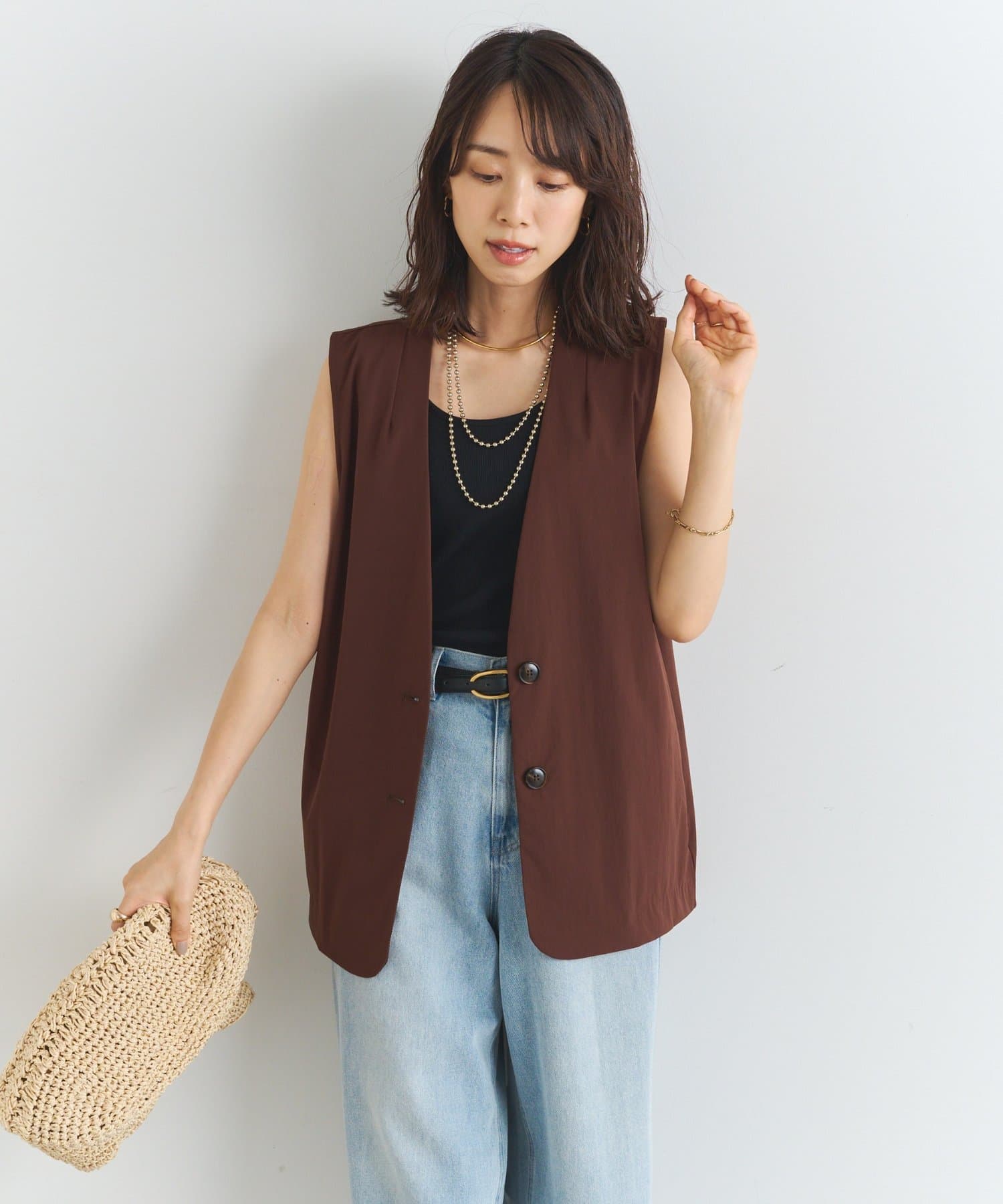 《セットアップ対応◎》撥水加工・接触冷感 ノーカラーシンプルベスト
