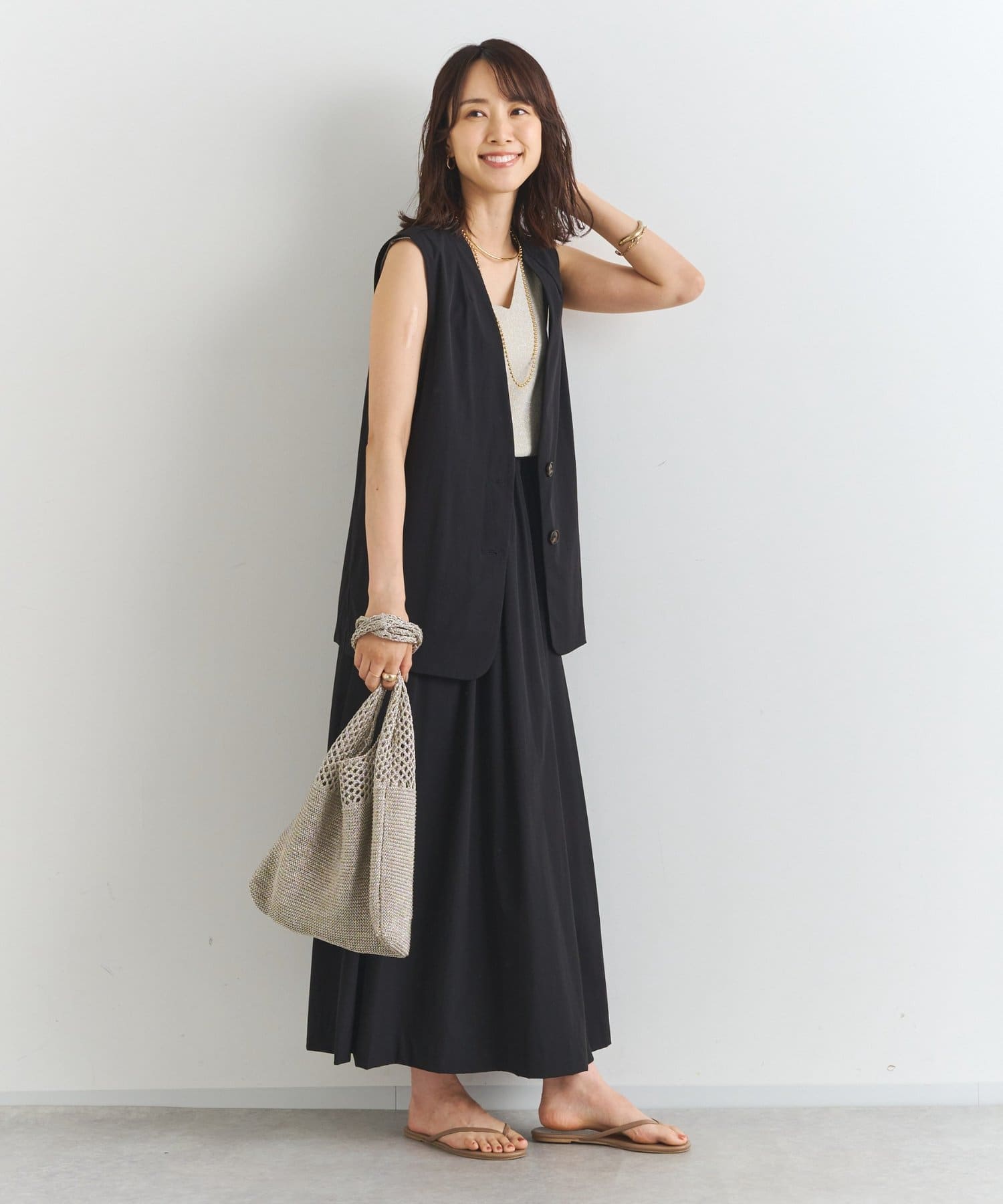 《夏に快適・セットアップ対応◎》撥水加工・接触冷感タックギャザーフレアスカート