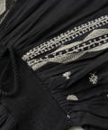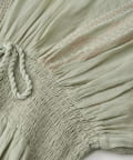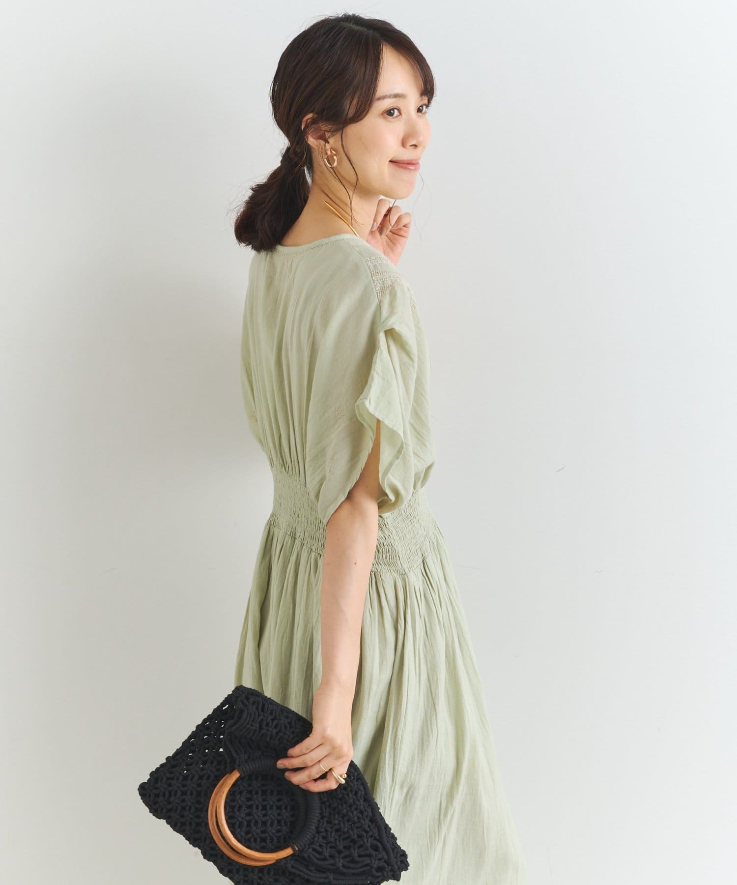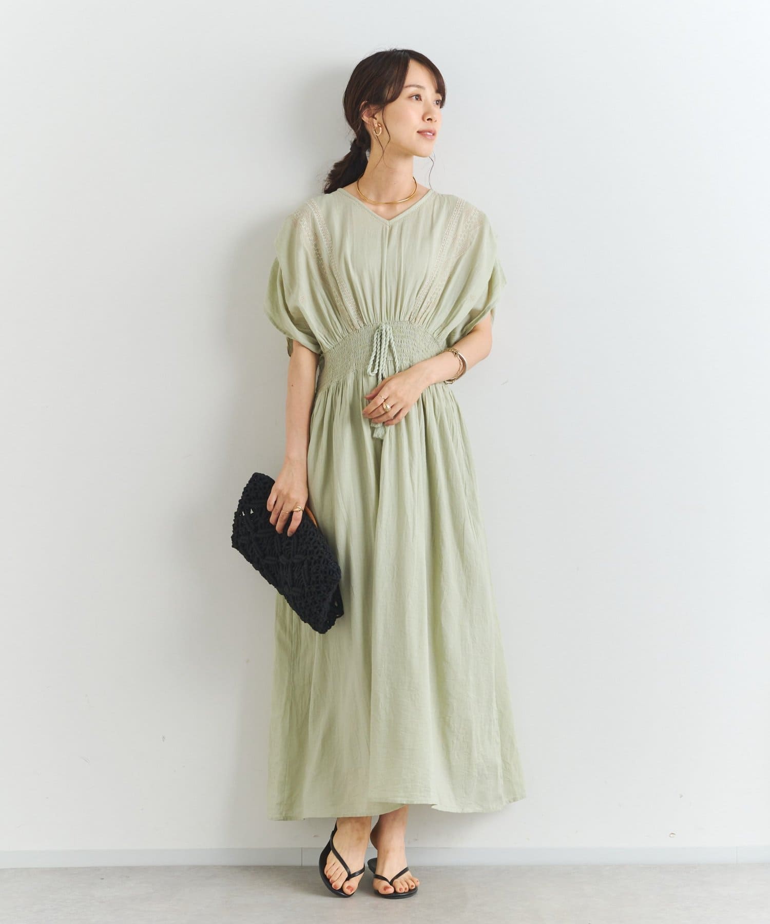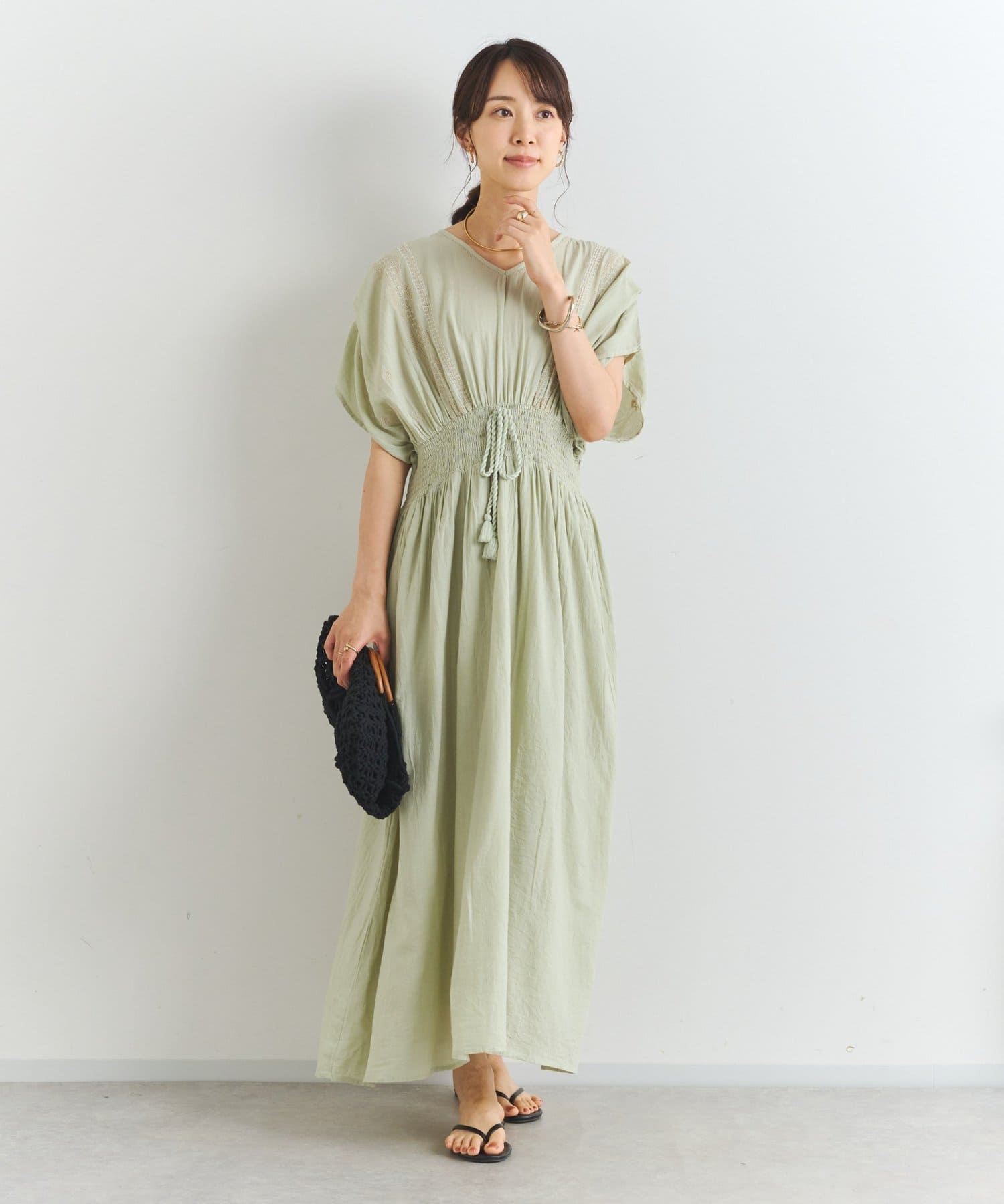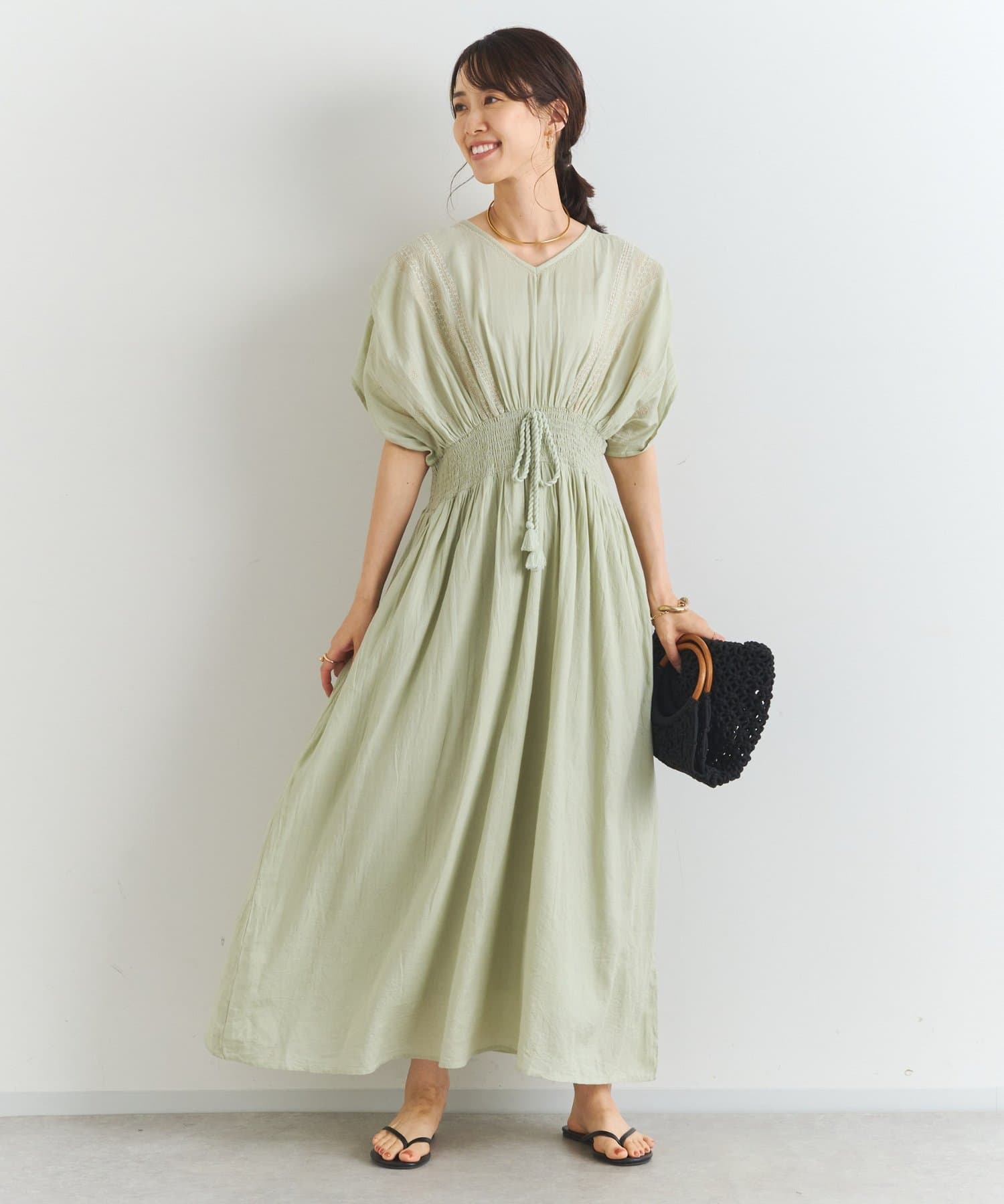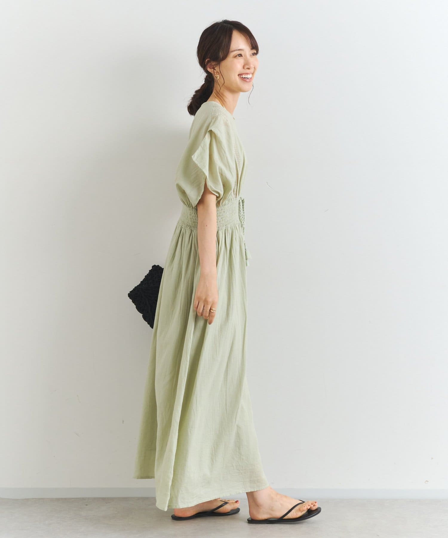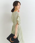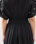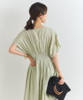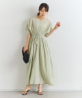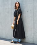 全体的にフレアーなシルエットながら、絞りのあるウエストラインでメリハリがつき、スタイルアップ効果も期待できます。